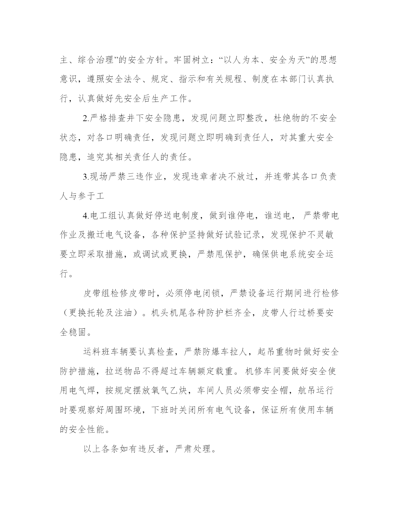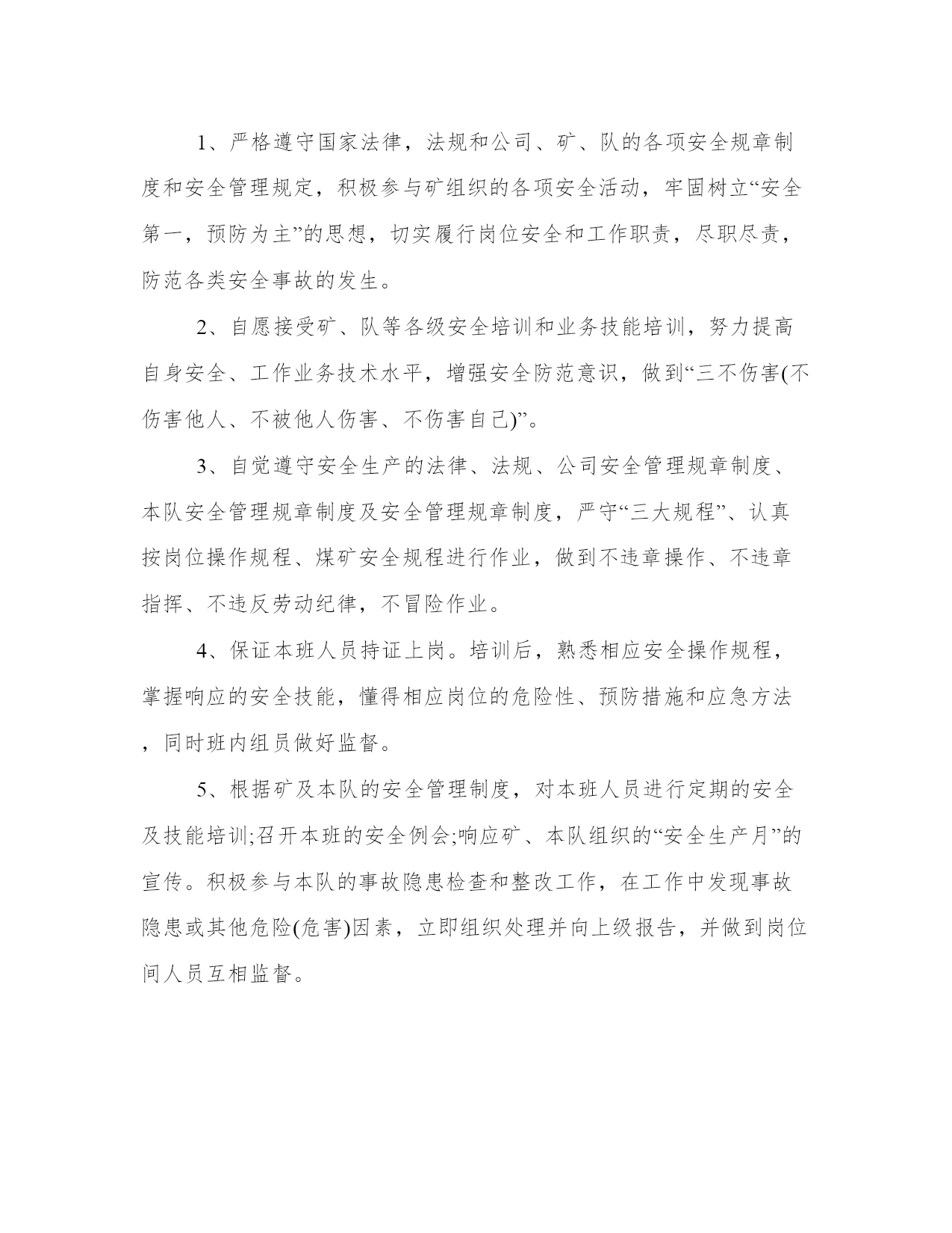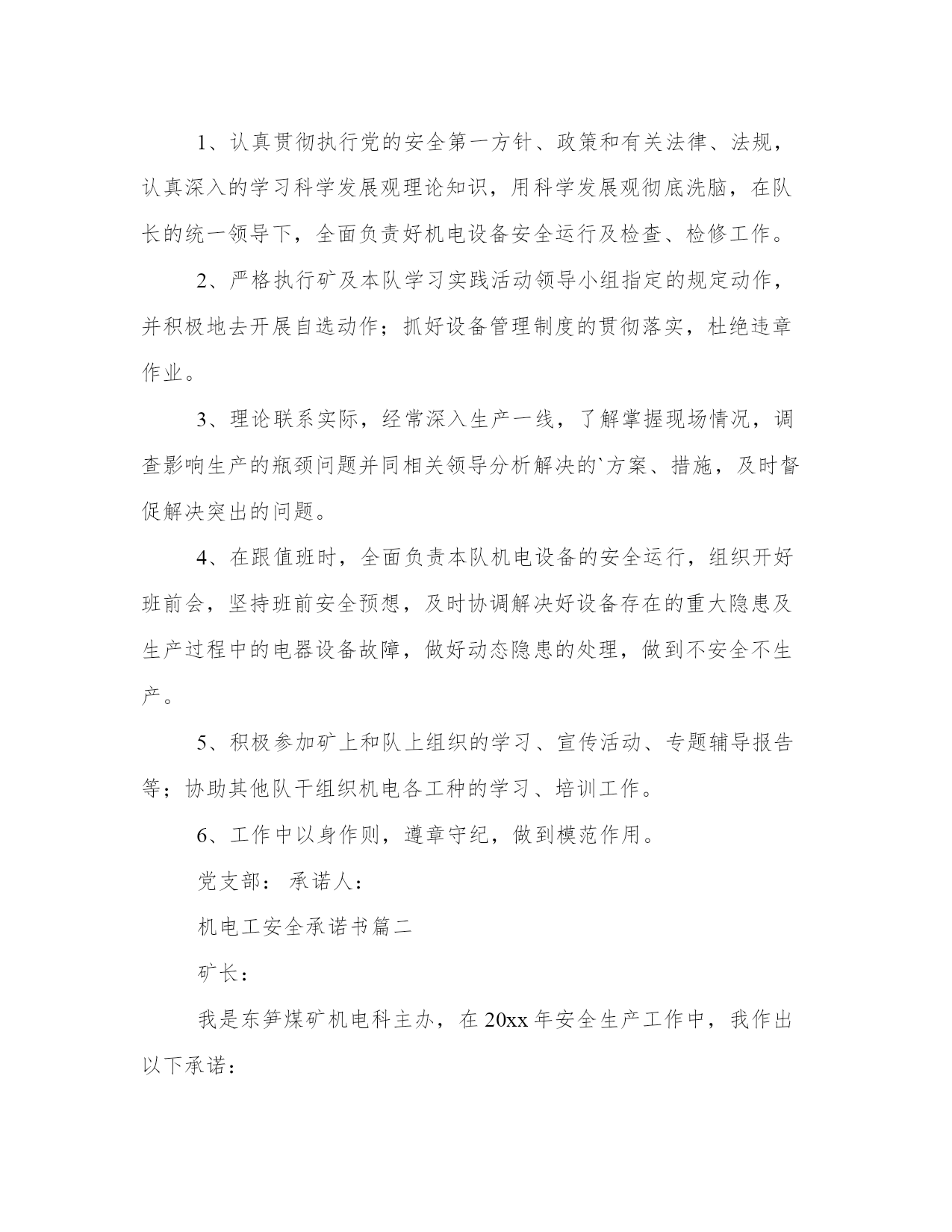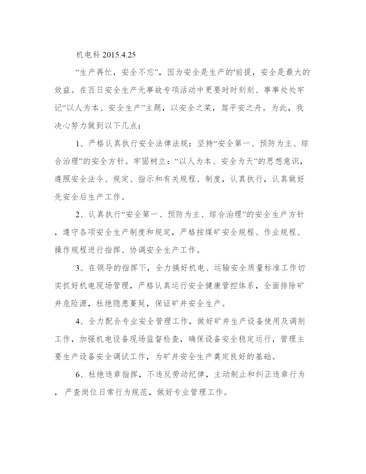 最新机电工安全承诺书(汇总8篇)在日常学习、工作或生活中,大家总少不了接触作文或者范文吧,通过文章可以把我们那些零零散散的思想,聚集在一块。范文怎么写才能发挥它最大的作用呢?这里我整理了一些优秀的范文,希望对大家有所帮助,下面我们就来了解一下吧。机电工安全承诺书篇一在国家安全监管总局颁布煤矿矿长保护矿工生命安全七条规定之际,我们要坚持“安全第一,预防为主,综合治理”的安全生产方针,积极营造“科学发展、安全发展”的浓厚安全生产氛围,促进我矿安全生产形势持续稳定发展。为做好安全生产工作的责任感和自觉性,我郑重承诺在以后的工作中将做到以下几点:1、自觉履行岗位安全责任,严格遵守国家法律、法规和公司的各项安全规章制度。2、使用中的机电设备必须符合国家相关规定,不使用淘汰设备。3、加强井下机电和所有提升设备维护保养及检修工作,确保井下机电和所有提升设备台台完好,安全可靠。4、做好本队机电、运输的安全管理工作,督促机电、运输质量标准化,组织机电和提升运输隐患排查治理工作,发现隐患及时处理,做到不安全不运行。5、自觉遵守安全技术措施,现场落实不打折扣,不抱侥幸心里。6、依照程序进行设备验收、设备性能检测,严把各类机电设备入井关,防止非阻燃、非防暴设备入井使用。7、日常工作中不违章指挥、不违章作业、不违反劳动纪律、不盲目作业;为实现企业安全奋斗目标,保证操作零失误、作业零失误、安全零事故,身边无“三违”。8、积极参加矿各种安全培训、安全学习、安全活动,掌握作业所需的安全生产知识,持证上岗。9、落实井下8小时跟班制度,与工人同上同下。对于以上承诺,本人自觉遵守,如有违反,本人愿承担责任。本承诺书自签字日起生效。机电科长(签字):承诺人(签字):2015年月日2015年月日尊敬的队党支部:为了确保在深入学习实践科学发展观期间,促进我矿发展战略和计划的实现,进一步推动队各项工作科学的向前发展,最终达到党员干部受教育,科学发展上水平,人民群众得实惠的目的。我慎重承诺:1、认真贯彻执行党的安全第一方针、政策和有关法律、法规,认真深入的学习科学发展观理论知识,用科学发展观彻底洗脑,在队长的统一领导下,全面负责好机电设备安全运行及检查、检修工作。2、严格执行矿及本队学习实践活动领导小组指定的规定动作,并积极地去开展自选动作;抓好设备管理制度的贯彻落实,杜绝违章作业。3、理论联系实际,经常深入生产一线,了解掌握现场情况,调查影响生产的瓶颈问题并同相关领导分析解决的`方案、措施,及时督促解决突出的问题。4、在跟值班时,全面负责本队机电设备的安全运行,组织开好班前会,坚持班前安全预想,及时协调解决好设备存在的重大隐患及生产过程中的电器设备故障,做好动态隐患的处理,做到不安全不生产。5、积极参加矿上和队上组织的学习、宣传活动、专题辅导报告等;协助其他队干组织机电各工种的学习、培训工作。6、工作中以身作则,遵章守纪,做到模范作用。党支部:承诺人:机电工安全承诺书篇二矿长:我是东笋煤矿机电科主办,在20xx年安全生产工作中,我作出以下承诺:1、杜绝“三违”行为;2、在矿领导的带领下负责机电科行政业务及机电管理工作;3、认真编制年度机电设备检修计划及全矿用电计划,并组织机电职工实施;5、如违反以上承诺,我愿意按照局公司、矿有关管理制度进行处理。承诺人:xxx。xxxx年xx月xx日。机电工安全承诺书篇三技术员(签字):矿长(签字):签订时间:签订时间:为了保证我矿六十万吨验收顺利完成,杜绝各类事故的发生,达到安全生产的目的,我郑重承诺:1、负责分管范围内的机电运输系统安全技术管理工作,对机电运输系统安全负有技术管理责任,搞好业务保安工作。2、负责机电运输设备的预防性检查试验、编制技术操作规程和安全技术措施,并指导职工认真贯彻执行。3、经常深入现场,检查和指导工作,及时掌握各种设备运行情况,发现问题,及时制定防范措施,防止事态扩大,完成公司下达的下井和反“三违”指标。4、负责对机电运输工程质量、设备维修质量的检查和验收工作,严格按标准进行验收。5、负责分管范围内的矿井机电运输质量标准化工作,绘制机电运输系统有关图纸,建立和完善机电运输技术资料、管理档案和台帐卡片工作,并妥善保管。6、负责对职工进行安全知识的教育培训。7、对机电运输系统中存在的重大隐患和发生重大设备事故时,必须及时赶赴现场指导处理和抢救,并提出预防事故扩大和抢救的安全技术措施。8、保证及时制止“三违”行为,及时处理三违人员。9、及时解决采掘生产过程中的问题,确保安全生产的正常进行。10、认真贯彻执行煤矿安全规程,以及国家和行业的有关规定,切实做好安全管理工作,杜绝事故发生。11、对于以上承诺,本人自觉遵守,如有