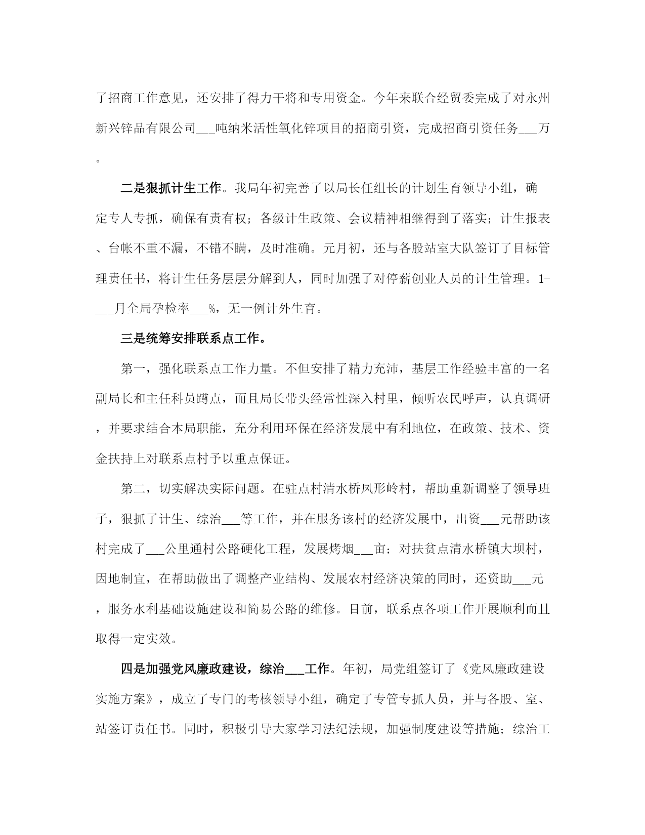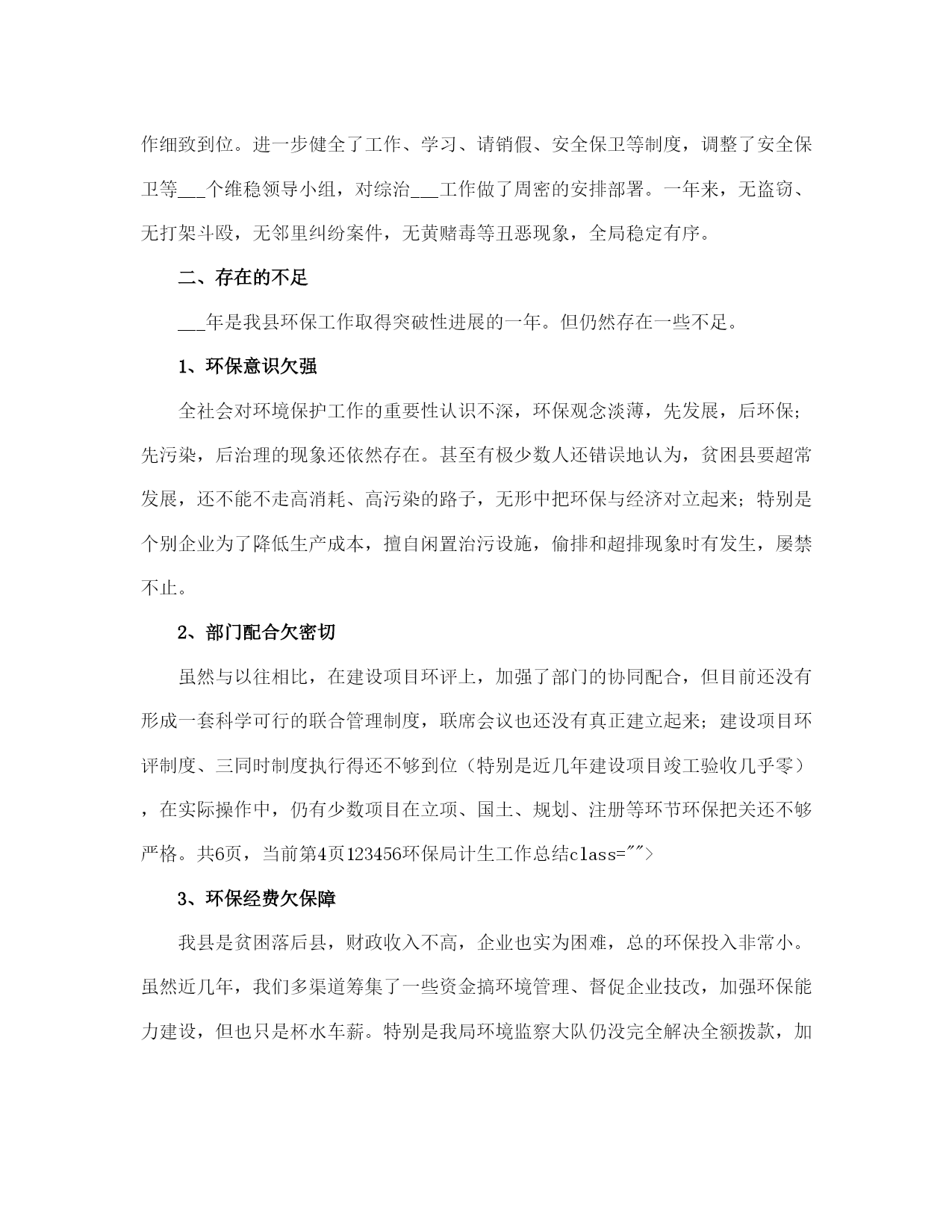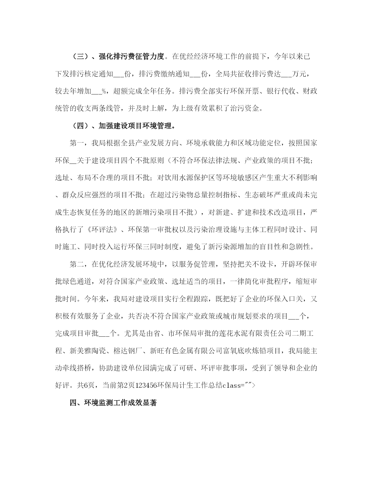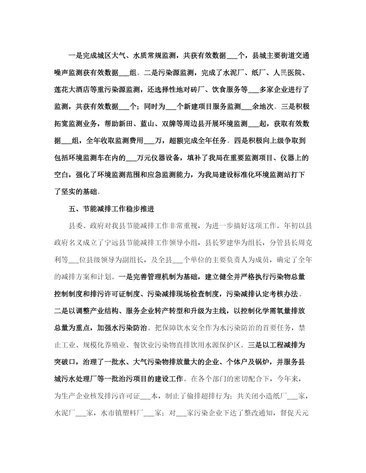 环保局计生工作总结(完整版)文档资料可直接使用,可编辑,欢迎下载环保局计生工作总结今年,环保局领导班子更加地深刻认识到,只要环保意识提高了,我们环保的地位才能提高,环保工作才能更加有力的开展。为此,局党组一直把加强环保宣传,提高全社会环保意识,作为一个重要工作来抓。一是利用报刊杂志等媒体覆盖面广的优势,加大环境宣传力度,配套资金___元订购环保报刊,赠送县级领导、___、政协委员,大力宣传新的环保法规政策,在电视台开僻环境宣传专栏,致力扩大环保宣传面,同时要求各企业订阅了中国环境报等环保宣传刊物,企业的环保意识明显加强。二是以6.5世界环境日为契机,积极开发社会环境教育资源,大力开展环保宣传活动。联合妇联、教育局等单位举办了宁远县第___届小学生环保知识竞赛活动。发出倡议书___份,并倡导建设绿色社区、绿色家园,参与绿色消费。三是开展环保知识咨询活动。联合科技局、安监局等相关单位在县城区繁华地段设立宣传咨询台,发放宣传品___份,现场接受环保知识咨询___人(次),现场接受环境问题投诉___起。四是积极向县委、人大、政府领导汇报,争取支持和重视。今年来,县委政府把环保工作纳入了重议事日程,县委常委会和政府常务会先后两次听取环保汇报,并下发了《成立宁远县节能减排工作领导小组___》、《宁远县潇湘流域水污染综合整治实施方案》、《___年宁远县推广使用优质低硫煤工作方案》、《宁远县人民__关于关闭宁远县保和选矿厂___》、《___关停小型造纸厂有关问题的___》、《宁远县整治违法排污企业保障群众健康环保专项行动工作方案》等六个重要文件,全县每次重大招商和重点项目建设,都请环保部门提前介入。县人大还___召开了宁远___年环保纪行动员大会。各级领导高度重视,有效地推动了环保法律法规及政策的贯彻落实和两型社会建设的健康发展。二、环保队伍自身建设逐步加强一是切实加强政治素质。规范了政治学习制度,采取集中学习和自学等各种形式,引导全局干部职工认真学习了党和国家的(范本)现行政策,特别党的___大主要精神,并撰写了学习笔记。通过学习,广大执法人员的政策理论水平和政治觉悟有了较大提高。二是努力提高业务能力。制定了职工学习、业务培训和考核计划,安排和鼓励全体职工积极参加各类专业培训和业务进修。今年以来,全系统共举办环保业务培训___期,我局先后选派___名工作人员,参加了省、市环保部门___的污染普查、环境监察、环保执法等多项业务知识培训,安排所有环境监测人员都参加了市里的技能操作培训和考核。___月份___监察大队全体执法人员进行业务考试,所有参考人员成绩均合格,优秀率达___%以上。三是规范工作作风。下发了工作纪律、财务管理、党员学习、每日签到等各项日常管理制度,改善了行风,全局干部职工的工作责任心、纪律性增强,积极性主动性大幅度提高。四是改善办公条件。我局安排经费达___万元装修了旧办公大楼,购置了办公桌椅,并向上争取了___万元的环境监测监察仪器设备,其中小车两台,办公条件比以前有了很大的改善,促进了县环境监测站和环境监察大队的达标建设,环境监管和应急处理能力明显提升。,当前123456环保局计生工作总结class="">三、环境监察工作扎实有效(一)、积极解决群众关心的环境热点、难点问题。进一步落实和完善环境信访制度,扎实抓好信访工作,切实为民服务,并在处理过程中,更加注重了群众合法利益的维护,解决问题的速度、污染治理资金的投入,善后工作的处理。截止目前,共处理群众信访、反诉案件___余起,办理人极大议案、______件,出动环境监察执法___人次,做到了件件有回声,事事有着落,查处率、办结率及群众满意率达到了___%以上。(二)、积极开展环保专项行动。第一,全面开展环境安全大检查。对涉及造纸、选矿、化工、水泥等重点企业开展全面检查,共检查企业___家,对检查中发现的环境问题及时下达整改通知并督促落实整改事项,督促制定和完善环境安全应急预案,建立和完善全县环境___应急体系。第二,开展放射源安全管理专项检查。成立由环保、公安等部门组成的联合检查组,对全县涉源的水泥、医院两个行业___家企业从严检查放射源的安全使用、放射源档案的建立与管理、放射源许可审批和申购的执行情况及有关放射性法律法规执行情况。督促因产业结构调整停产的舜源峰水泥厂拆除放射源并移送有关部门。针对未设立监控装置问题下发整改通知书___份,坚决杜绝辐射事故的发生,确保辖区内辐射环境安全。第三,开展饮用水源检查,保障饮水安全。严格执行水源保护区管理规定,依法保护饮用水源。出动执法人员___人(次),对水源保护区内所有排污单位逐一核查,查找污染隐患,加强水质监测,查处环境违法行为。完成了全县所有乡镇饮用水源保护区规划编制的前期工作。第四,结合潇湘流域水污