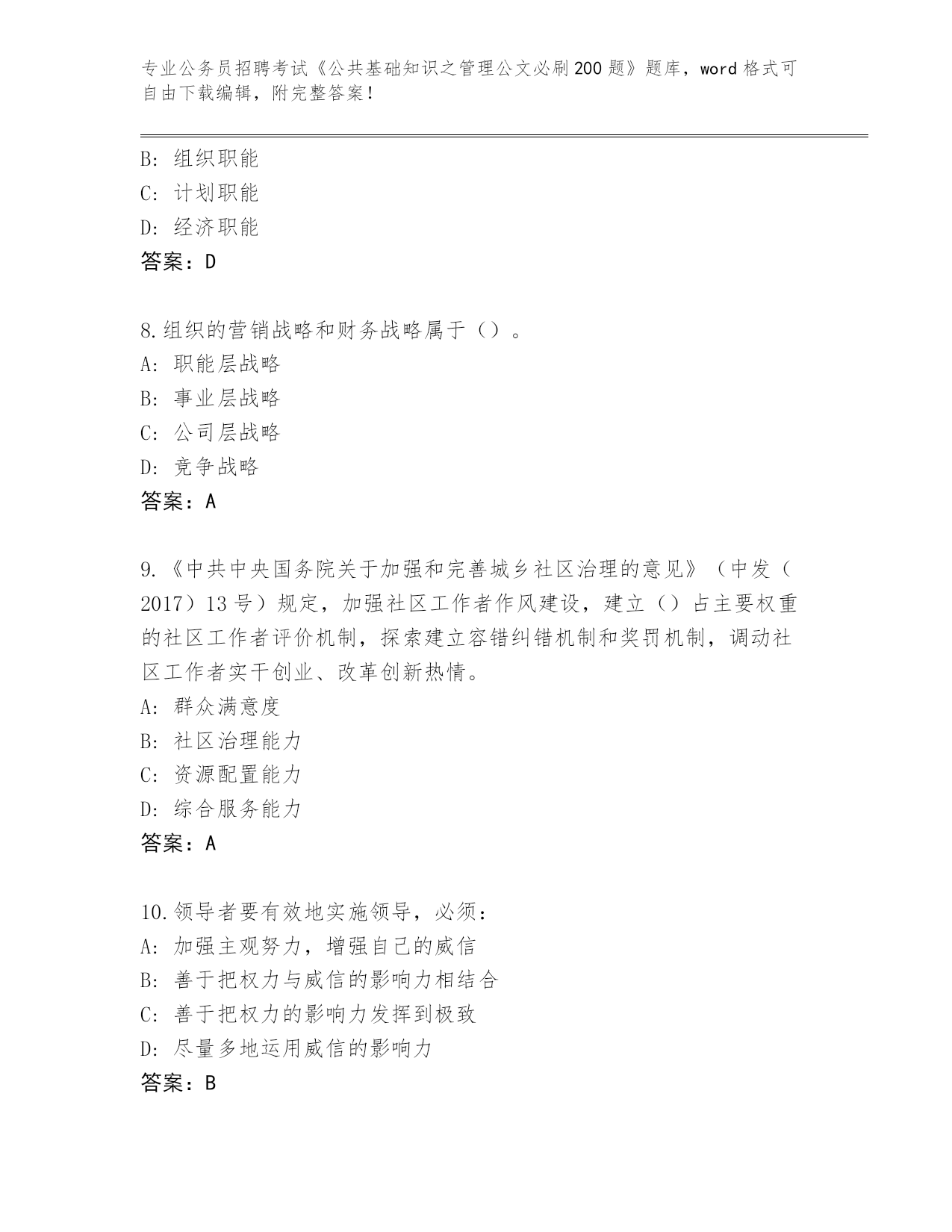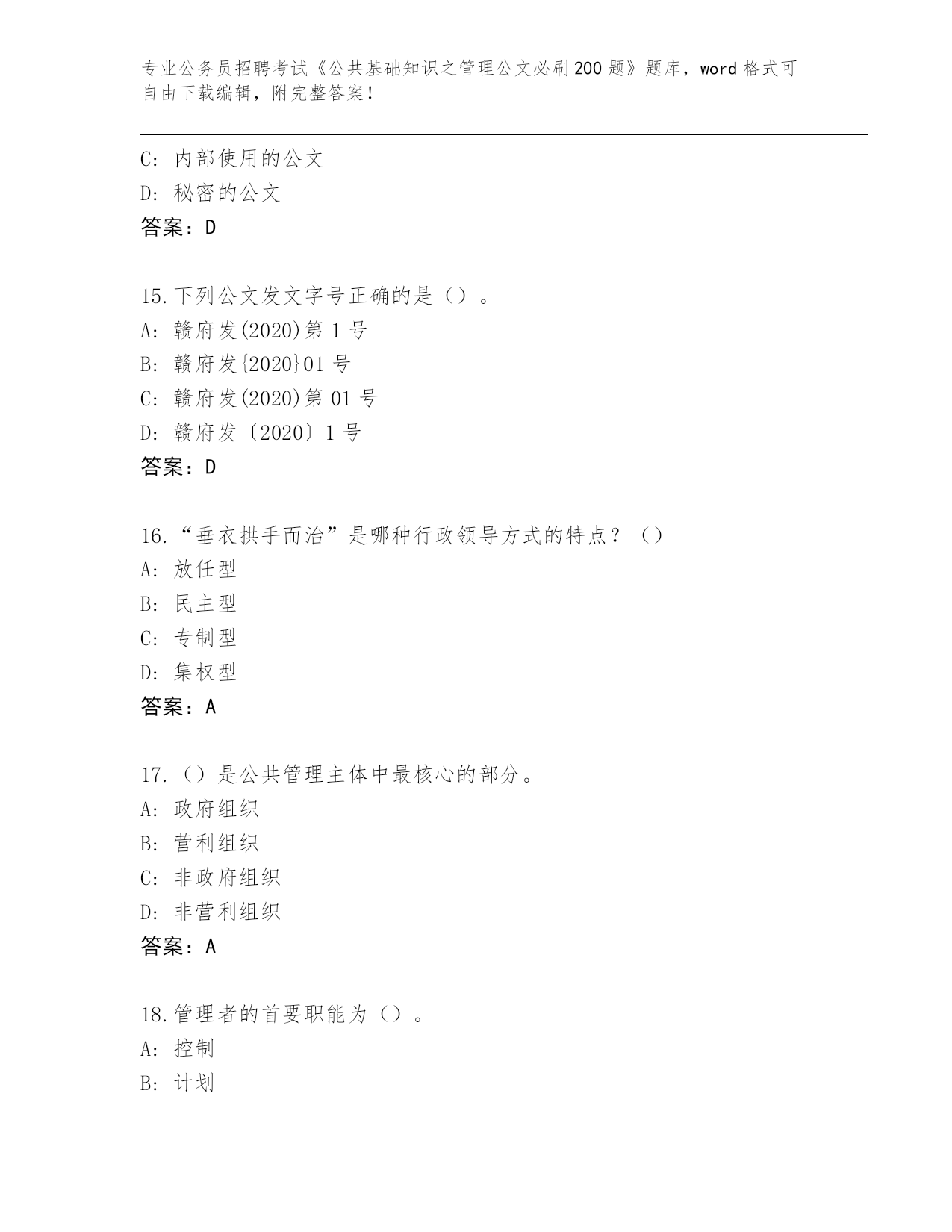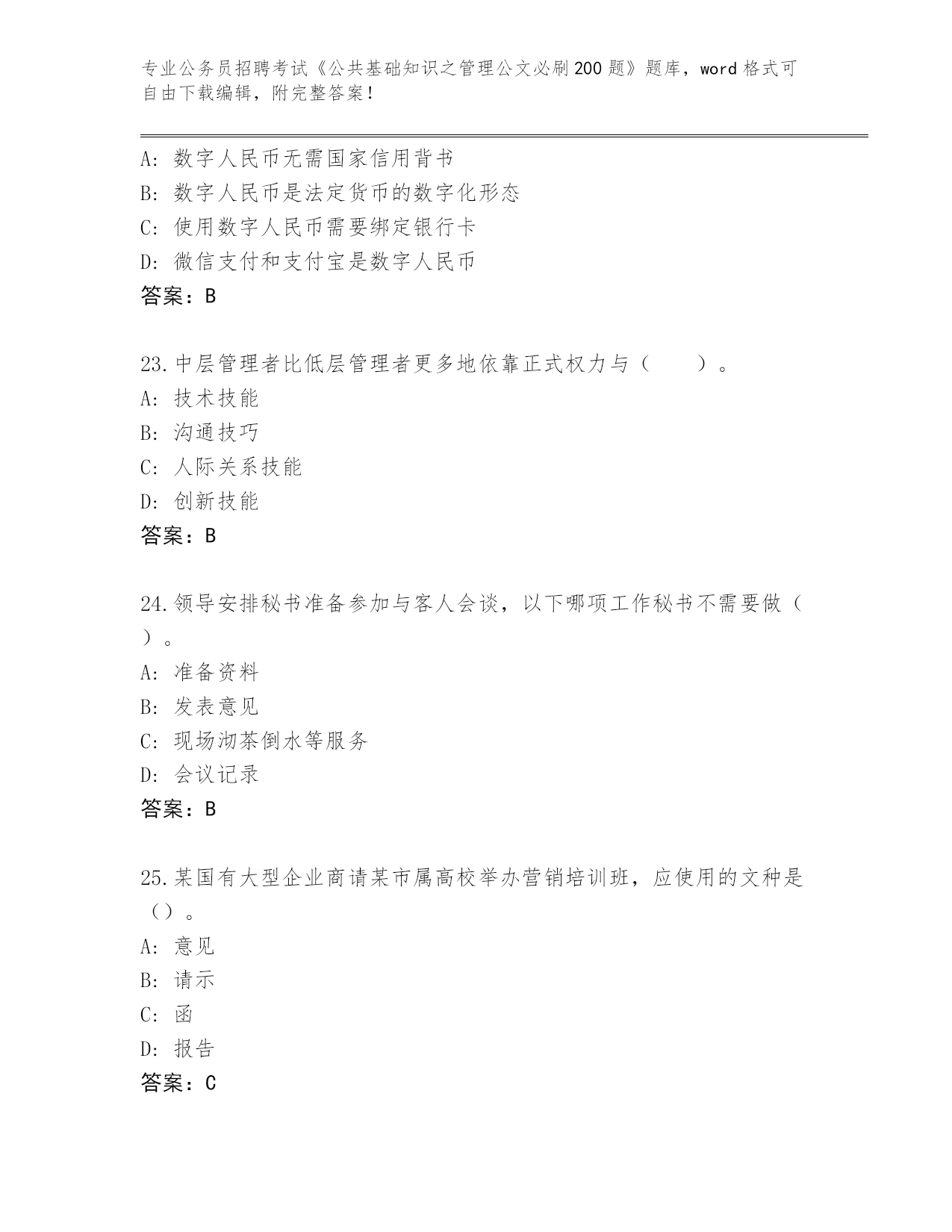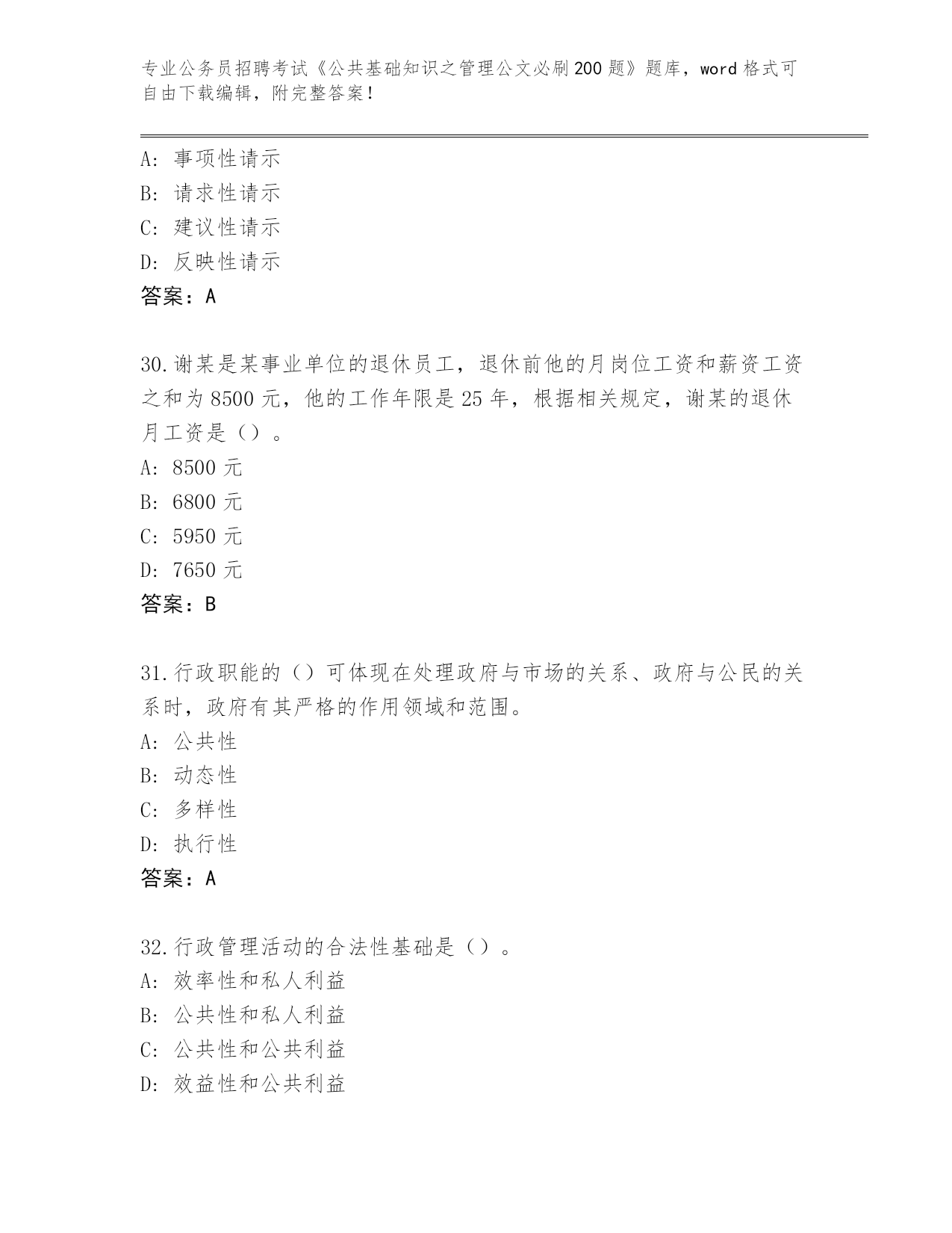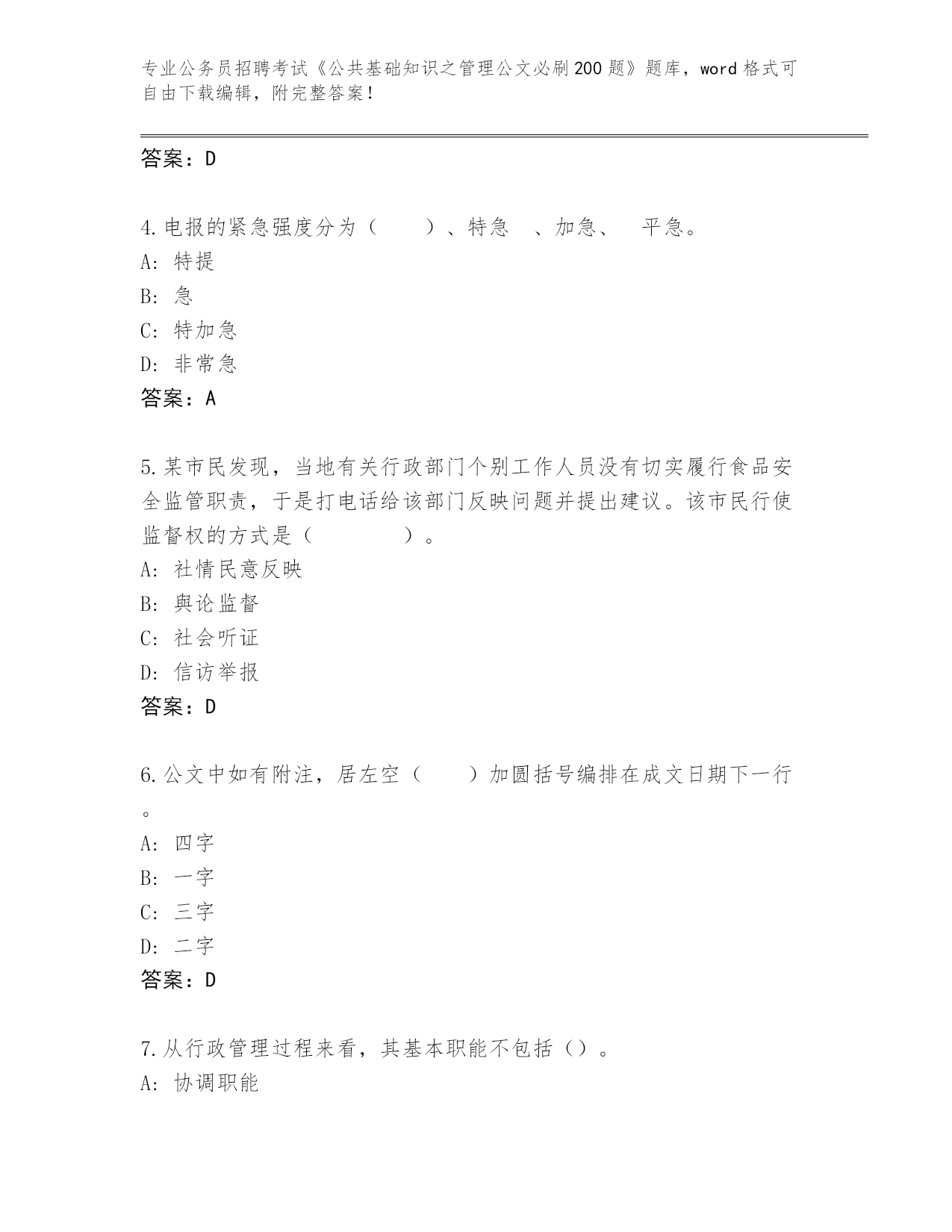 广东省公务员招聘考试《公共基础知识之管理公文必刷200题》完整版及参考答案(最新).docx