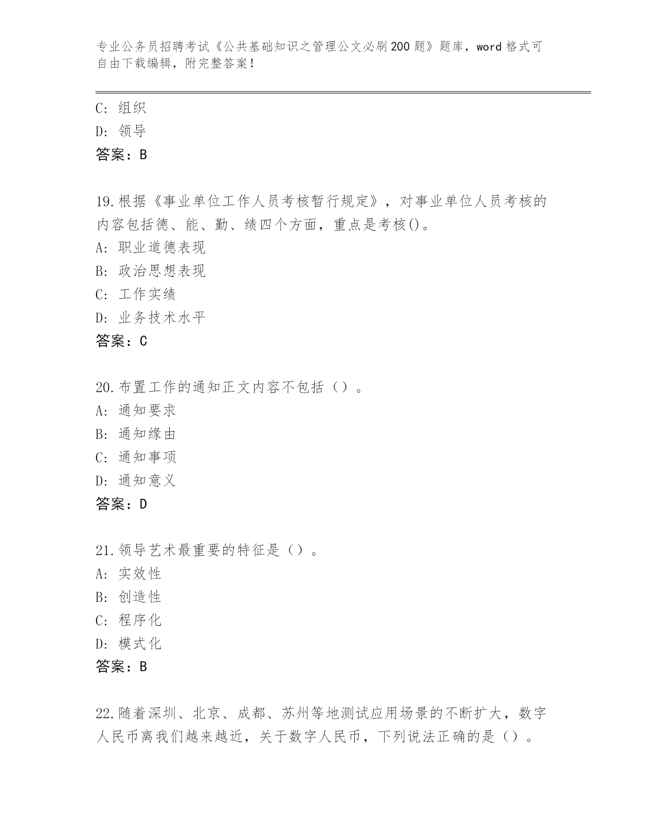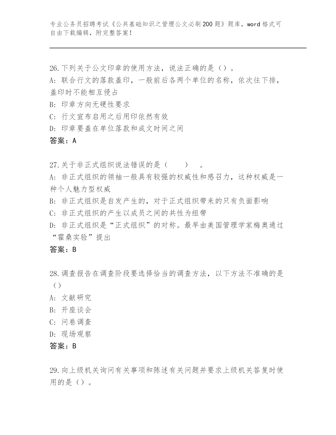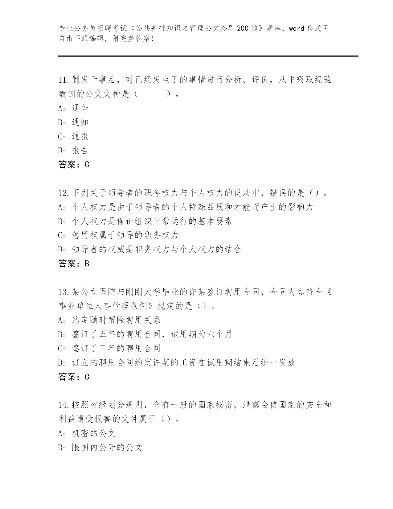 广东省公务员招聘考试《公共基础知识之管理公文必刷200题》完整版及参考答案(最新)