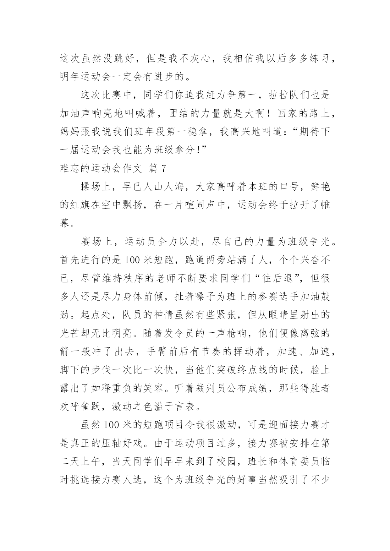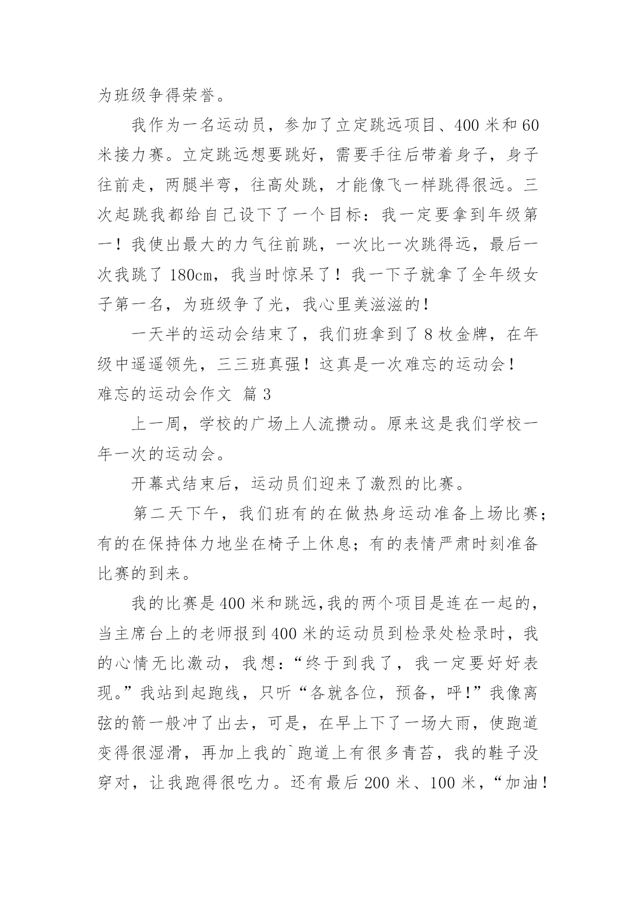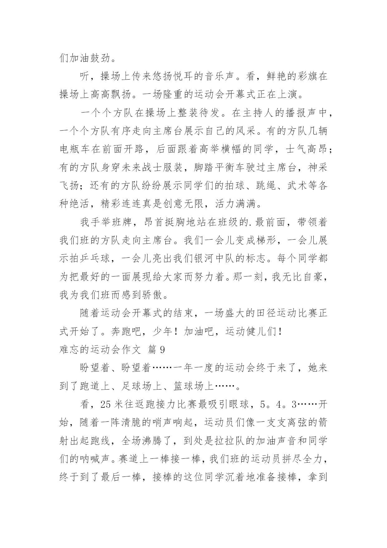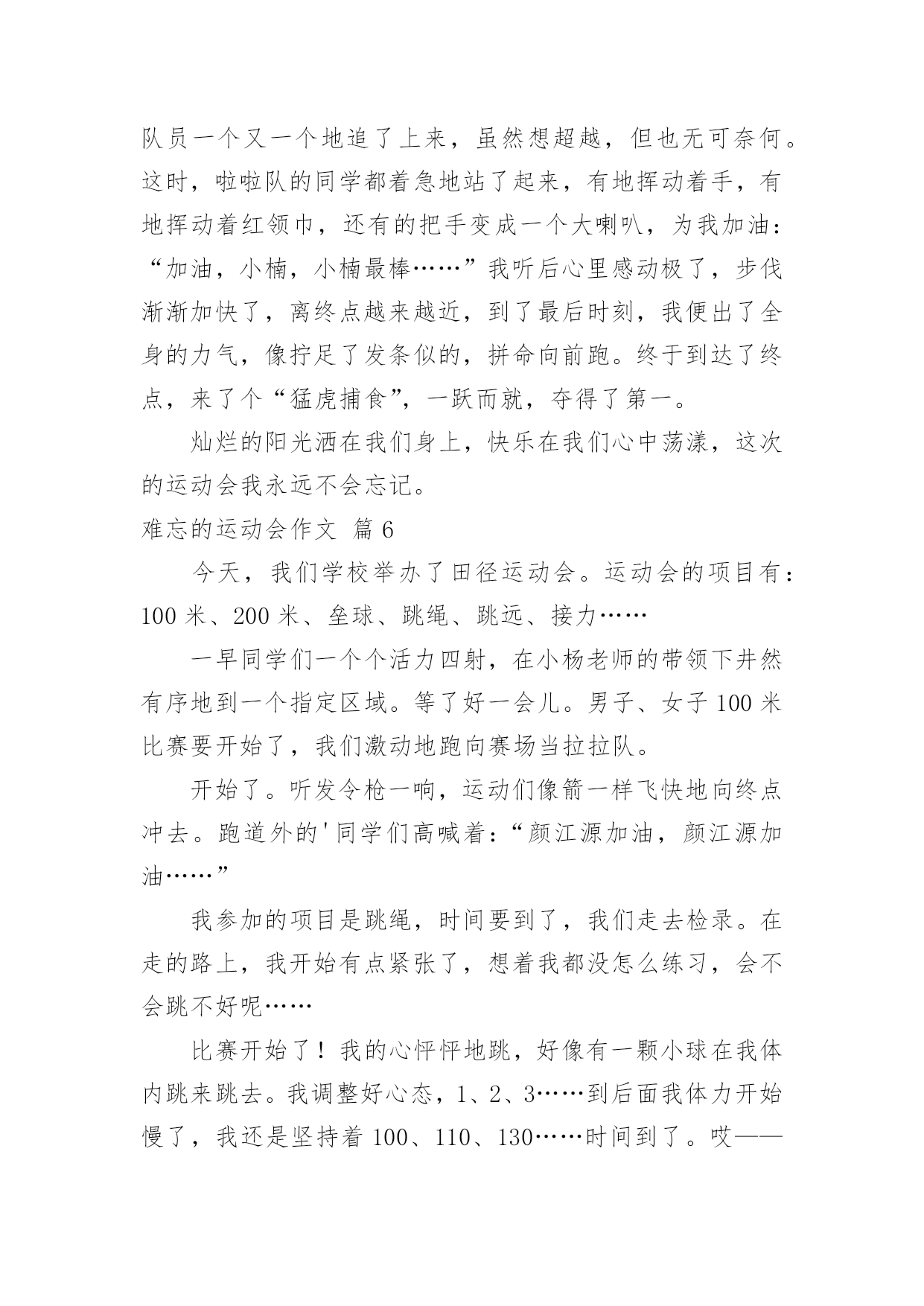 难忘的运动会作文难忘的运动会作文9篇(热门)无论是在学校还是在社会中,大家对作文都再熟悉不过了吧,借助作文人们可以实现文化交流的目的。为了让您在写作文时更加简单方便,下面是小编精心整理的难忘的运动会作文9篇,希望能够帮助到大家。难忘的运动会作文篇1一年一度的运动会又到了,今天我特别高兴,因为我参加了三年级女子短跑60米和女子跳高两个项目的比赛。大约八点左右,校长宣布运动会开始。我真是既高兴又担心。高兴是因为我经过选拔当上了运动员,可以为班级争光添彩了;担心是因为我等会儿参加运动会的时候会不会摔跤、受伤,还有如果我得不到名次,同学们会不会嘲笑我。“请参加三年级女子短跑60米比赛的运动员到检录处报到”主席台上的老师用高音喇叭喊道。听到这几个字,我真想立刻去检录处报到参加比赛呢!因为这是我第一次参加运动会。可是,检录处在哪儿呢?这是一个问题,我想到去问班主任,可不巧的是班主任不在,班主任在哪儿呢?这又是一个问题,你说这运动会中的问题多不多呢?嘻嘻,刚好高音喇叭又说话了“请参加三年级男子短跑60米的运动员到检录处报到”。就这样男运动员也加入到了我们的队伍中来了。现在,几双眼睛同时朝四面看,终于看到了一个地方,还真有点像检录处呢!我们急忙向那儿走去,走近一问,还真的`是检录处。好在比赛还没有开始,我们就在旁边等着。“钟子越,请到第二跑道来。”检录处的老师说道。预赛开始了,一听到枪声,我就立刻迈开两条腿飞快地跑起来。可是等我跑到终点时,已经有一个人跑到了,也就是说,在预赛中,我只得了第二名。决赛开始了,我紧张得要命,不过还好,枪声一响,我立刻跑了出去,以最快的速度冲到了终点。比赛成绩出来了,哇!我得了第一名。今年的运动会真是难忘啊!我感叹万分。难忘的运动会作文篇2运动会马上开始了,大家用欣喜若狂的心情迎接着一年一度的运动会。因为我们很想拿到队列、比赛名次,所以我们抓紧每一分每一秒练习参赛项目。我们期待着运动会的到来。在一个秋高气爽的日子里,运动会开始了。第一项:队列比赛。随着运动员进行曲响起,方队逐渐走向主席台,一声声嘹亮的口号激动人心。当我们慢慢地走向主席台,迈着整齐的步伐,喊着:奋勇拼搏、展现自我、非比寻常、三三更强!手举黄色牌子,统一的'动作,得到了大家的一致好评。比赛项目开始了,运动员听到“呯”的一声枪响,他们如剑如风地向终点冲去,操场上顿时沸腾了起来,加油声此起彼伏,运动员更是使出全身的力气,奋力拼搏,冲向终点,为班级争得荣誉。我作为一名运动员,参加了立定跳远项目、400米和60米接力赛。立定跳远想要跳好,需要手往后带着身子,身子往前走,两腿半弯,往高处跳,才能像飞一样跳得很远。三次起跳我都给自己设下了一个目标:我一定要拿到年级第一!我使出最大的力气往前跳,一次比一次跳得远,最后一次我跳了180cm,我当时惊呆了!我一下子就拿了全年级女子第一名,为班级争了光,我心里美滋滋的!一天半的运动会结束了,我们班拿到了8枚金牌,在年级中遥遥领先,三三班真强!这真是一次难忘的运动会!难忘的运动会作文篇3上一周,学校的广场上人流攒动。原来这是我们学校一年一次的运动会。开幕式结束后,运动员们迎来了激烈的比赛。第二天下午,我们班有的在做热身运动准备上场比赛;有的在保持体力地坐在椅子上休息;有的表情严肃时刻准备比赛的到来。我的比赛是400米和跳远,我的两个项目是连在一起的,当主席台上的老师报到400米的运动员到检录处检录时,我的心情无比激动,我想:“终于到我了,我一定要好好表现。”我站到起跑线,只听“各就各位,预备,呯!”我像离弦的箭一般冲了出去,可是,在早上下了一场大雨,使跑道变得很湿滑,再加上我的`跑道上有很多青苔,我的鞋子没穿对,让我跑得很吃力。还有最后200米、100米,“加油!加油!”操场上传来一阵阵此起彼伏的欢呼声。按照惯例我是在最后100米的时候要冲刺的,但是,因为之前跑步时用的力太多,我冲刺的时候已经脚发软了,没有力往前冲,最后我得了第七名。对我来说第七名这个名次非常丢脸,跑完400我有立马跑到了跳远的地方,在跳远时我心用于而力不足,最后我400米和跳远都没有进决赛,没有为班级争光,回到班级以后,我心不干,伤心地哭了。后来我想,今年跑步跑不好,明年可以再跑,主要是重在参与嘛。我的心情放松下来了,我暗暗在心里对自己说:李昊翔,加油!难忘的运动会作文篇4迎着秋风,踏着秋叶,赤湾学校一年一度的田径运动会在同学们的欢呼声中拉开了序幕。整个校园弥漫着令人兴奋的欢快气息。凭着小学部运动会成绩年年第一的我们,在运动会这一天,胸前仿佛挂了一块闪亮亮的金牌,因此我们满脑子都是奖牌奖状,并没有真正思考过,我们为什么会赢。怀着一颗为班级荣誉奋斗的心,我们个个登上了赛场。随着一声枪响,一声哨声,五年级二班的运动健儿们拼尽全力的冲向了终点。不管是拉拉队的