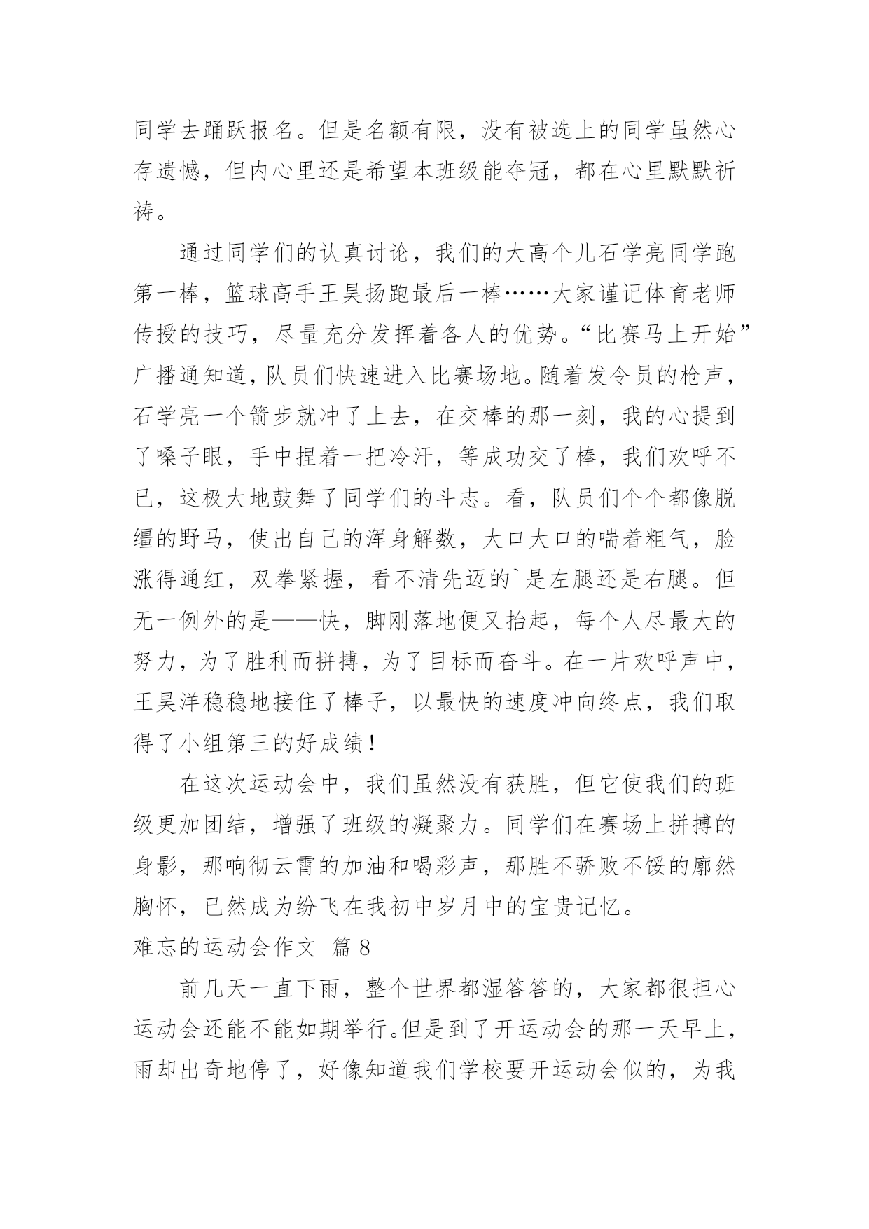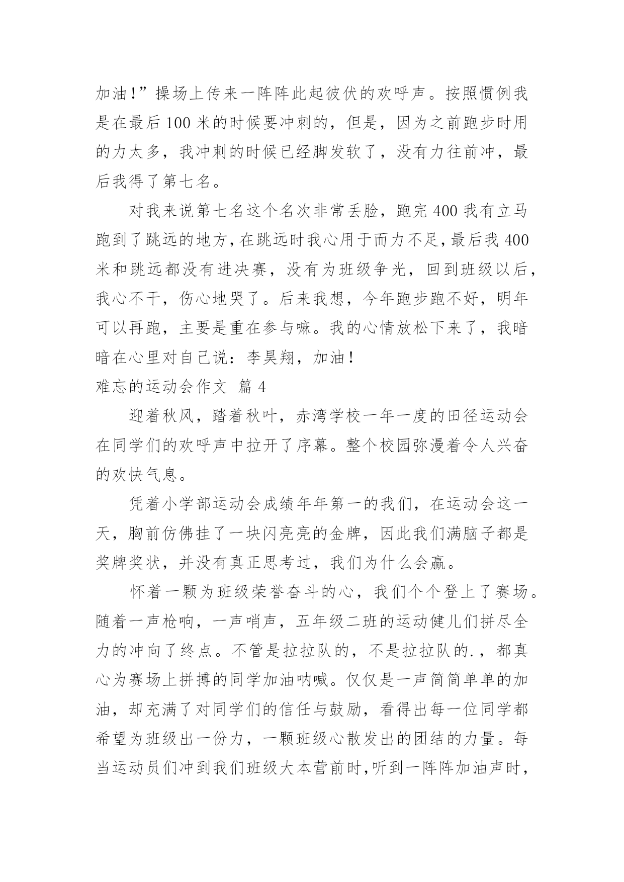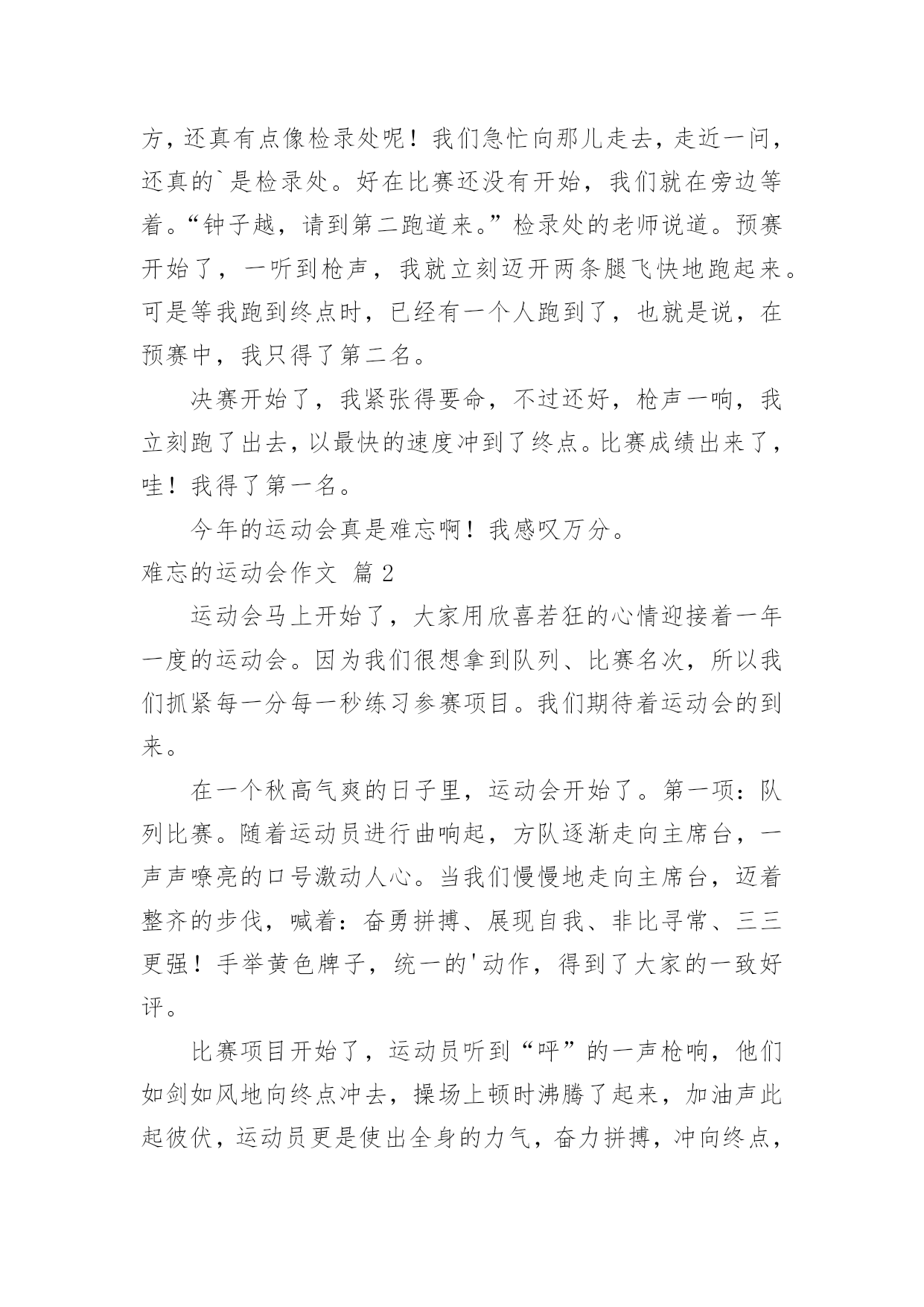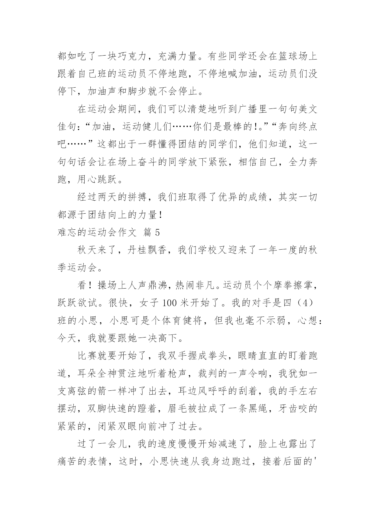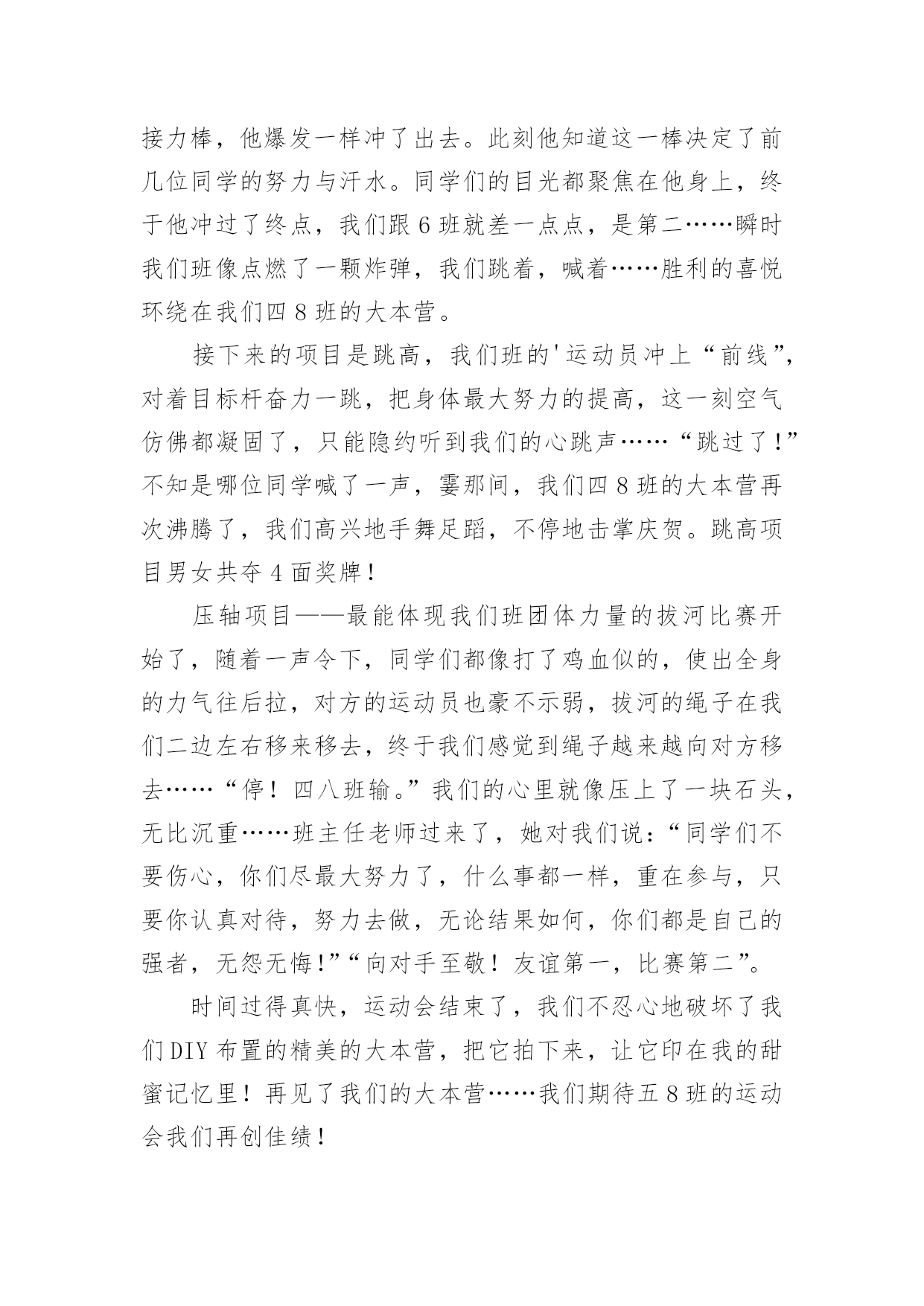难忘的运动会作文难忘的运动会作文9篇(热门)无论是在学校还是在社会中,大家对作文都再熟悉不过了吧,借助作文人们可以实现文化交流的目的。为了让您在写作文时更加简单方便,下面是小编精心整理的难忘的运动会作文9篇,希望能够帮助到大家。难忘的运动会作文篇1一年一度的运动会又到了,今天我特别高兴,因为我参加了三年级女子短跑60米和女子跳高两个项目的比赛。大约八点左右,校长宣布运动会开始。我真是既高兴又担心。高兴是因为我经过选拔当上了运动员,可以为班级争光添彩了;担心是因为我等会儿参加运动会的时候会不会摔跤、受伤,还有如果我得不到名次,同学们会不会嘲笑我。“请参加三年级女子短跑60米比赛的运动员到检录处报到”主席台上的老师用高音喇叭喊道。听到这几个字,我真想立刻去检录处报到参加比赛呢!因为这是我第一次参加运动会。可是,检录处在哪儿呢?这是一个问题,我想到去问班主任,可不巧的是班主任不在,班主任在哪儿呢?这又是一个问题,你说这运动会中的问题多不多呢?嘻嘻,刚好高音喇叭又说话了“请参加三年级男子短跑60米的运动员到检录处报到”。就这样男运动员也加入到了我们的队伍中来了。现在,几双眼睛同时朝四面看,终于看到了一个地方,还真有点像检录处呢!我们急忙向那儿走去,走近一问,还真的`是检录处。好在比赛还没有开始,我们就在旁边等着。“钟子越,请到第二跑道来。”检录处的老师说道。预赛开始了,一听到枪声,我就立刻迈开两条腿飞快地跑起来。可是等我跑到终点时,已经有一个人跑到了,也就是说,在预赛中,我只得了第二名。决赛开始了,我紧张得要命,不过还好,枪声一响,我立刻跑了出去,以最快的速度冲到了终点。比赛成绩出来了,哇!我得了第一名。今年的运动会真是难忘啊!我感叹万分。难忘的运动会作文篇2运动会马上开始了,大家用欣喜若狂的心情迎接着一年一度的运动会。因为我们很想拿到队列、比赛名次,所以我们抓紧每一分每一秒练习参赛项目。我们期待着运动会的到来。在一个秋高气爽的日子里,运动会开始了。第一项:队列比赛。随着运动员进行曲响起,方队逐渐走向主席台,一声声嘹亮的口号激动人心。当我们慢慢地走向主席台,迈着整齐的步伐,喊着:奋勇拼搏、展现自我、非比寻常、三三更强!手举黄色牌子,统一的'动作,得到了大家的一致好评。比赛项目开始了,运动员听到“呯”的一声枪响,他们如剑如风地向终点冲去,操场上顿时沸腾了起来,加油声此起彼伏,运动员更是使出全身的力气,奋力拼搏,冲向终点,为班级争得荣誉。我作为一名运动员,参加了立定跳远项目、400米和60米接力赛。立定跳远想要跳好,需要手往后带着身子,身子往前走,两腿半弯,往高处跳,才能像飞一样跳得很远。三次起跳我都给自己设下了一个目标:我一定要拿到年级第一!我使出最大的力气往前跳,一次比一次跳得远,最后一次我跳了180cm,我当时惊呆了!我一下子就拿了全年级女子第一名,为班级争了光,我心里美滋滋的!一天半的运动会结束了,我们班拿到了8枚金牌,在年级中遥遥领先,三三班真强!这真是一次难忘的运动会!难忘的运动会作文篇3上一周,学校的广场上人流攒动。原来这是我们学校一年一次的运动会。开幕式结束后,运动员们迎来了激烈的比赛。第二天下午,我们班有的在做热身运动准备上场比赛;有的在保持体力地坐在椅子上休息;有的表情严肃时刻准备比赛的到来。我的比赛是400米和跳远,我的两个项目是连在一起的,当主席台上的老师报到400米的运动员到检录处检录时,我的心情无比激动,我想:“终于到我了,我一定要好好表现。”我站到起跑线,只听“各就各位,预备,呯!”我像离弦的箭一般冲了出去,可是,在早上下了一场大雨,使跑道变得很湿滑,再加上我的`跑道上有很多青苔,我的鞋子没穿对,让我跑得很吃力。还有最后200米、100米,“加油!加油!”操场上传来一阵阵此起彼伏的欢呼声。按照惯例我是在最后100米的时候要冲刺的,但是,因为之前跑步时用的力太多,我冲刺的时候已经脚发软了,没有力往前冲,最后我得了第七名。对我来说第七名这个名次非常丢脸,跑完400我有立马跑到了跳远的地方,在跳远时我心用于而力不足,最后我400米和跳远都没有进决赛,没有为班级争光,回到班级以后,我心不干,伤心地哭了。后来我想,今年跑步跑不好,明年可以再跑,主要是重在参与嘛。我的心情放松下来了,我暗暗在心里对自己说:李昊翔,加油!难忘的运动会作文篇4迎着秋风,踏着秋叶,赤湾学校一年一度的田径运动会在同学们的欢呼声中拉开了序幕。整个校园弥漫着令人兴奋的欢快气息。凭着小学部运动会成绩年年第一的我们,在运动会这一天,胸前仿佛挂了一块闪亮亮的金牌,因此我们满脑子都是奖牌奖状,并没有真正思考过,我们为什么会赢。怀着一颗为班级荣誉奋斗的心,我们个个登上了赛场。随着一声枪响,一声哨声,五年级二班的运动健儿们拼尽全力的冲向了终点。不管是拉拉队的