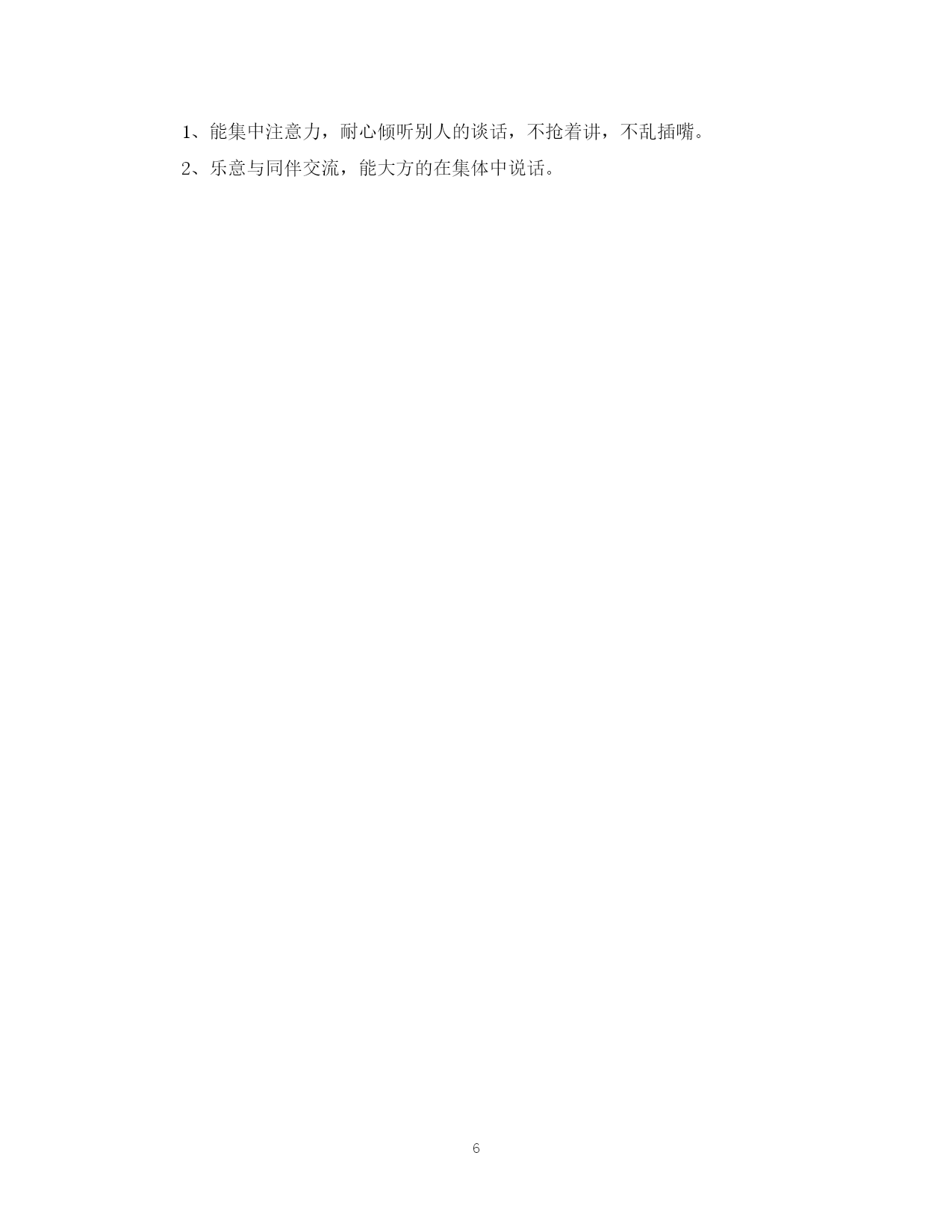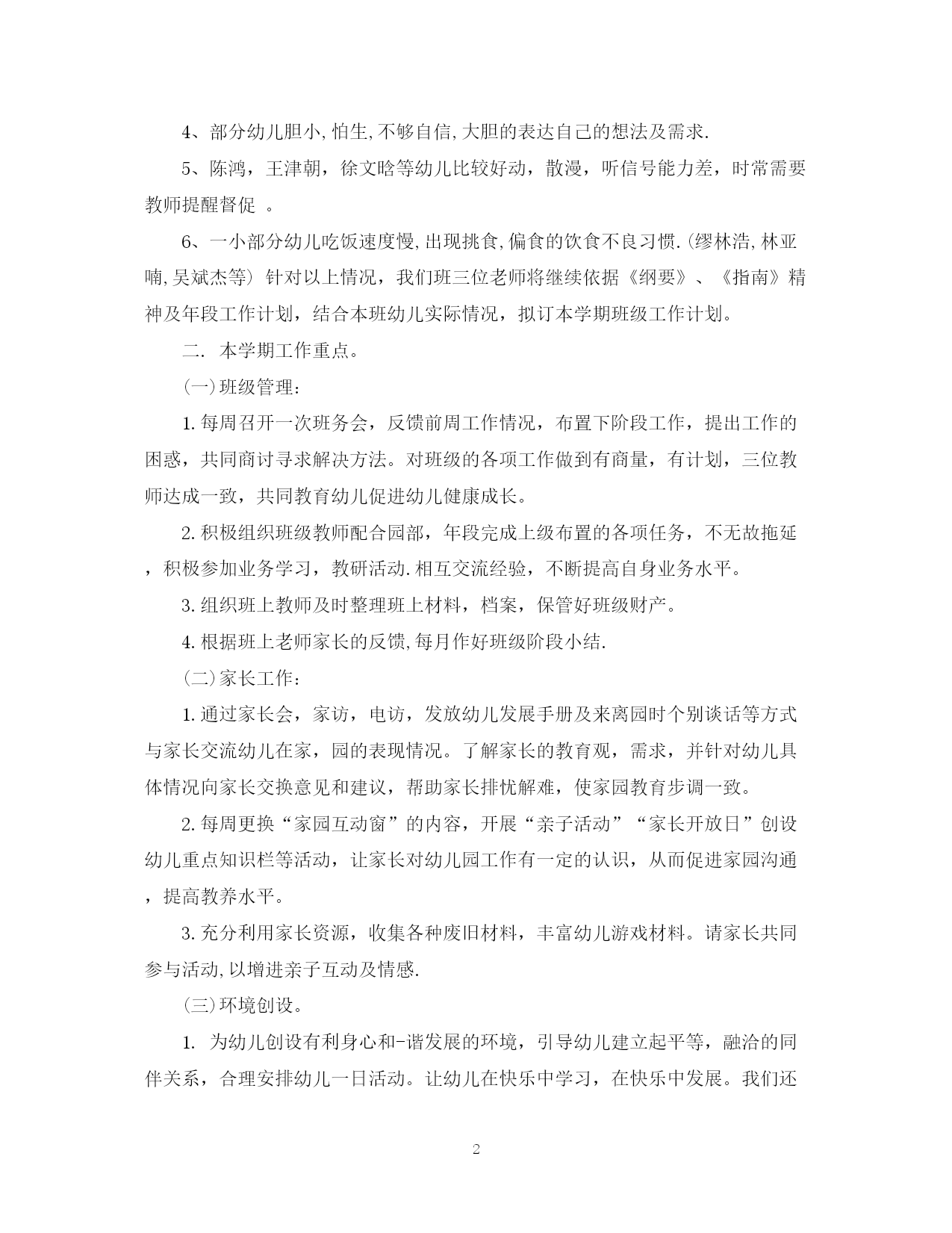 此资料由网络收集而来,如有侵权请告知上传者立即删除。资料共分享,我们负责传递知识。PAGEPAGE6幼儿园大班学科计划时间过得真快,一眨眼就迎来了新的一学期,幼儿园大班的学科计划是怎样的呢?下面是范文网小编收集整理关于幼儿园大班学科计划的资料,希望大家喜欢。幼儿园大班学科计划篇一一.班级情况分析:1.幼儿情况:本班24名幼儿,男生11名,女生13名。大多数幼儿活泼开朗,在经过两年的幼儿园学习生活,幼儿已养成了良好的生活卫生习惯,生活自理能力及安全保护意识较之也有一定的提高。幼儿能积极参加各项活动,主动与人交往,并正确使用礼貌用语,在各领域也有较好的发展。如在语言方面:幼儿能主动,积极地与同伴交流,较清楚的说出自己的想法和感受,大多数幼儿语言比较完整,流畅,用词比较准确.喜欢翻阅图书,对故事,图书的内容感兴趣,会用普通话与人交流;在科学领域:幼儿能对身边常见事物和现象的变化规律感兴趣,并运用多种感官方式进行探索活动;能理解10以内数的实数意义及数量关系;喜欢种植,饲养等活动。在艺术领域:幼儿能运用自己喜欢的方式进行富有个性的艺术表现活动;能初步感受周围生活中美好的人,事,物和艺术的美,并能大胆的在同伴面前表演。2.家长情况:大部分家长都很重视幼儿的学前教育,能积极配合及支持班级工作,乐于与老师沟通交流,相互交流育儿经验,并为幼儿提供一定数量的图书,玩具,磁带,CD,收集各种废旧材料等。为幼儿丰富了游戏材料;有的家长经常给幼儿讲故事,利用假日带孩子外出游玩,家长信任幼儿园,这些都为为我们班级工作的开展创造了有利条件。但由于全班幼儿发展不平衡,还存在以下几方面的问题:1、部分幼儿个性好强,自我为中心,不懂的相互谦让,不能用正确的方法解决与同伴的纠纷。2、操作常规:有个别幼儿(如:郑宇豪.刘惠、范宇飞等)在进行操作活动时不能较好的控制音量及收拾操作材料。3、倾听能力:部分幼儿倾听能力差,在同伴或老师讲述时,注意力不集中。4、部分幼儿胆小,怕生,不够自信,大胆的表达自己的想法及需求.5、陈鸿,王津朝,徐文晗等幼儿比较好动,散漫,听信号能力差,时常需要教师提醒督促。6、一小部分幼儿吃饭速度慢,出现挑食,偏食的饮食不良习惯.(缪林浩,林亚喃,吴斌杰等)针对以上情况,我们班三位老师将继续依据《纲要》、《指南》精神及年段工作计划,结合本班幼儿实际情况,拟订本学期班级工作计划。二.本学期工作重点。(一)班级管理:1.每周召开一次班务会,反馈前周工作情况,布置下阶段工作,提出工作的困惑,共同商讨寻求解决方法。对班级的各项工作做到有商量,有计划,三位教师达成一致,共同教育幼儿促进幼儿健康成长。2.积极组织班级教师配合园部,年段完成上级布置的各项任务,不无故拖延,积极参加业务学习,教研活动.相互交流经验,不断提高自身业务水平。3.组织班上教师及时整理班上材料,档案,保管好班级财产。4.根据班上老师家长的反馈,每月作好班级阶段小结.(二)家长工作:1.通过家长会,家访,电访,发放幼儿发展手册及来离园时个别谈话等方式与家长交流幼儿在家,园的表现情况。了解家长的教育观,需求,并针对幼儿具体情况向家长交换意见和建议,帮助家长排忧解难,使家园教育步调一致。2.每周更换“家园互动窗”的内容,开展“亲子活动”“家长开放日”创设幼儿重点知识栏等活动,让家长对幼儿园工作有一定的认识,从而促进家园沟通,提高教养水平。3.充分利用家长资源,收集各种废旧材料,丰富幼儿游戏材料。请家长共同参与活动,以增进亲子互动及情感.(三)环境创设。1.为幼儿创设有利身心和-谐发展的环境,引导幼儿建立起平等,融洽的同伴关系,合理安排幼儿一日活动。让幼儿在快乐中学习,在快乐中发展。我们还将根据本班主题,领域教学内容及游戏的需要,幼儿的兴趣,在班上创设丰富的区角内容及相应的主题墙。将教育内容渗透于幼儿一日活动的区角中,及时更换,充实,以提供成品,半成品材料为主。建立合理的活动的规则,鼓励幼儿亲自动手动脑,并运用多种形式,多种感官参加活动。让幼儿在活动中动手操作,自理,交往,表达等方面的能力得以发展。在班级布置幼儿作品栏,让每个幼儿都有展示作品及欣赏作品的机会,以促进自信心与进取心。(四)各领域具体训练一、健康领域:1、训练幼儿走、跑动作技能。2、锻炼幼儿听觉能力,培养合作能力。3、教育幼儿多动手做自己能做的事情,并注意保护小手。二、社会性领域:1、乐意参加集体活动,学习遵守生活常规和游戏规则。2、会正确使用“请、谢谢、对不起、没关系”等礼貌用语。三、语言领域1、大声连贯地讲述图片内容、感受游戏的快乐。2、知道9.10是教师节,萌发喜欢教师的情感、并学说简短的祝贺语。3、初步感受散文语言的美。4、按口令