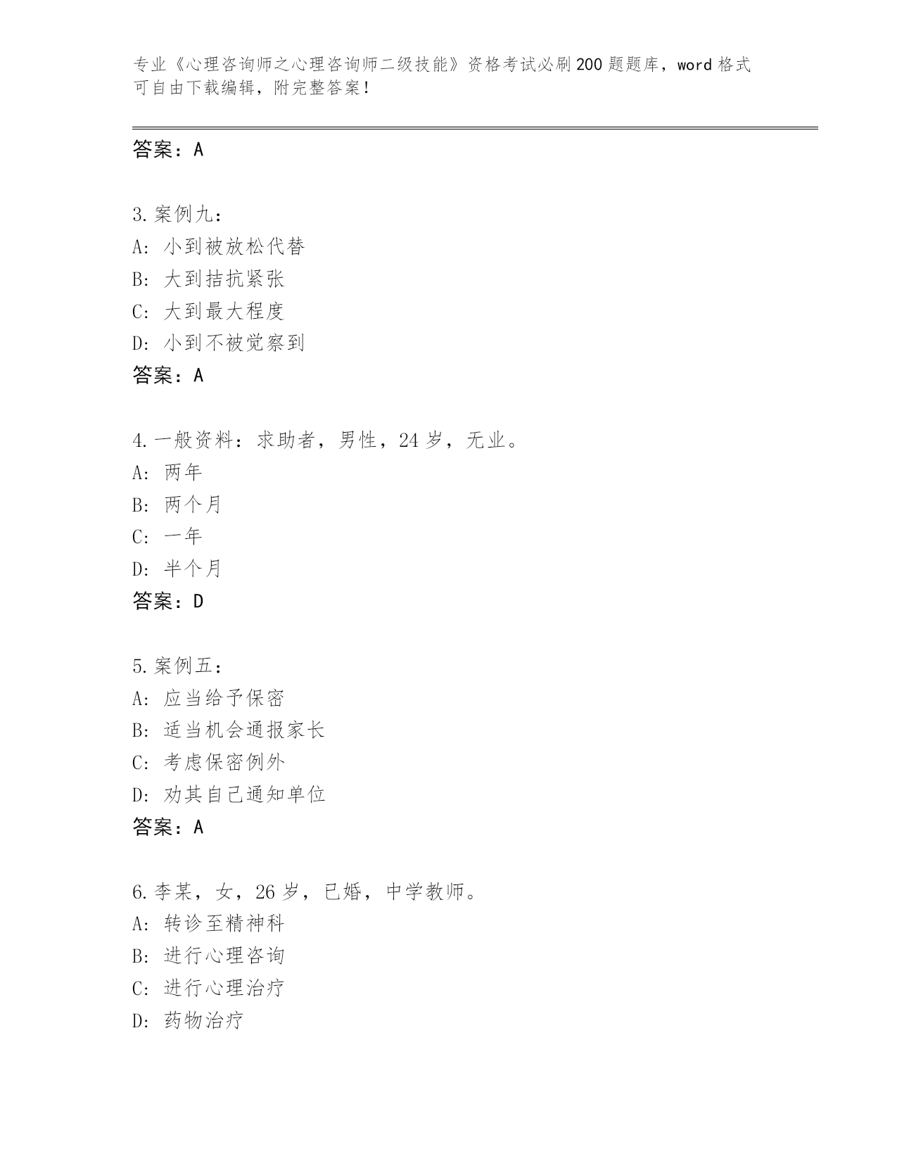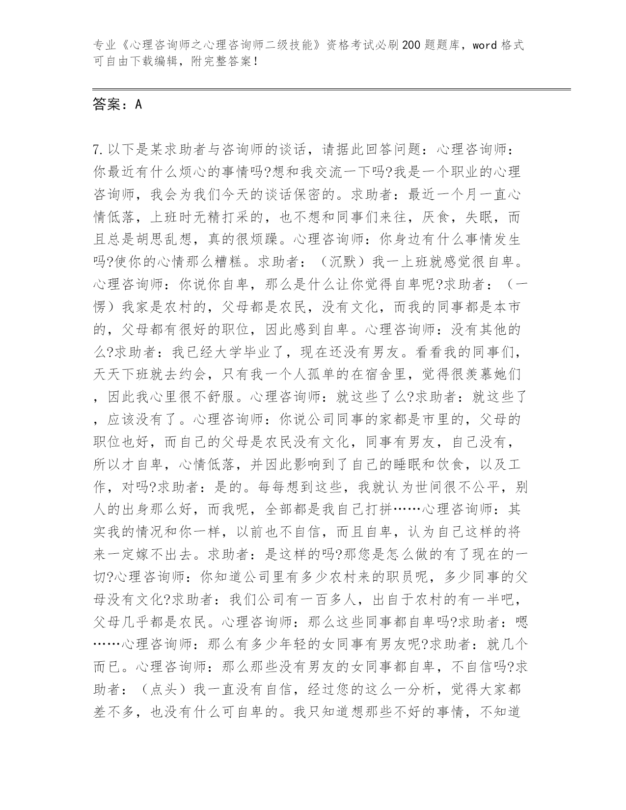 2024江苏省新吴区《心理咨询师之心理咨询师二级技能》考试必刷200题通关秘籍题库(典型题)