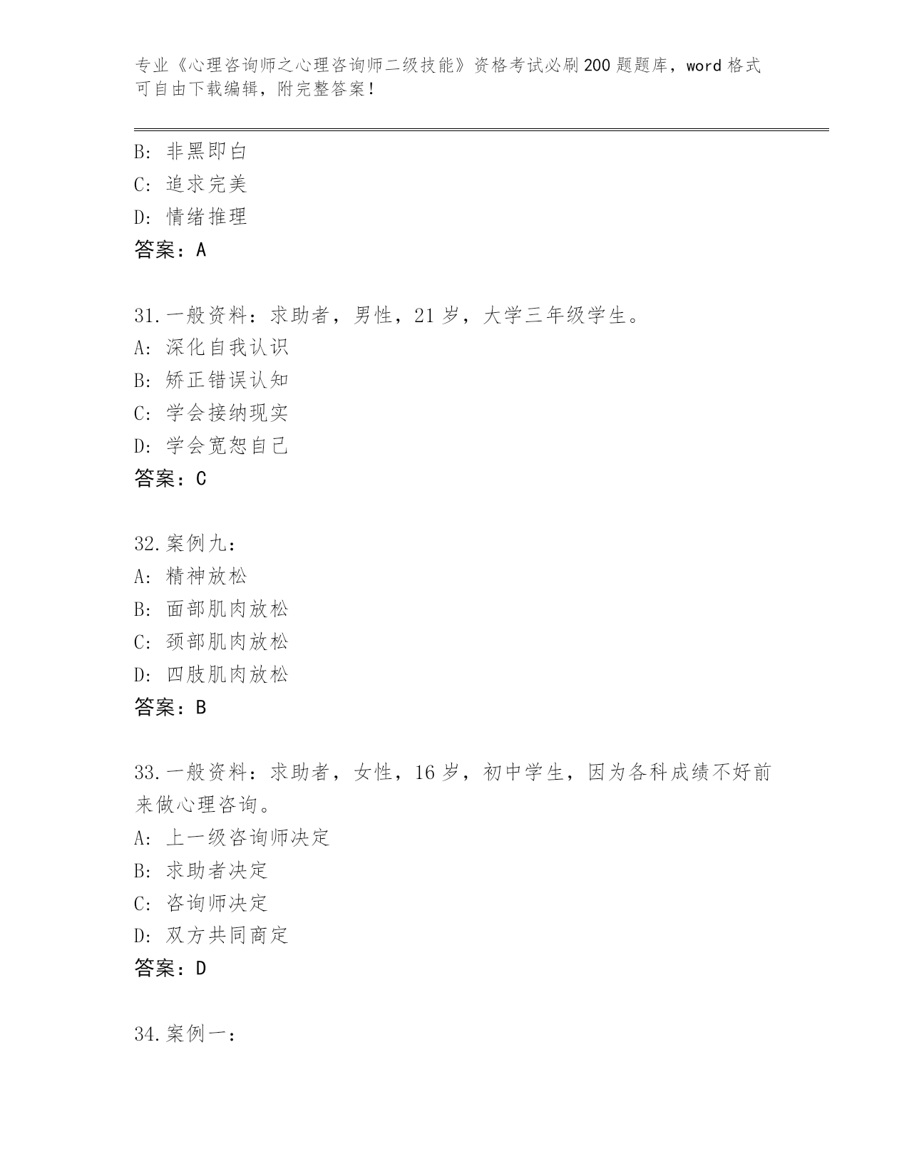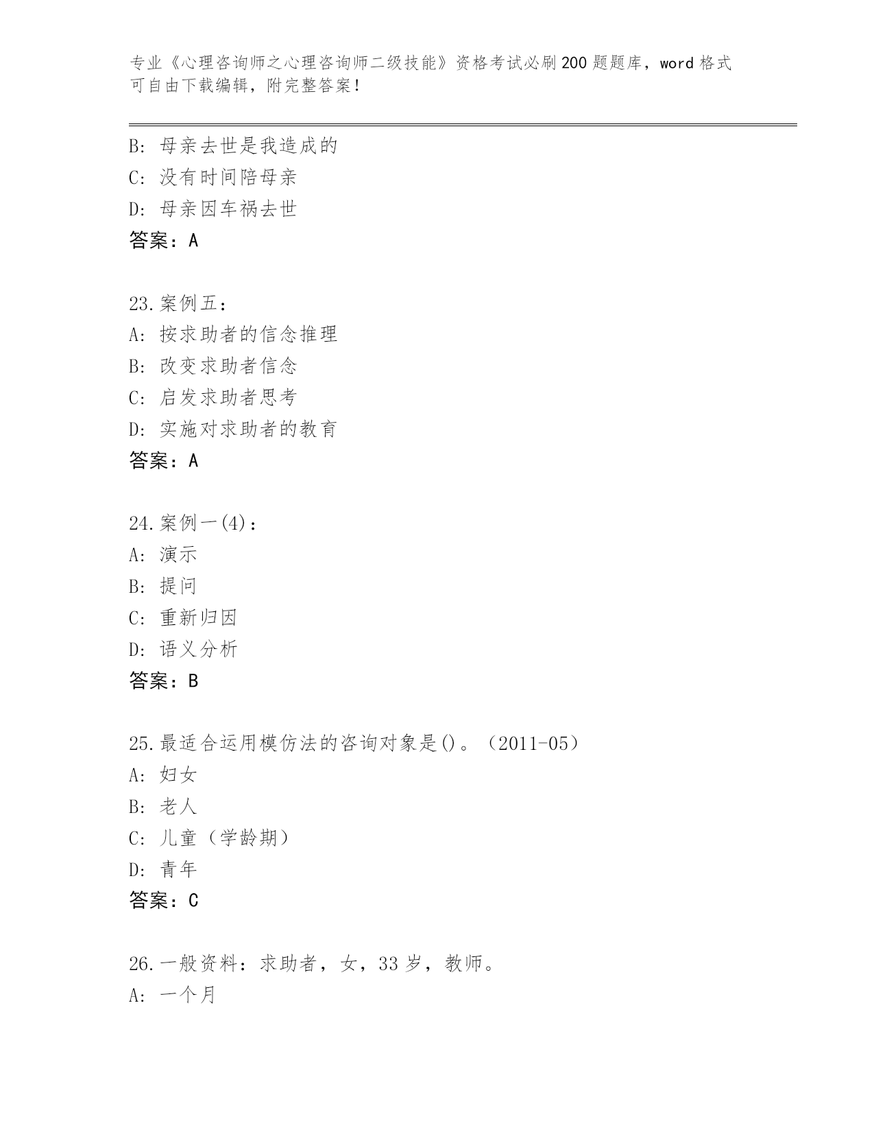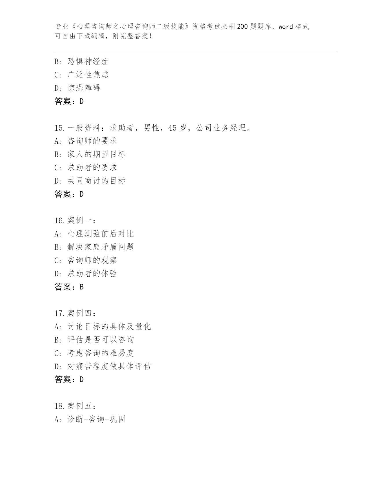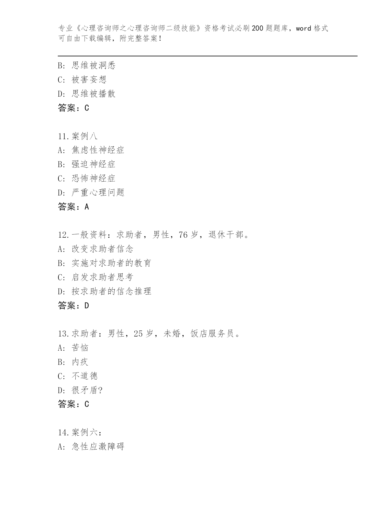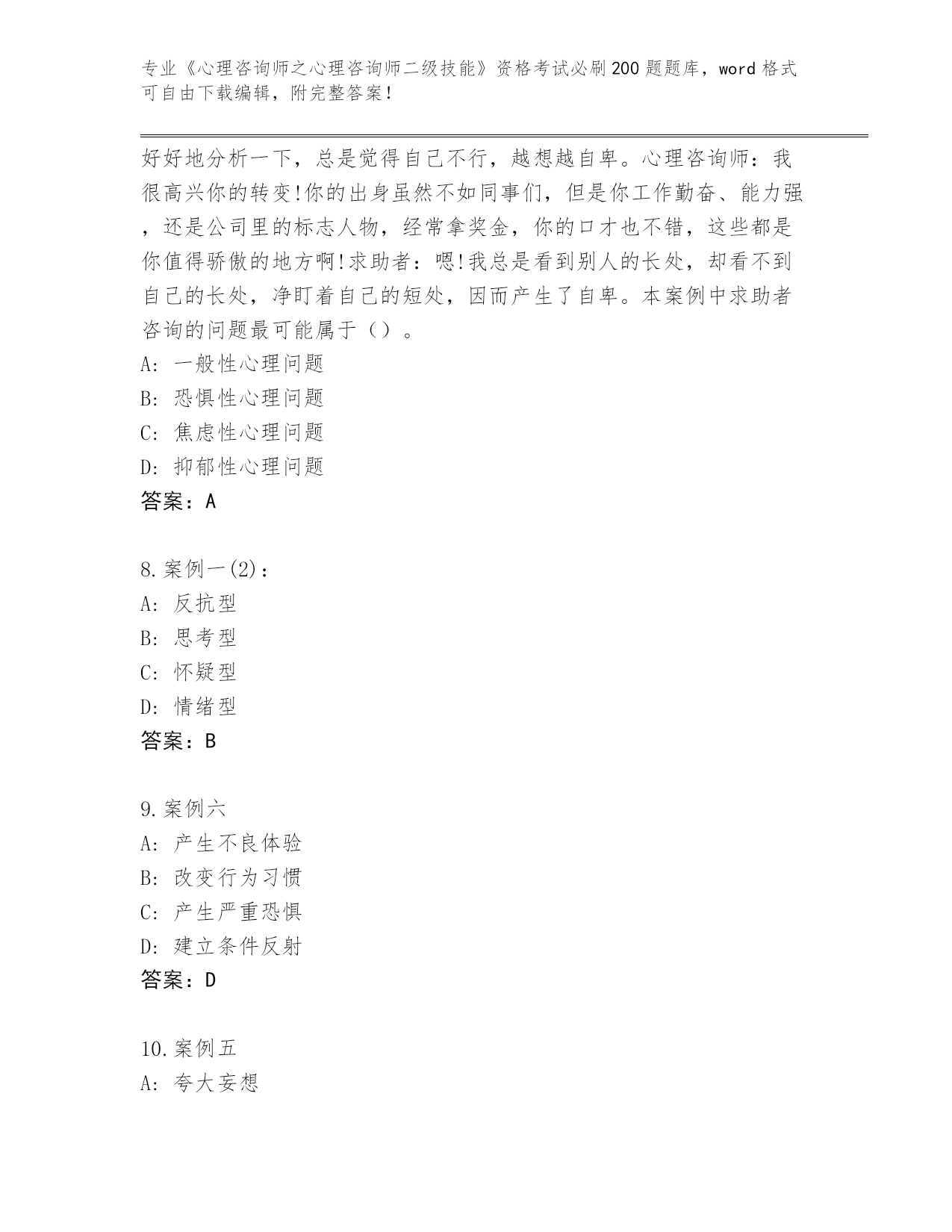 云南省《心理咨询师之心理咨询师二级技能》资格考试必刷200题通关秘籍题库(必刷)