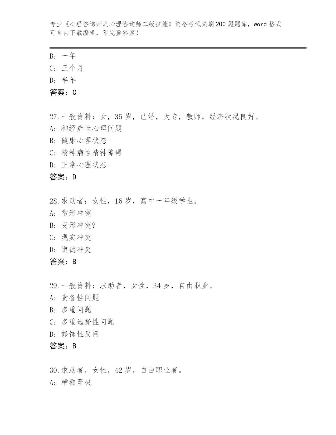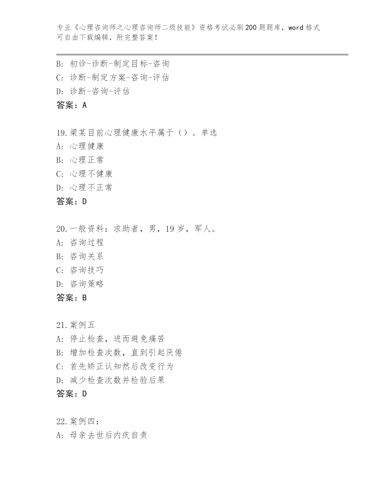河南省孟州市《心理咨询师之心理咨询师二级技能》资格考试必刷200题通关秘籍题库【】