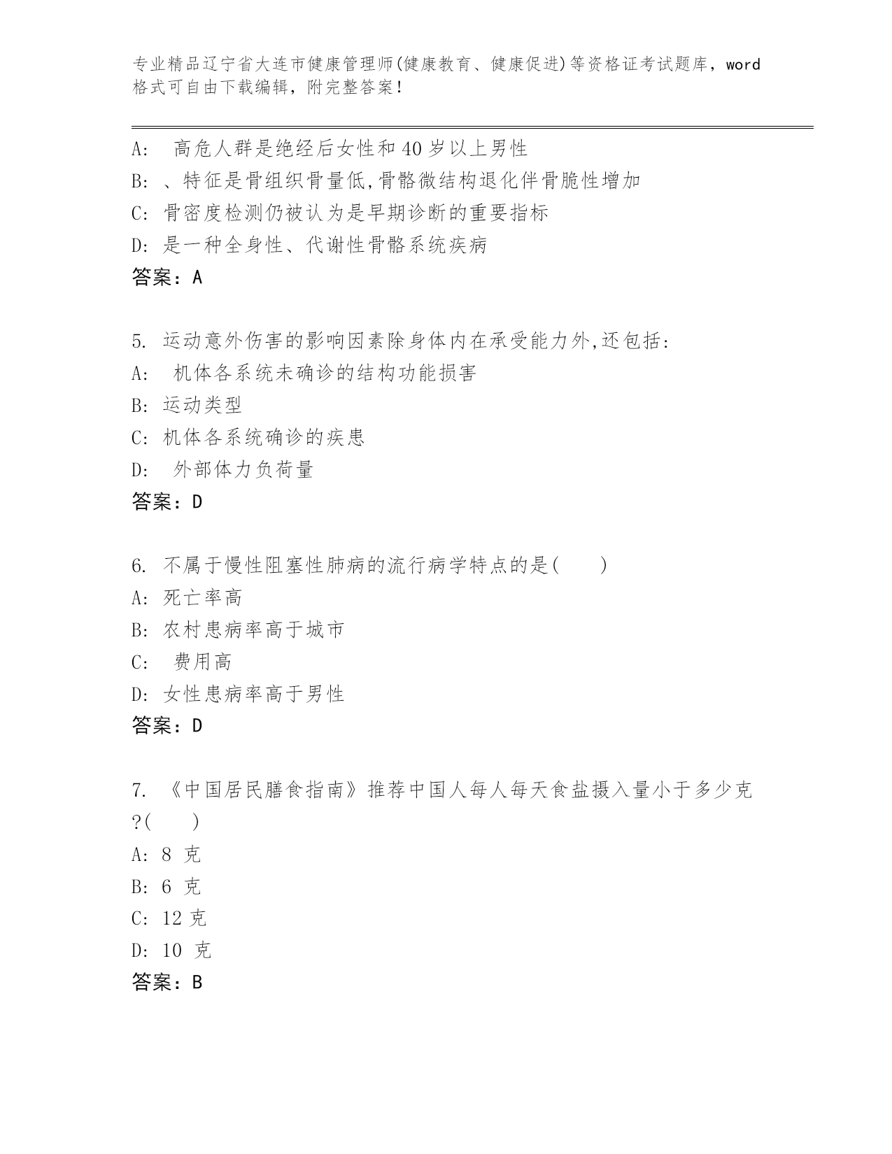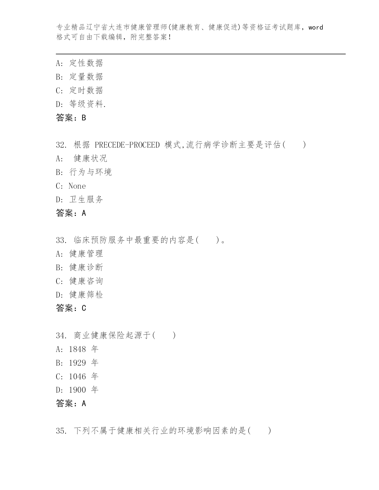 最新辽宁省大连市健康管理师(健康教育、健康促进)等资格证考试内部题库精品(实用)