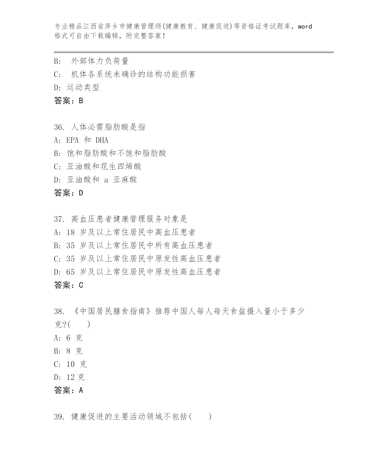 江西省萍乡市健康管理师(健康教育、健康促进)等资格证考试大全及答案【全国通用】.docx