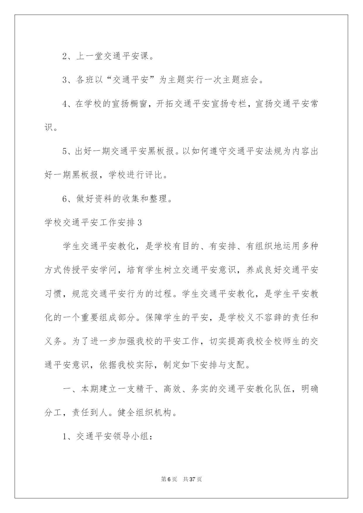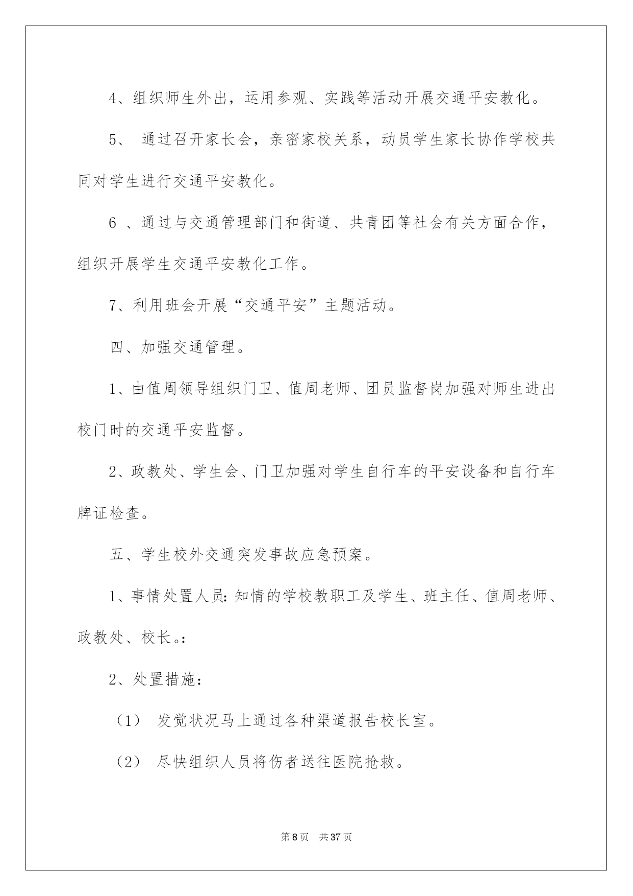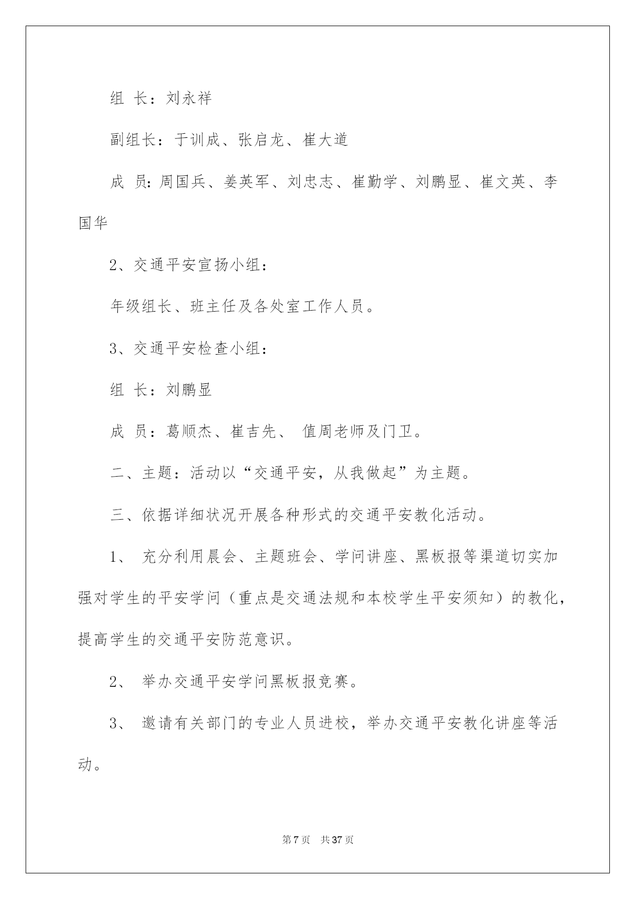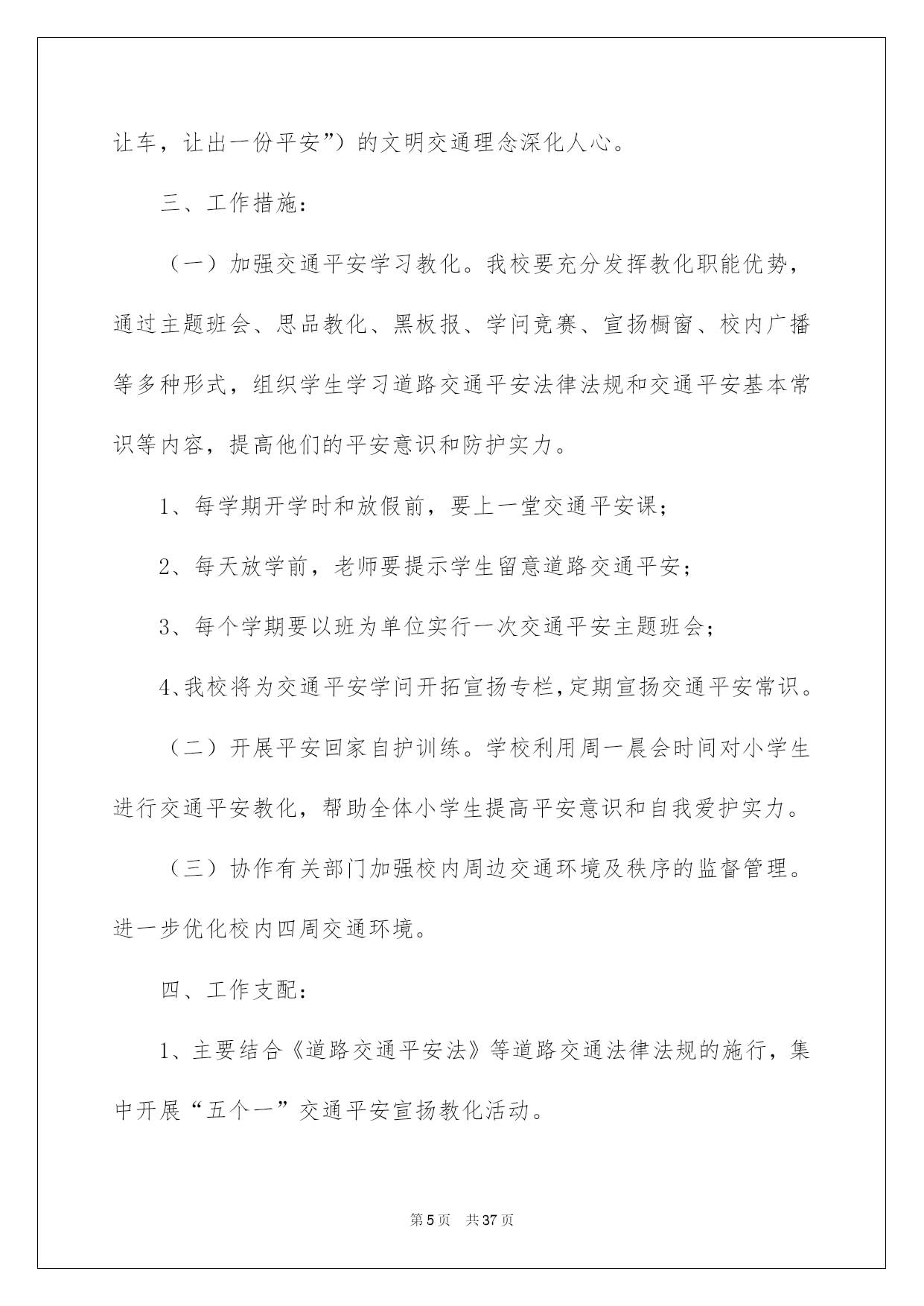 第PAGE\*Arabic\*MERGEFORMAT37页共NUMPAGES\*Arabic\*MERGEFORMAT37页第PAGE\*MERGEFORMAT37页共NUMPAGES\*MERGEFORMAT37页第PAGE\*MERGEFORMAT37页共NUMPAGES\*MERGEFORMAT37页第PAGE\*MERGEFORMAT37页共NUMPAGES\*MERGEFORMAT37页第PAGE\*MERGEFORMAT37页共NUMPAGES\*MERGEFORMAT37页第PAGE\*MERGEFORMAT37页共NUMPAGES\*MERGEFORMAT37页第PAGE\*MERGEFORMAT37页共NUMPAGES\*MERGEFORMAT37页第PAGE\*MERGEFORMAT37页共NUMPAGES\*MERGEFORMAT37页第PAGE\*MERGEFORMAT37页共NUMPAGES\*MERGEFORMAT37页第PAGE\*MERGEFORMAT37页共NUMPAGES\*MERGEFORMAT37页第PAGE\*MERGEFORMAT37页共NUMPAGES\*MERGEFORMAT37页2022学校交通安全工作计划学校交通平安工作安排(15篇)时间消逝得如此之快,我们的工作又将在劳碌中充溢着,在喜悦中收获着,是时候抽出时间写写安排了。那么我们该怎么去写安排呢?下面是我收集整理的学校交通平安工作安排,仅供参考,希望能够帮助到大家。学校交通平安工作安排1为了增加学生的平安意识,提高学生的自我爱护实力,使学生形成良好的平安行为习惯,树立学校良好的校内风气,学校交通平安工作安排。以达到高兴奋兴上学来,平平安安回家去的目的。特制定"交通平安工作安排"详细措施实施方法如下:1、学期初,班主任要与学生及学生家长签订平安责任书。2、学校及各位老师要向学生明确路队的详细要求,随时督促指导学生按要求去做,对不符合要求的学生要进行耐性、细致的思想教化工作,使他们相识到违反"路队制"的危害性,从而提高学生的平安意识和自我爱护意识。3、利用晨会、班会、校会、广播时间教化学生遵守交通规则,避开交通事故的发生,工作安排《学校交通平安工作安排》。强调小黄帽路队制的作用,树立放学必需排好路队的意识。切实发挥"交通平安先进班集体"和"路队标兵"的示范作用。4、各班要专时专用,仔细学习《小学生交通平安手册》,切实让同学们相识交通信号、交通标线等,提高自护实力。5、各位任课老师要准时让检查路队的学生到指定位置去检查。检查路队的小干部要留意自身的平安,仔细的履行职责。做到记录公正精确、明晰。刚好的向班主任老师反映状况。6、学校及班主任要教化学生,杜绝学生乘坐无牌、未检、超载、车辆改装的车辆。7、每周先锋岗同学严格检查小黄帽的佩带状况、携带交通平安卡状况、学生违纪状况,大队辅导员定期抽查。并严格记录,对不戴小黄帽、交通平安卡及违纪的学生要问明其缘由,加以教化。并且学生对出现问题的路队及违纪学生刚好实行教化提示。并且向班主任反映。班主任必需仔细重视路队问题,刚好订正。三次以上者向学校领导反映,学校将实行相应的措施。对小黄帽路队执行状况好的班级刚好赐予确定,对不能履行小黄帽制度的路队要刚好订正。8、把小黄帽路队列入班级考核项目中,每周做好总结。各班每月底进行路队标兵的初评,学期末对好的路队和个人进行总评。为学生树立好的榜样。9、对低年级家长来校门口接学生的状况,学校制定出家长接送学生要在离校五十米以外。针对校门口的小商小贩乱摆摊,学校一方面要从饮食卫生角度去教化学生,另一方面不许学生到摊上购买或围观。一经发觉肃穆处理。保证学生放学上学的交通秩序。10、学校除了对学生的放学、上学规定要求以外,还要规定学生在校外遵守交通法规进行教化。在节假日放假前我校要把学生的平安教化为一项重点工作来完成。学校领导以及班主任老师进行教化。并签订平安责任书。11、对于离家较远需乘坐公共汽车上下学的同学进行重点教化,留意等车时的平安,上下车的平安,提示下车后不随意乱跑。12、每月评出"优秀路队""路队标兵",期末评出"优秀平安班级"。学校交通平安工作安排2为进一步增加小学生的交通平安意识、法律意识和文明意识,进一步提高小学生的自我防护实力,防止和削减学生的发生,为学生的健康成长创建一个良好的道路交通环境,结合学校实际,特拟订我校本学期交通平安工作安排。一、建立健全学校交通平安工作领导小组:组长:xxx(校长)副组长:xxx(教育主任)成员:xxxxxxxxxxxxxxxxxxxxxxxxxxxx二、工