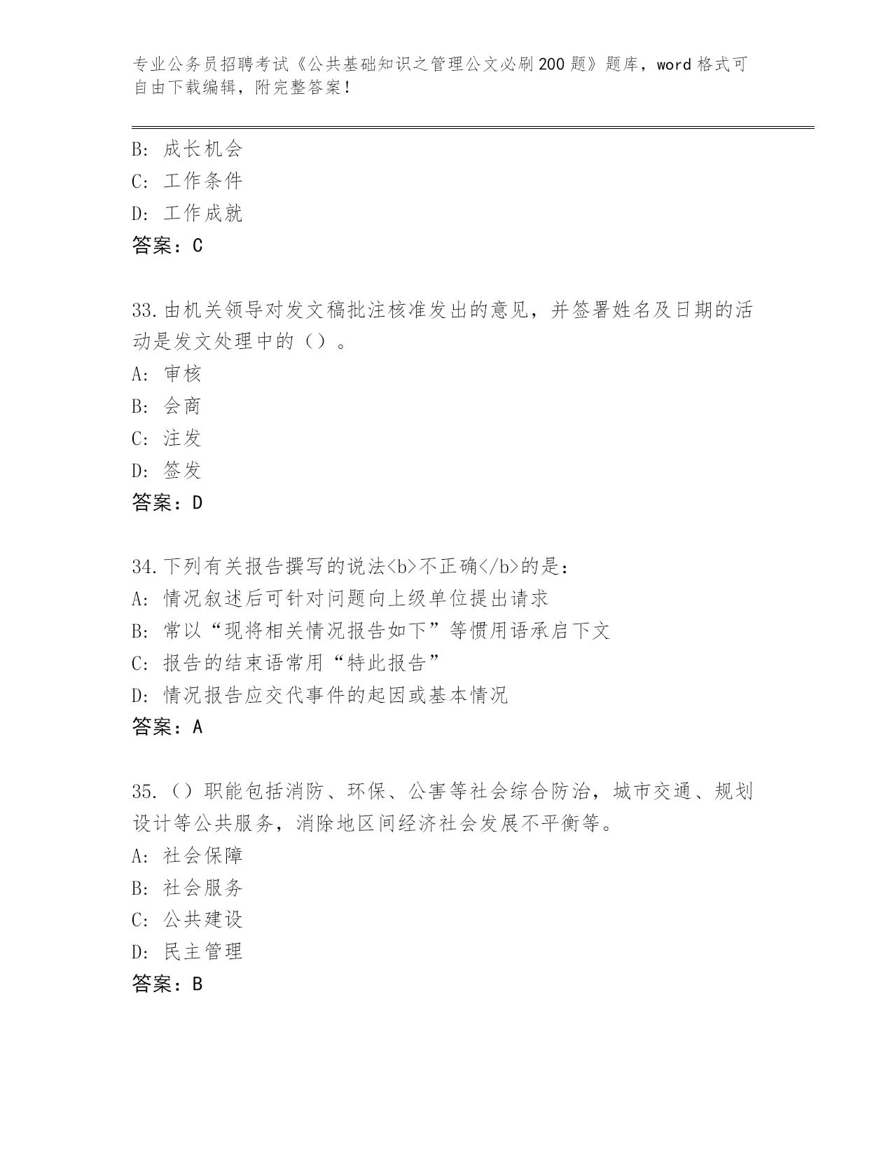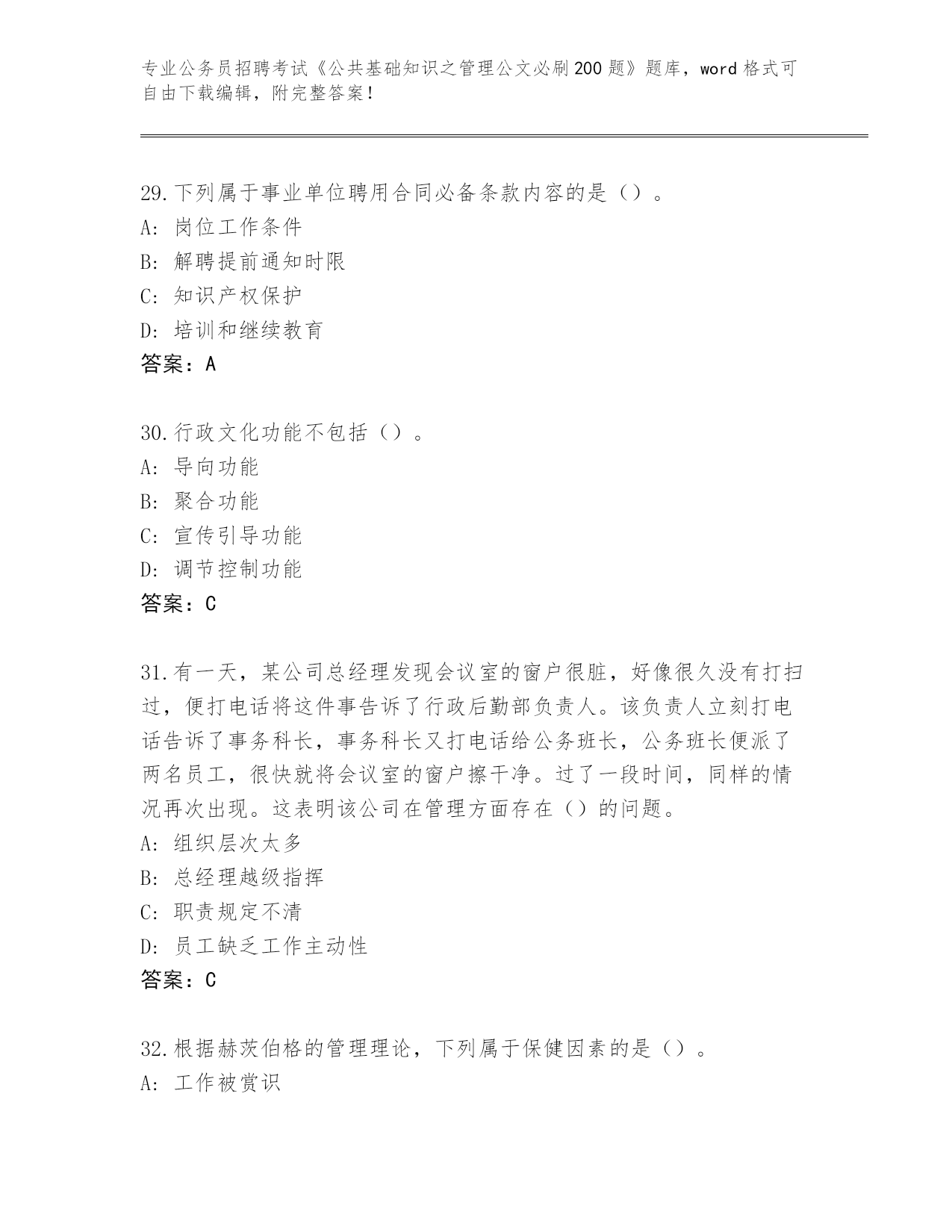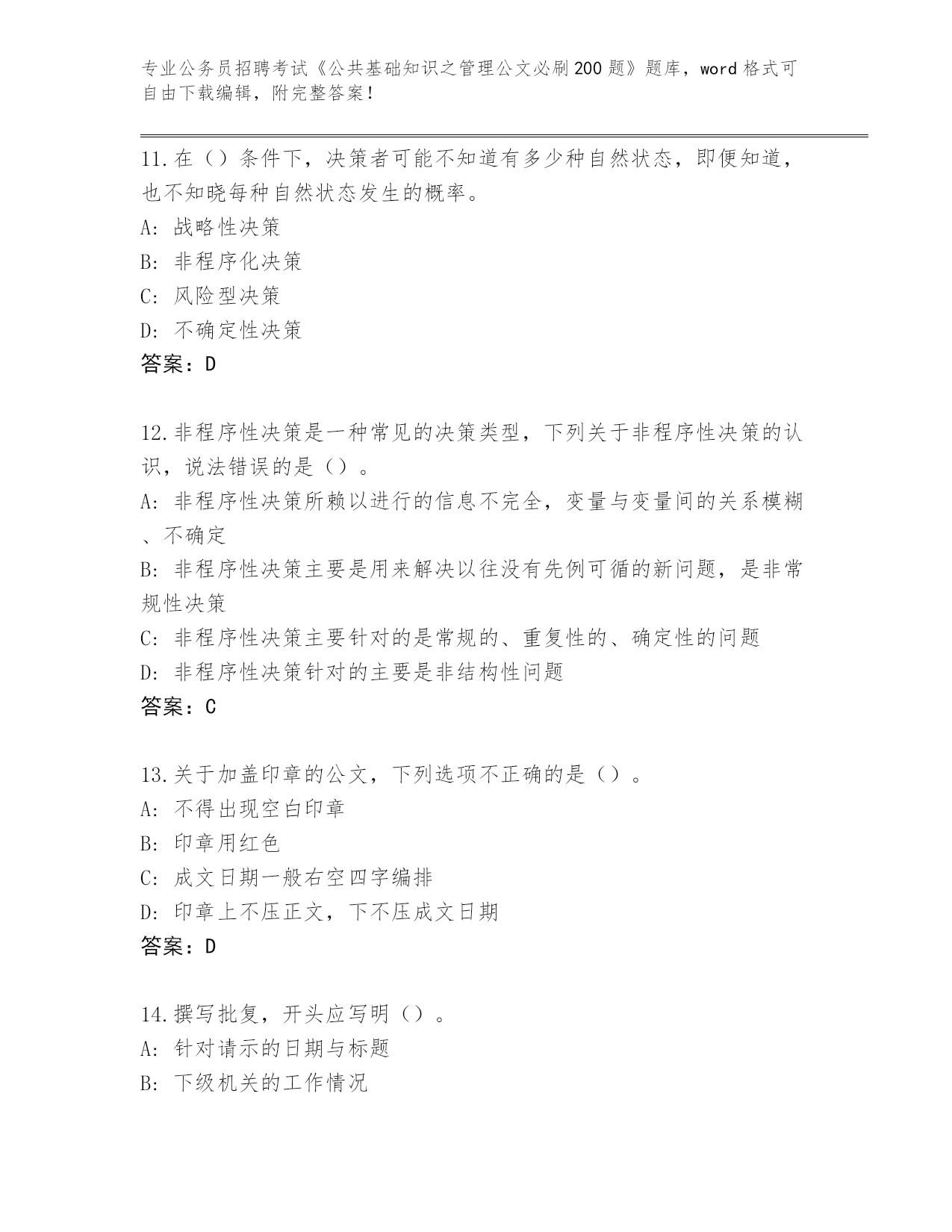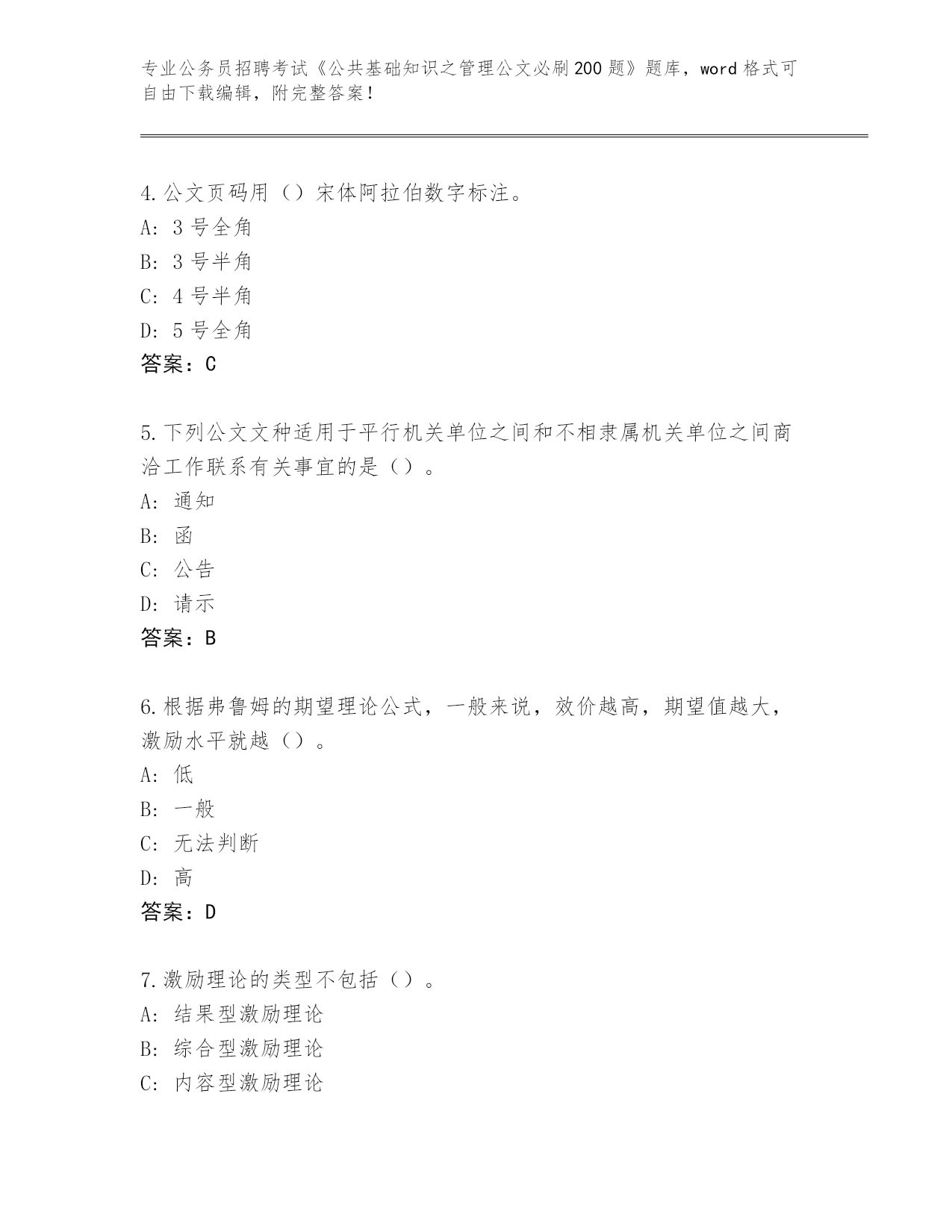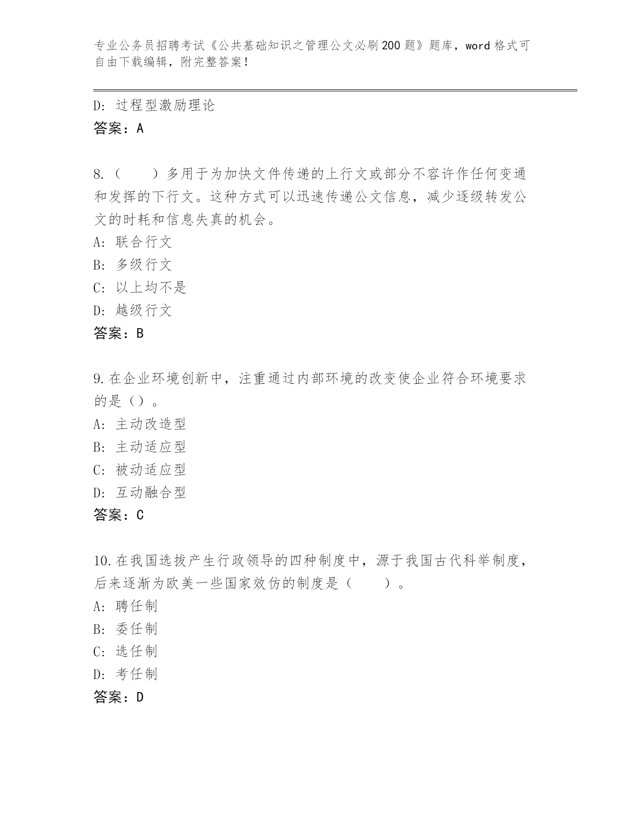 贵州省晴隆县整理公务员招聘考试《公共基础知识之管理公文必刷200题》内部题库及答案()