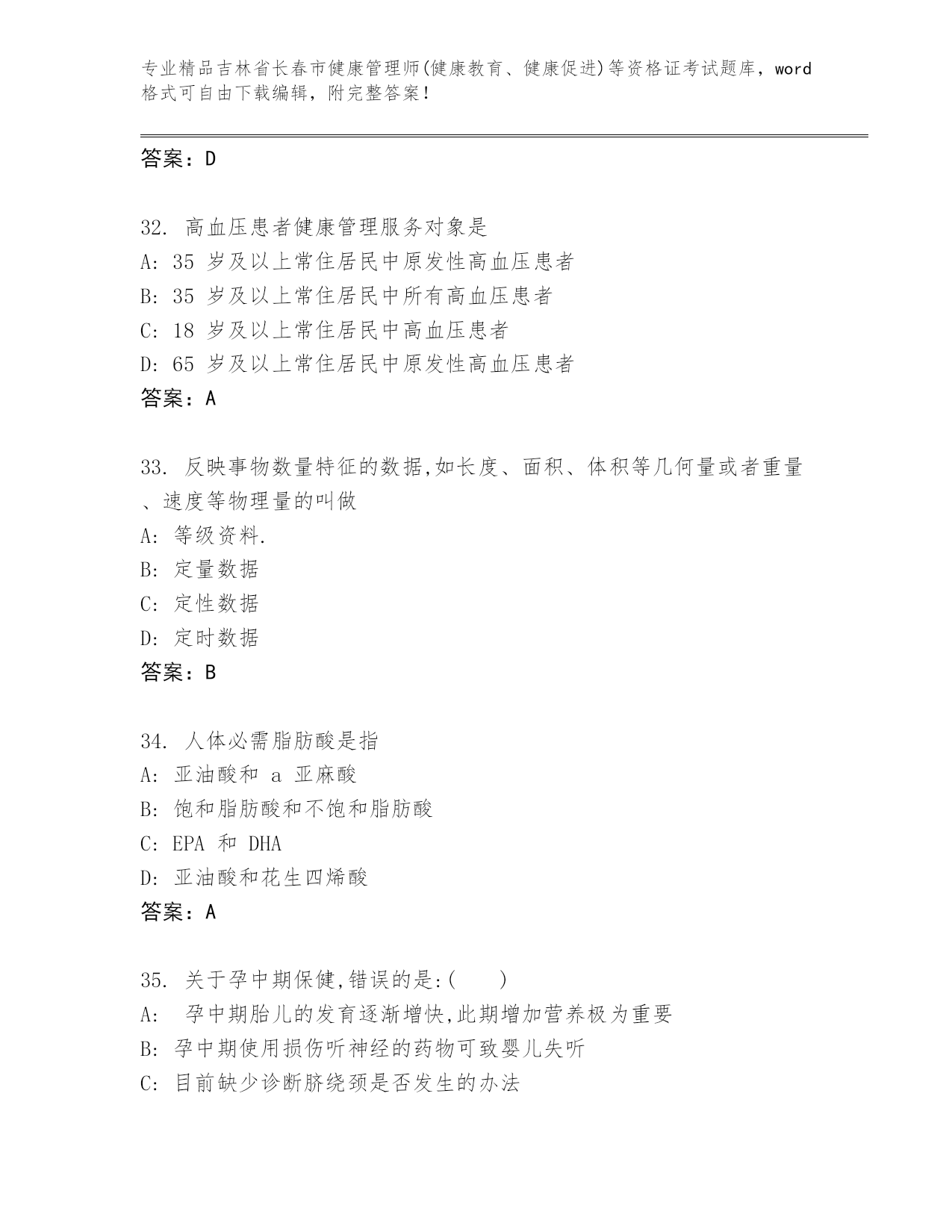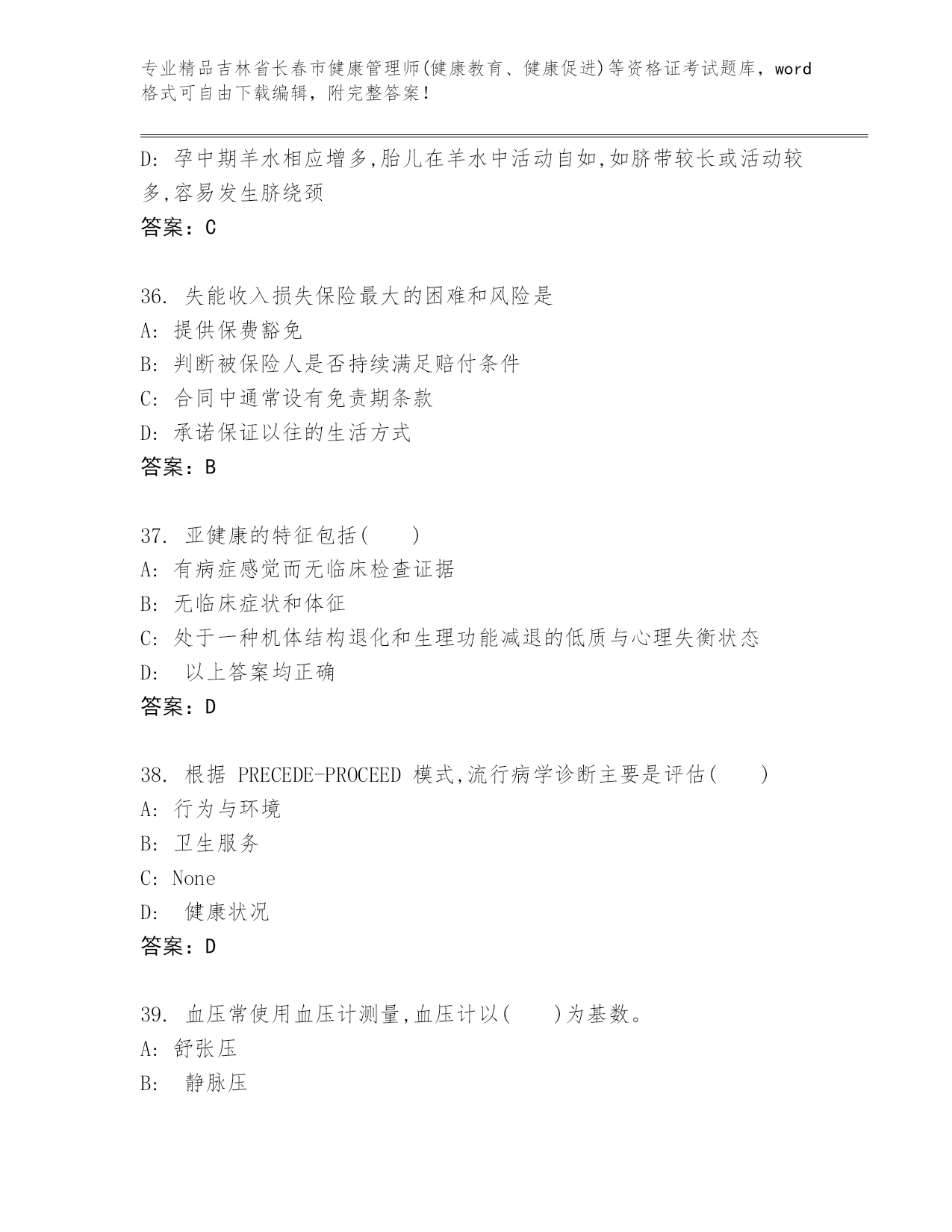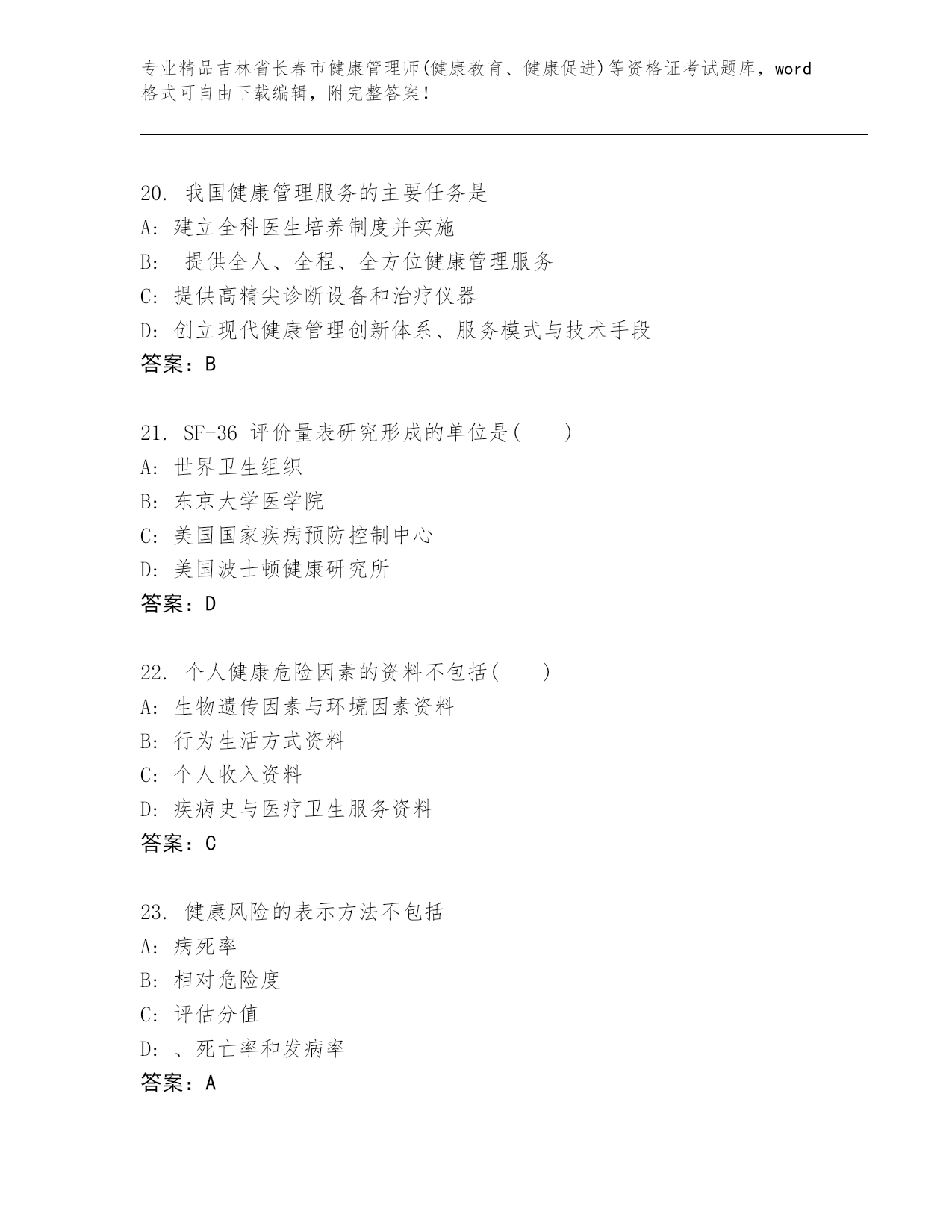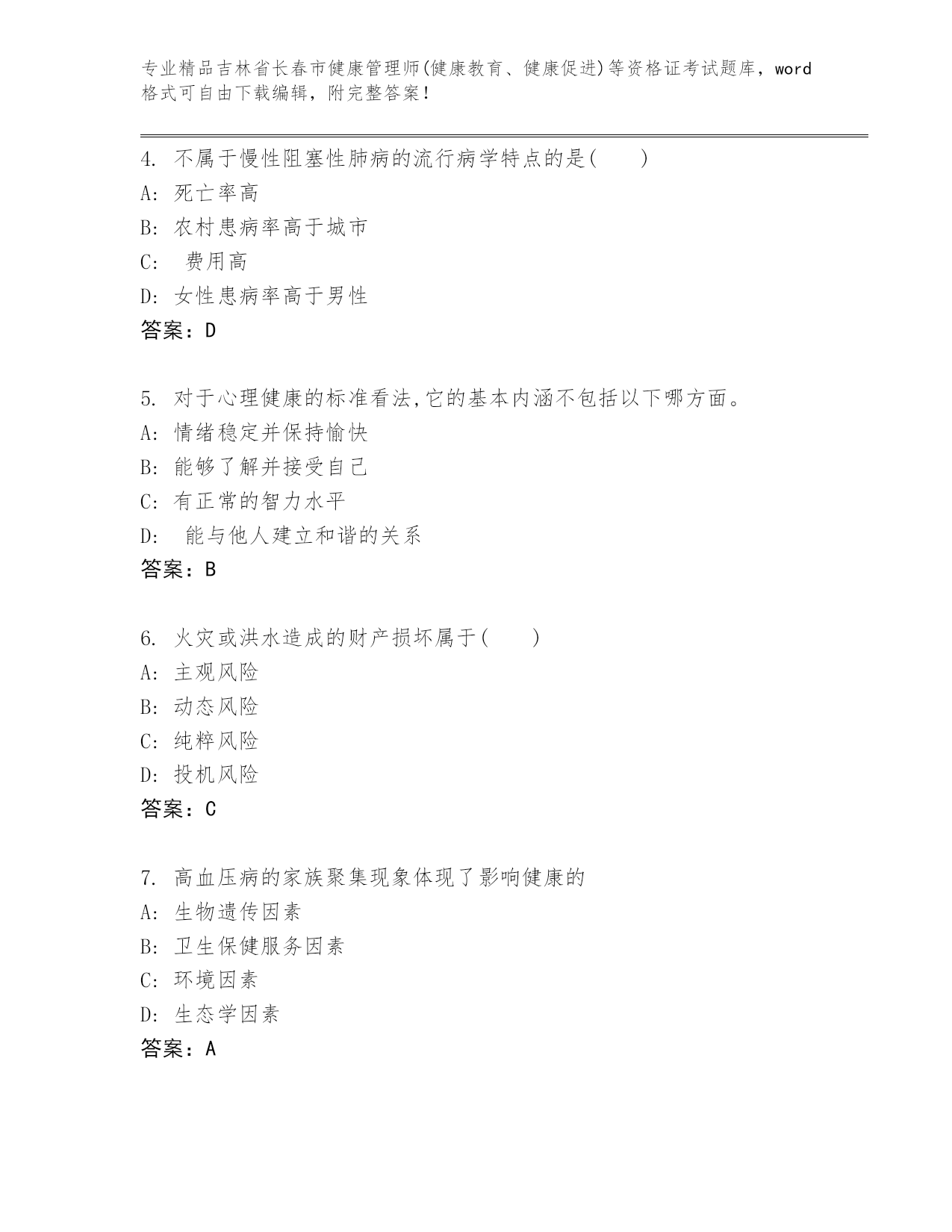 优选吉林省长春市健康管理师(健康教育、健康促进)等资格证考试通用题库及答案【精品】