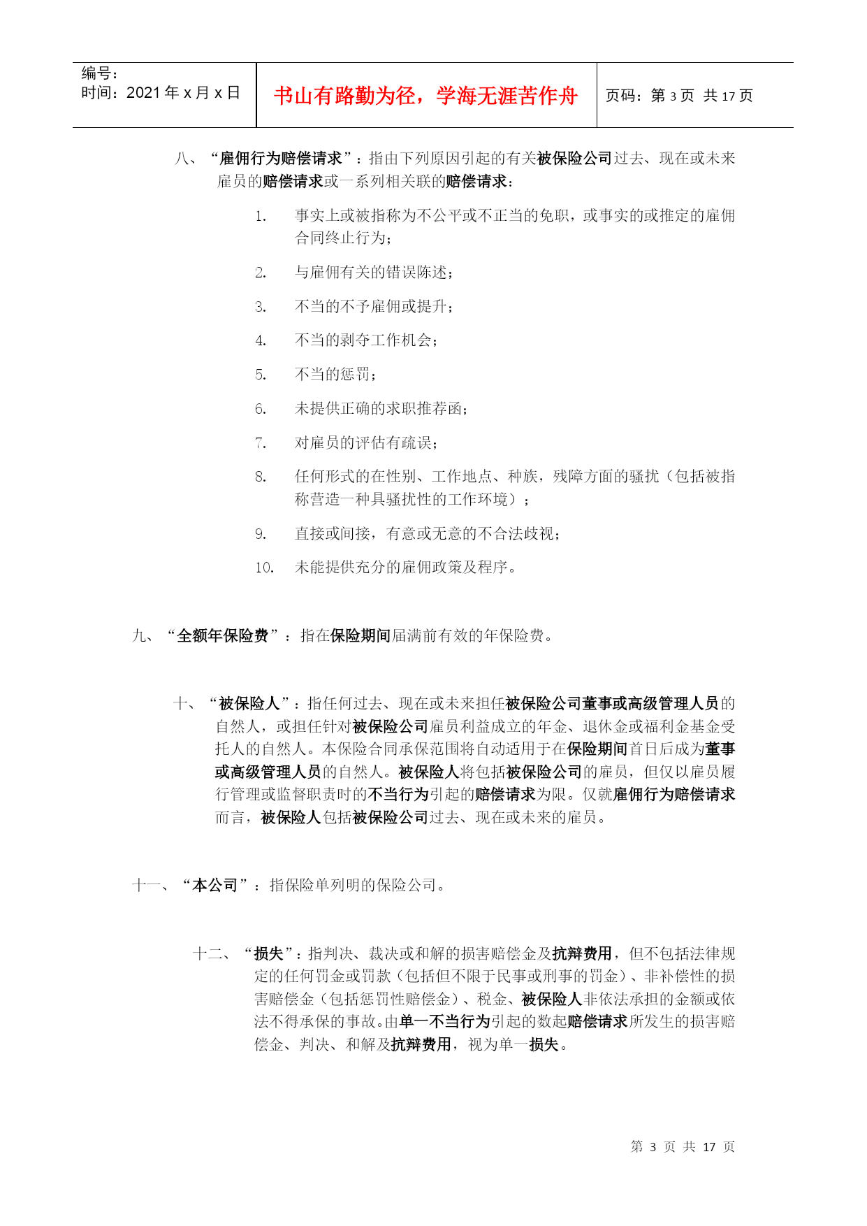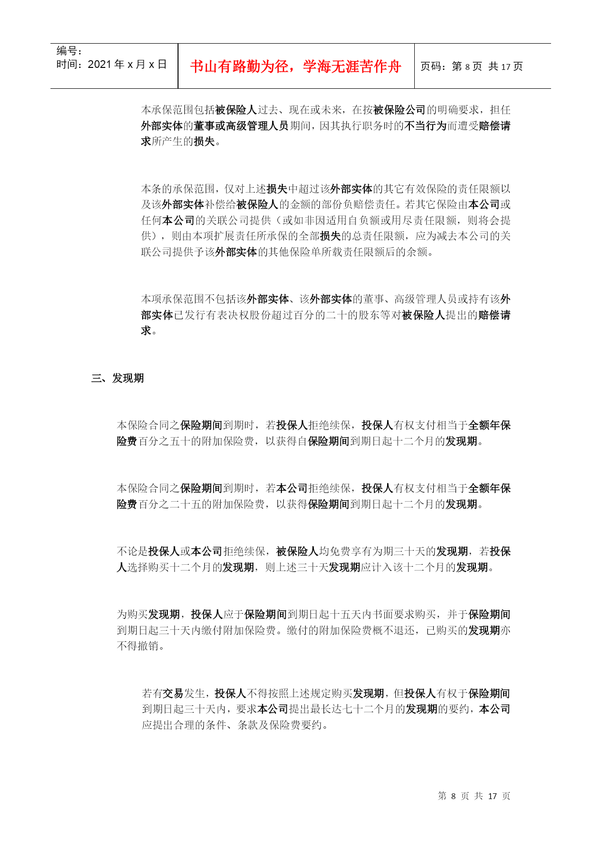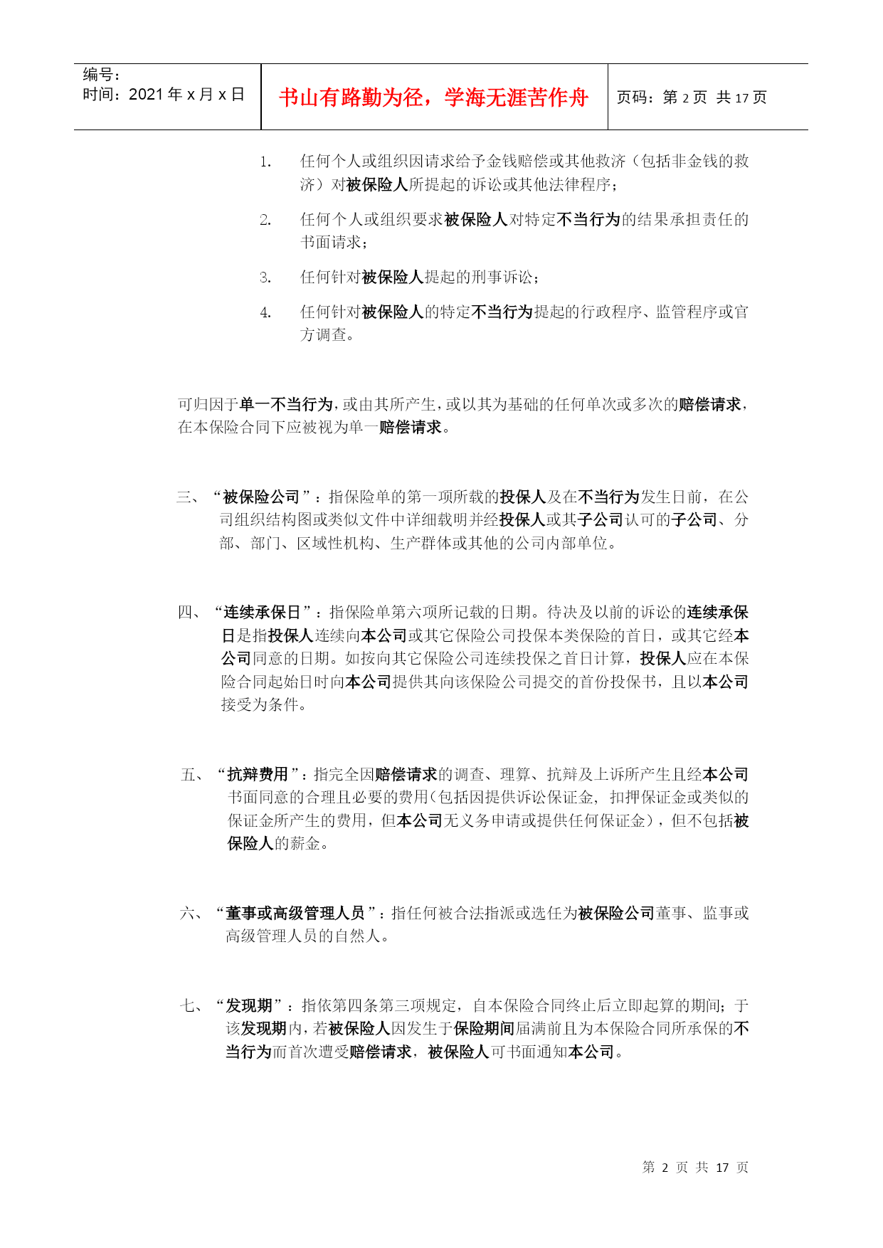 美亚财产保险有限公司董监事及高级管理人员责任保险条款