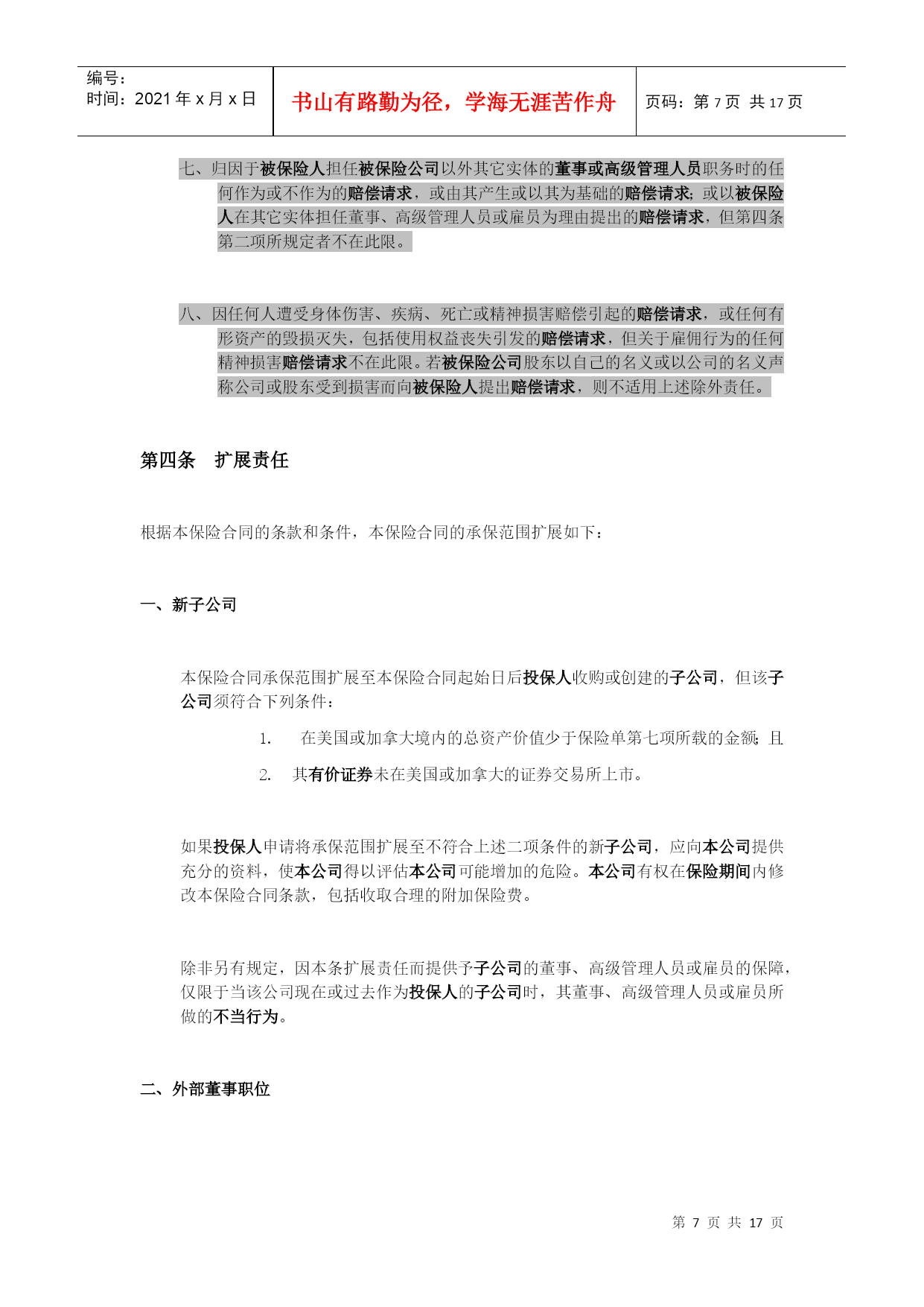 美亚财产保险有限公司董监事及高级管理人员责任保险条款.docx