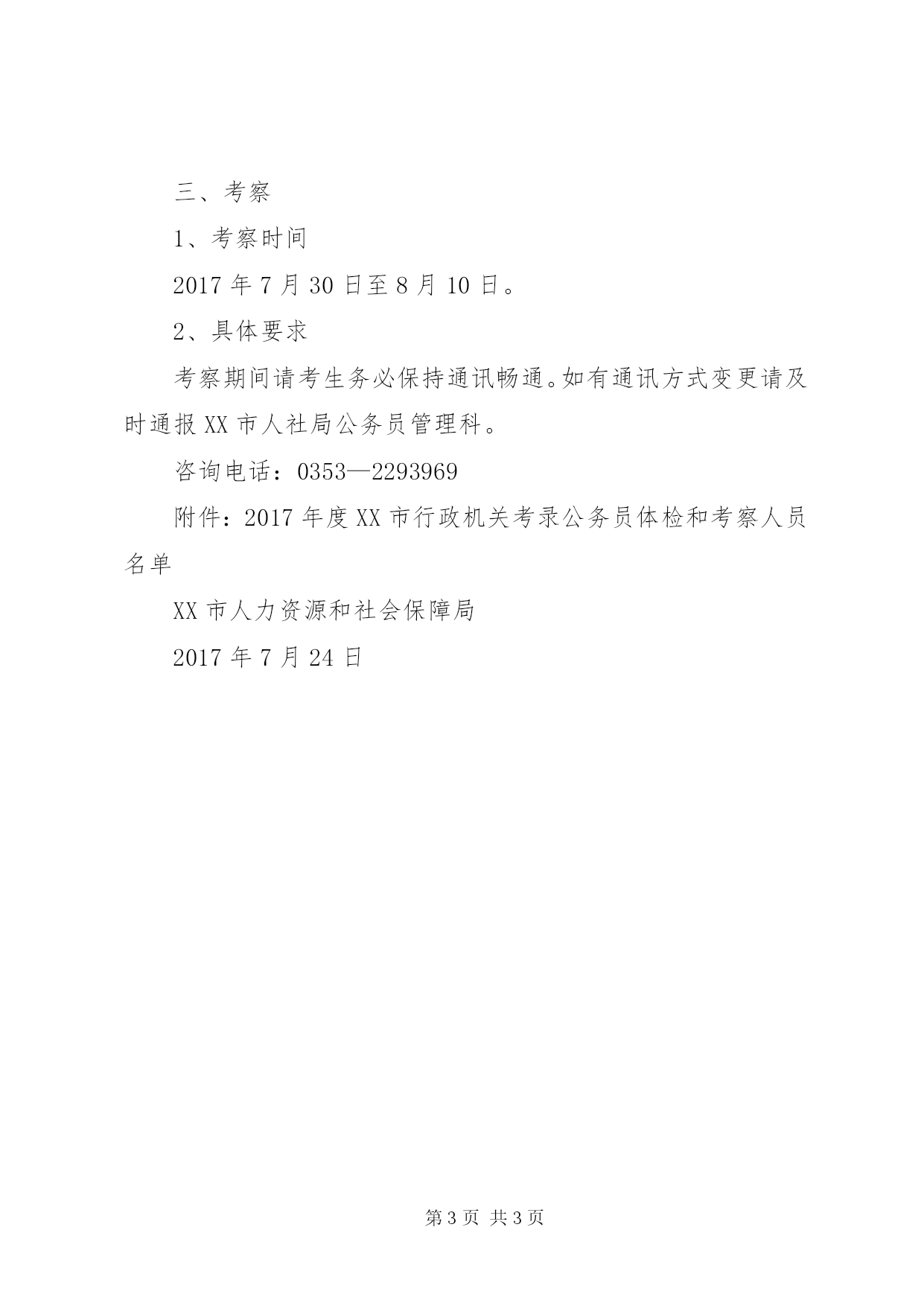 XX年山西XX市行政机关公务员考试体检和考察公告.docx
