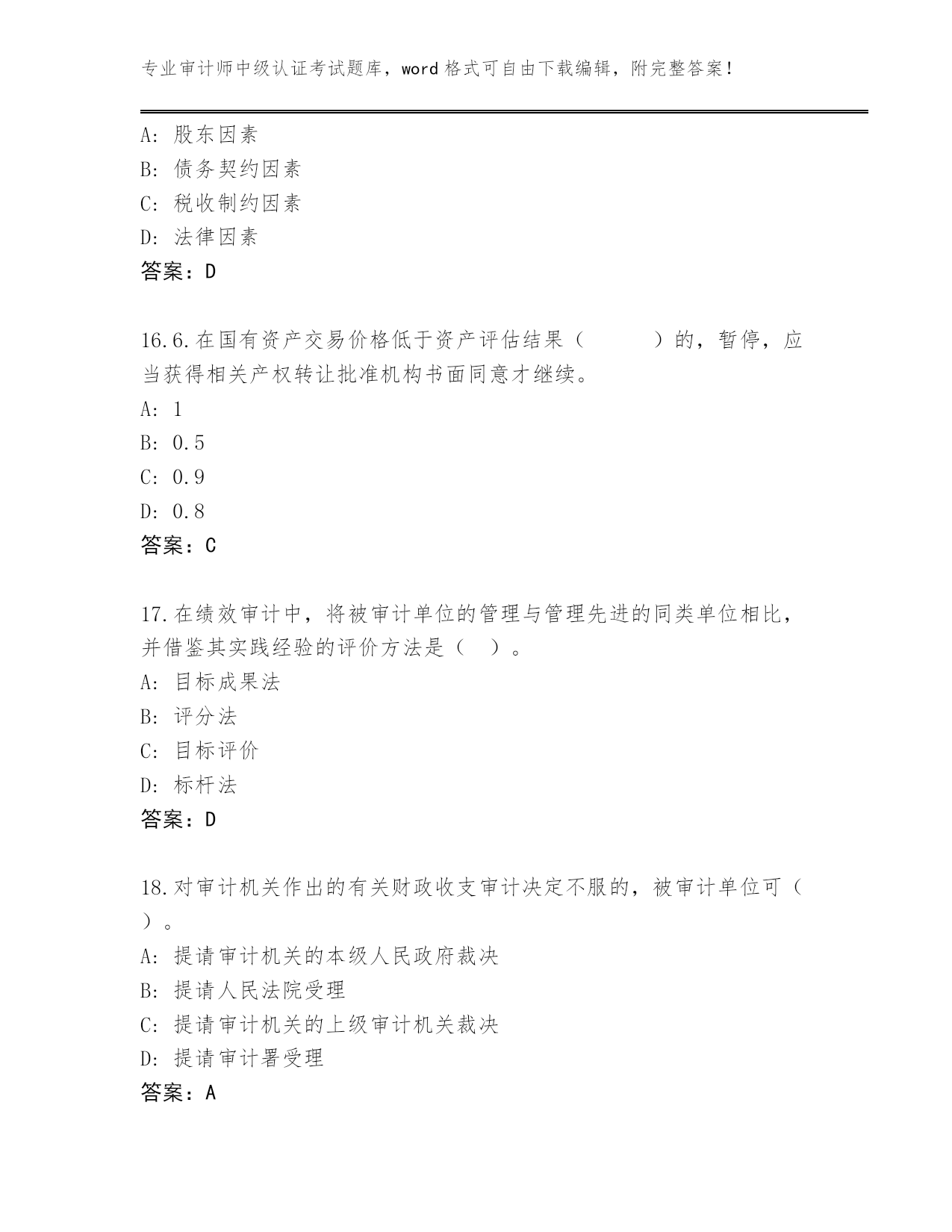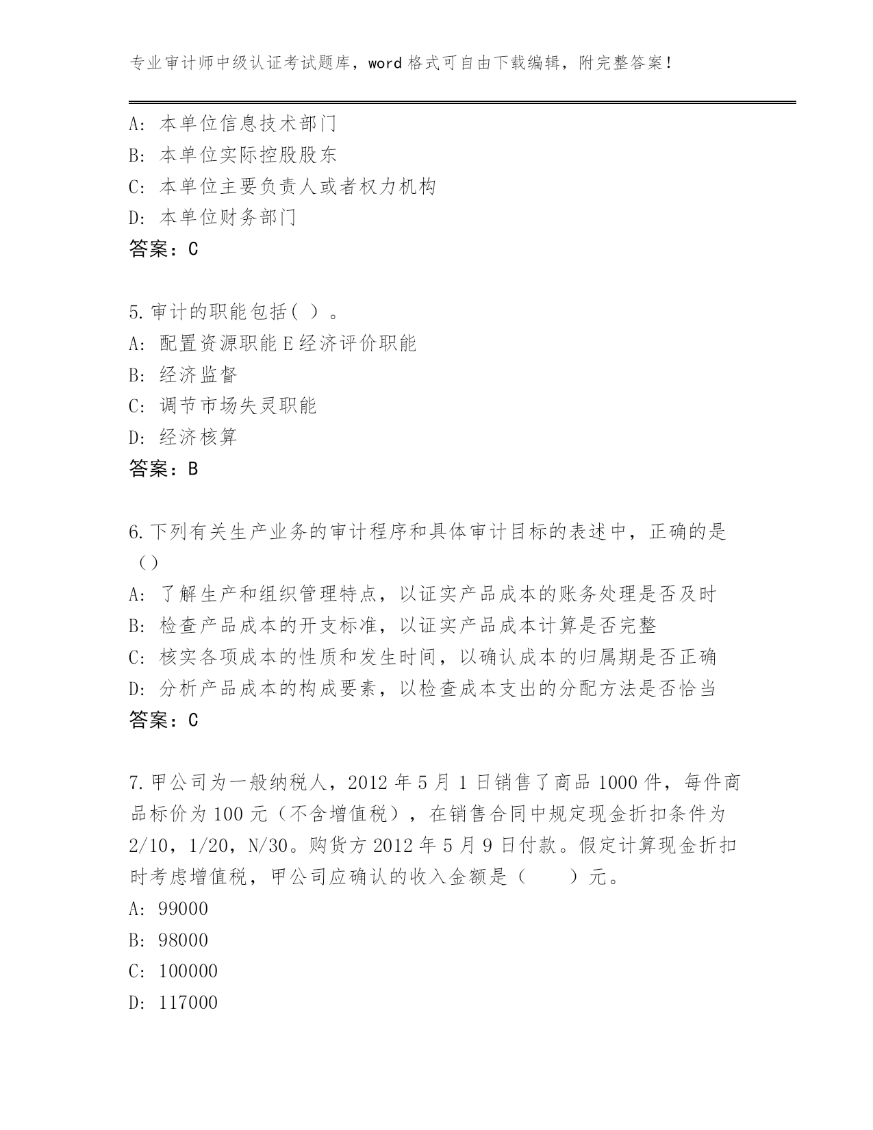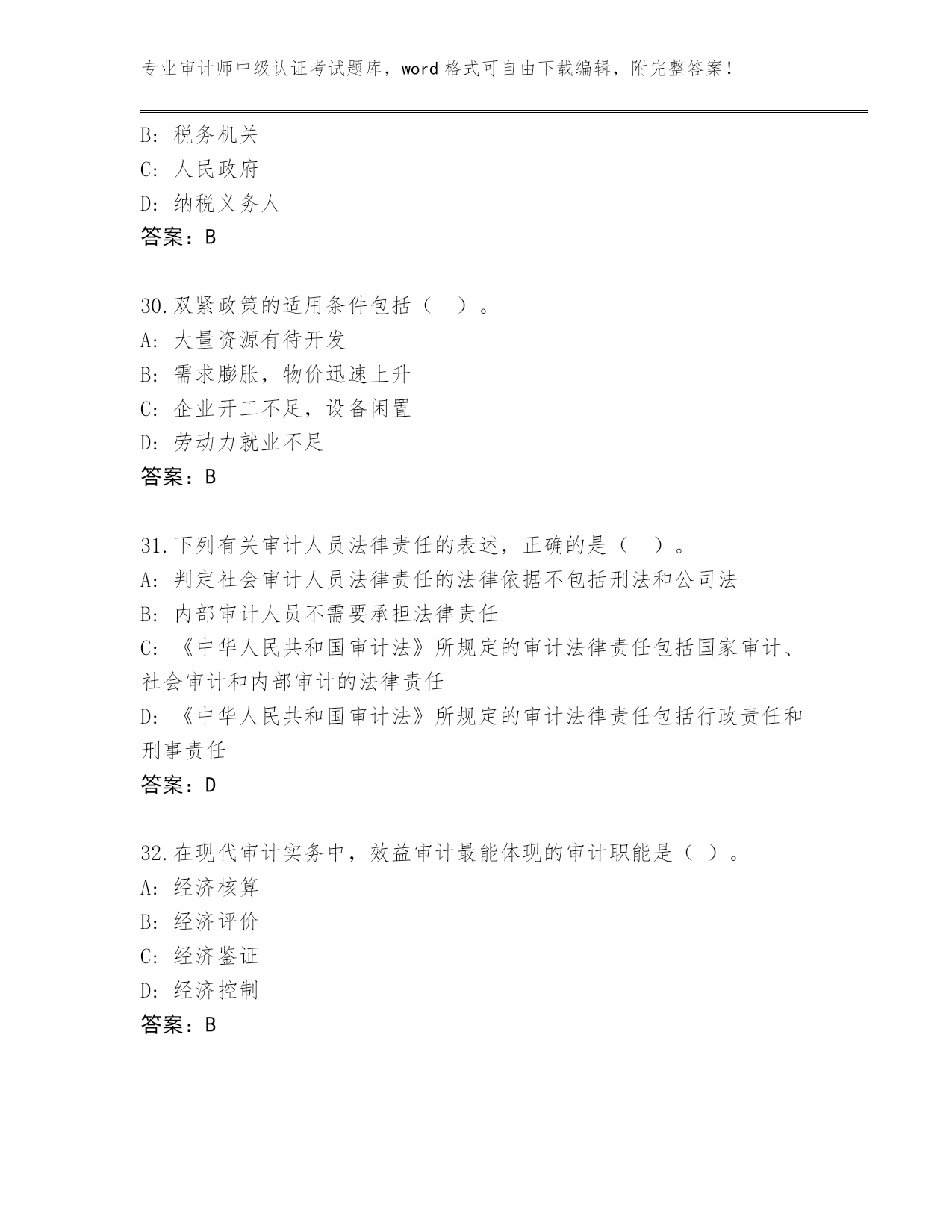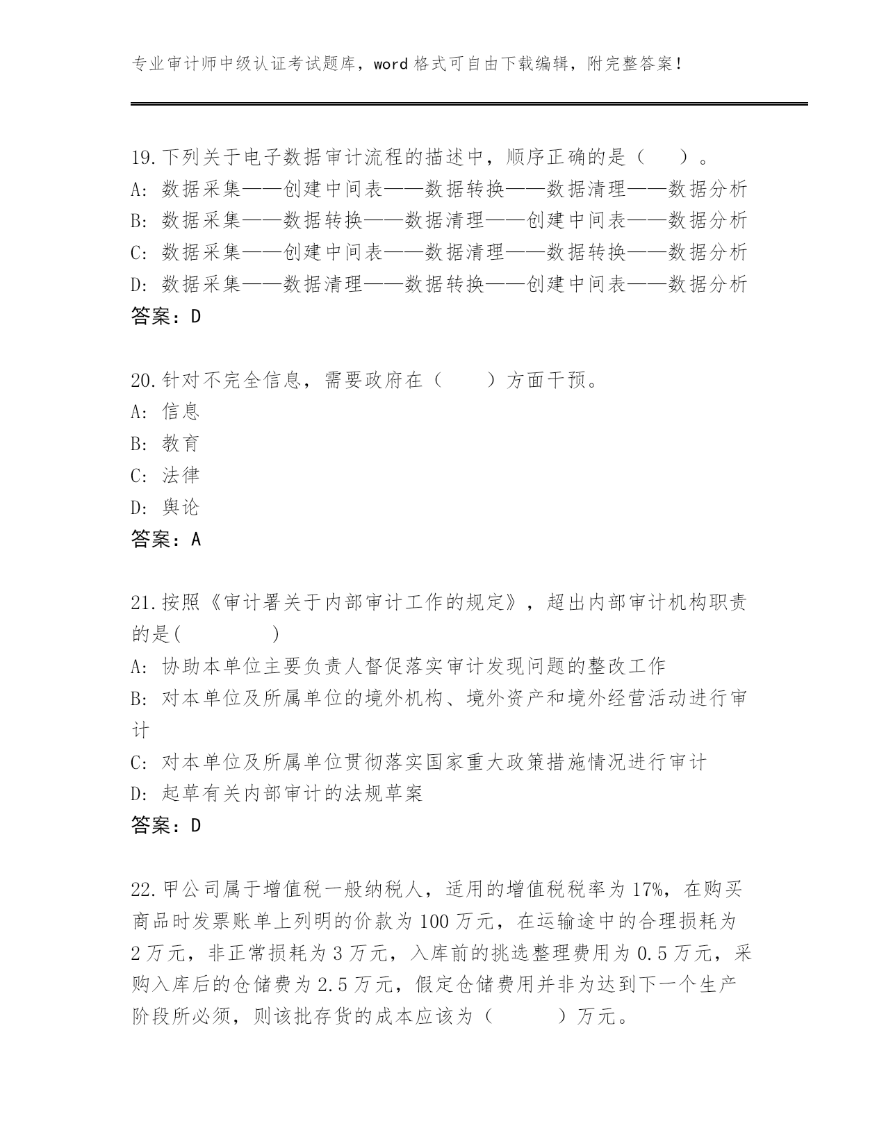 甘肃省临洮县2023-24年审计师中级认证考试大全附答案(突破训练)
