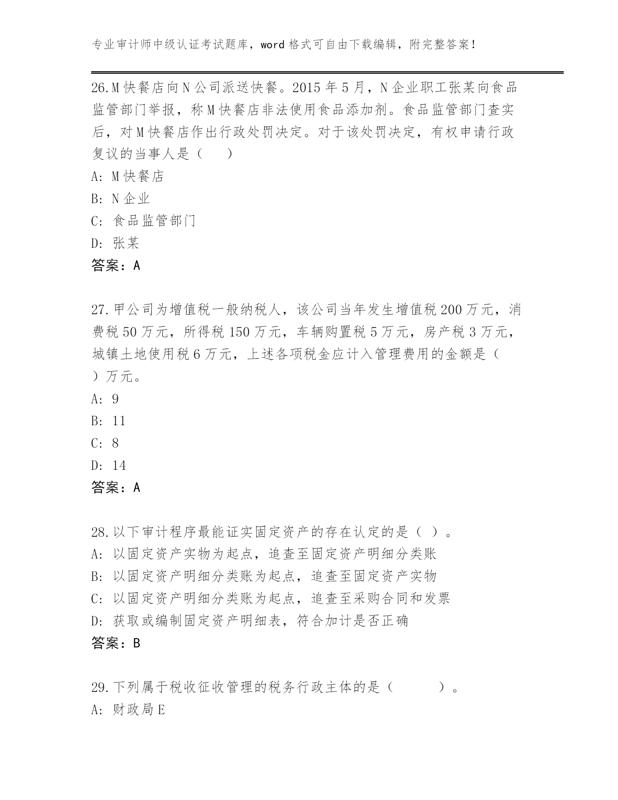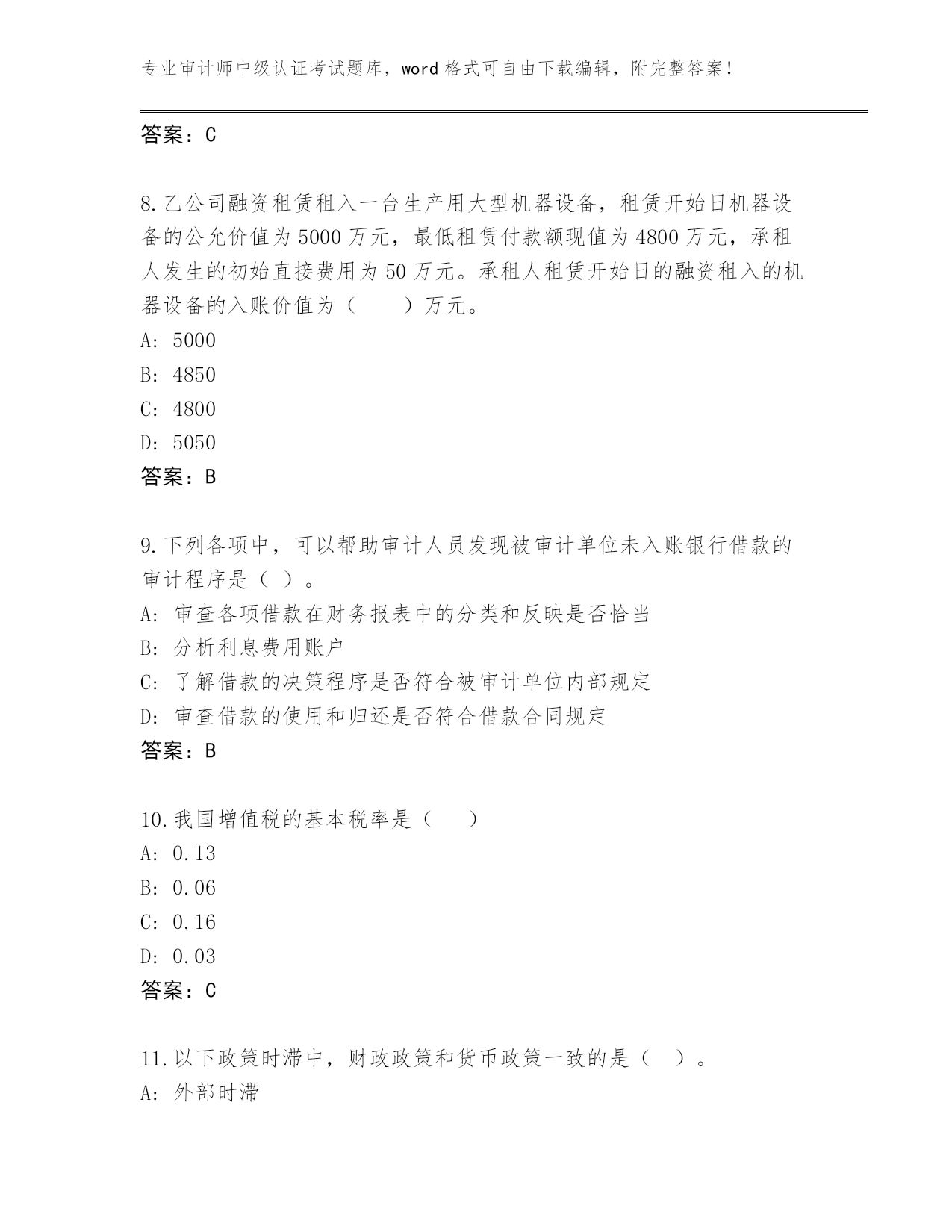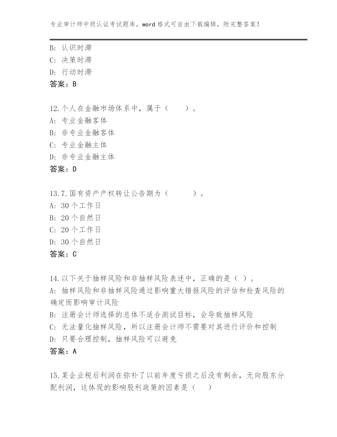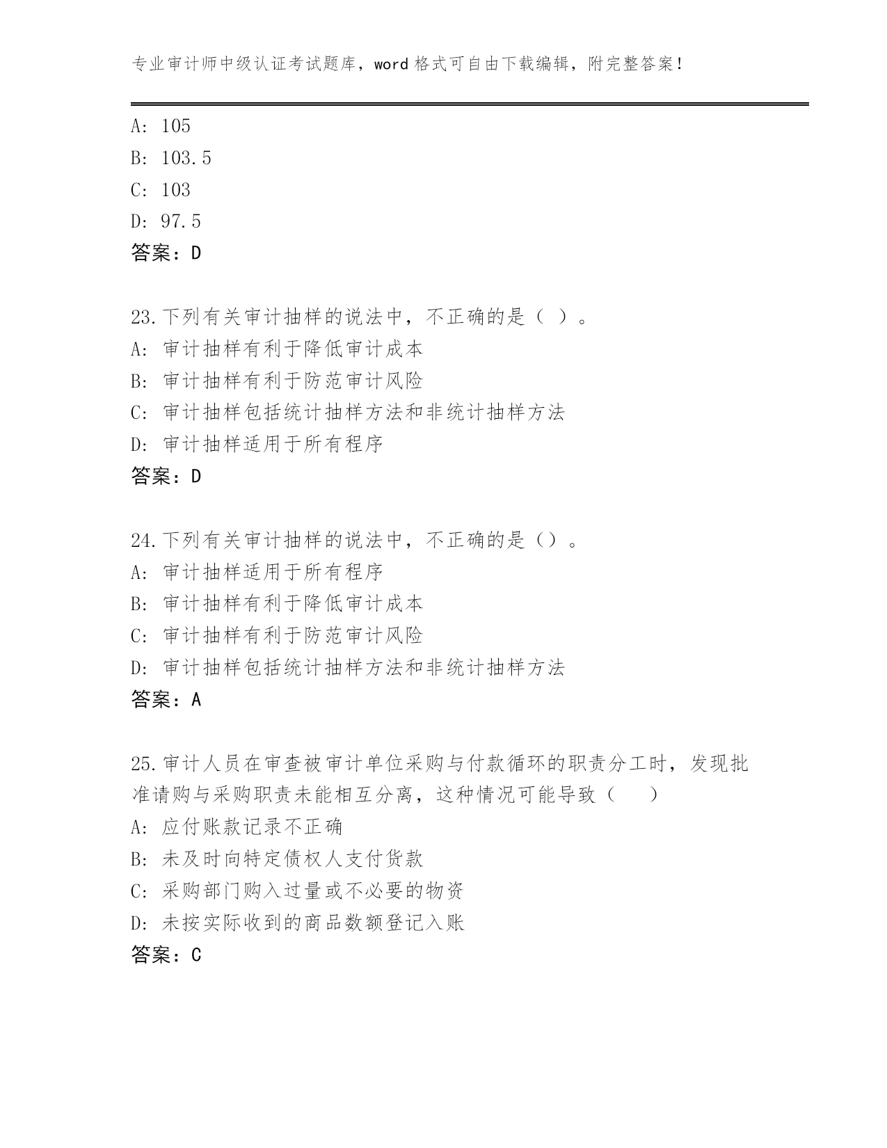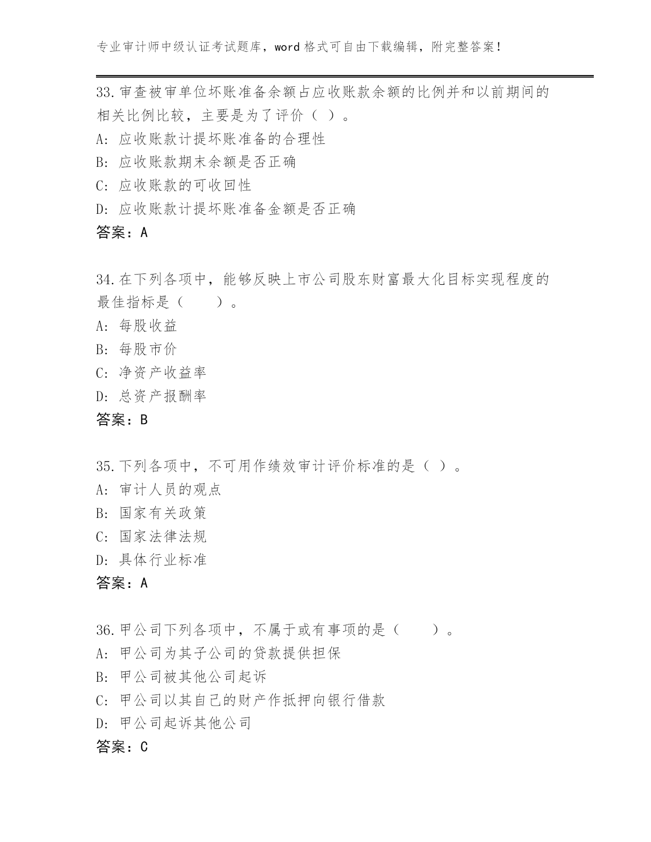 甘肃省临洮县2023-24年审计师中级认证考试大全附答案(突破训练)