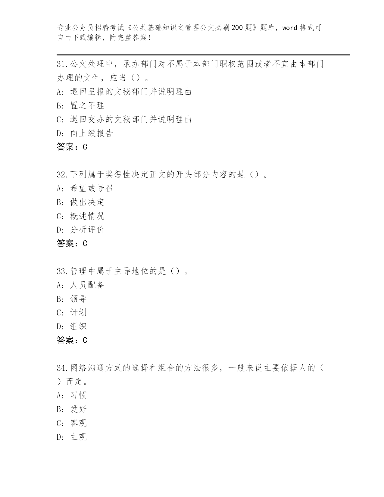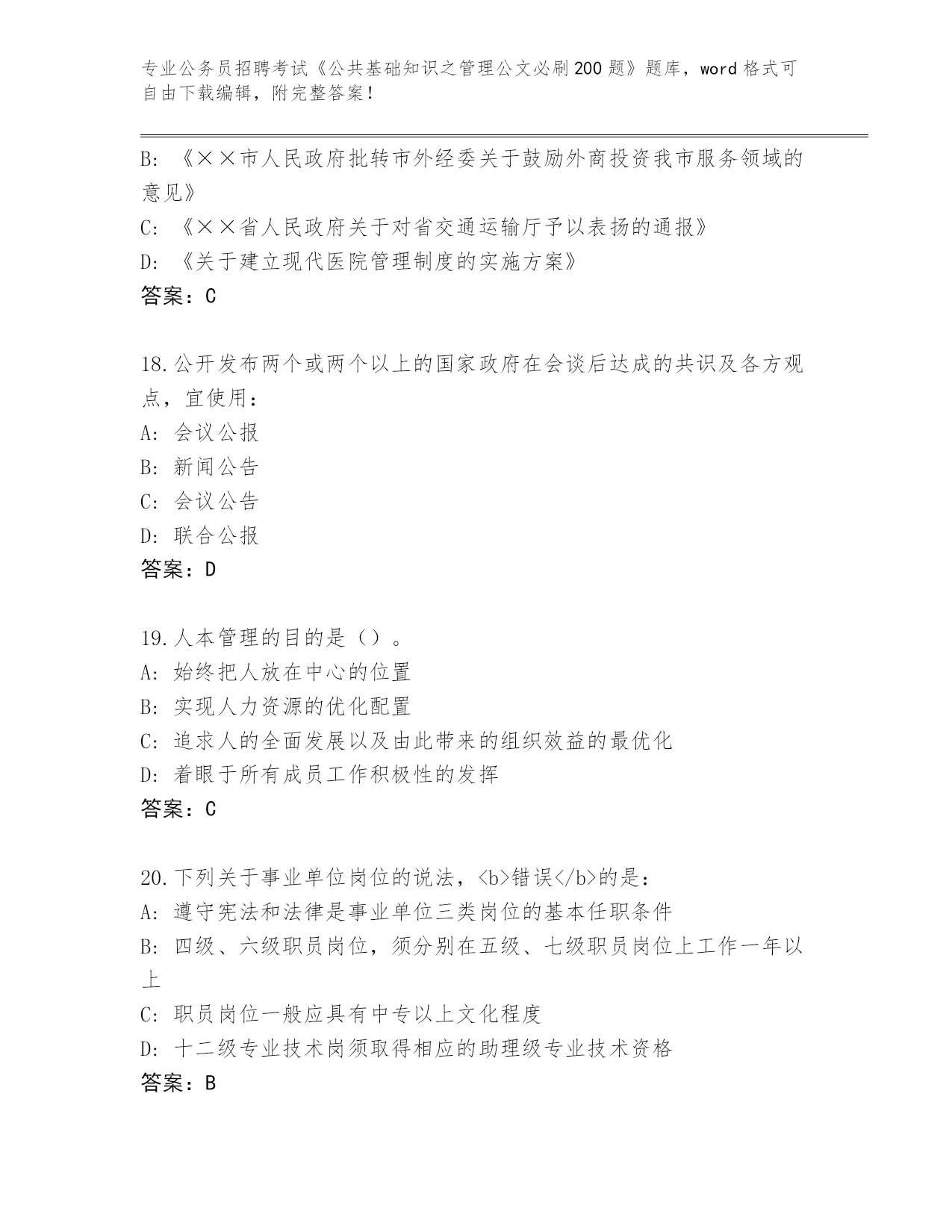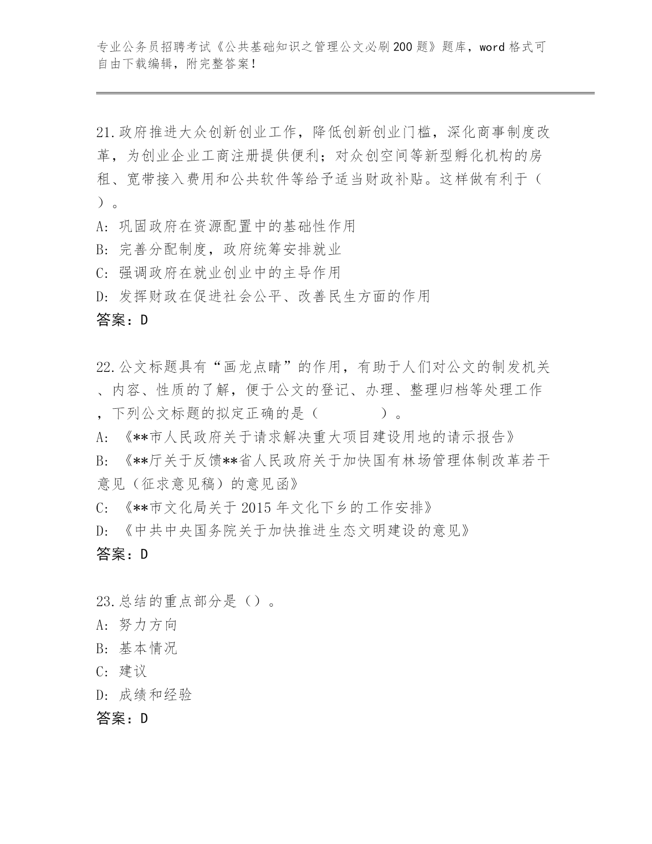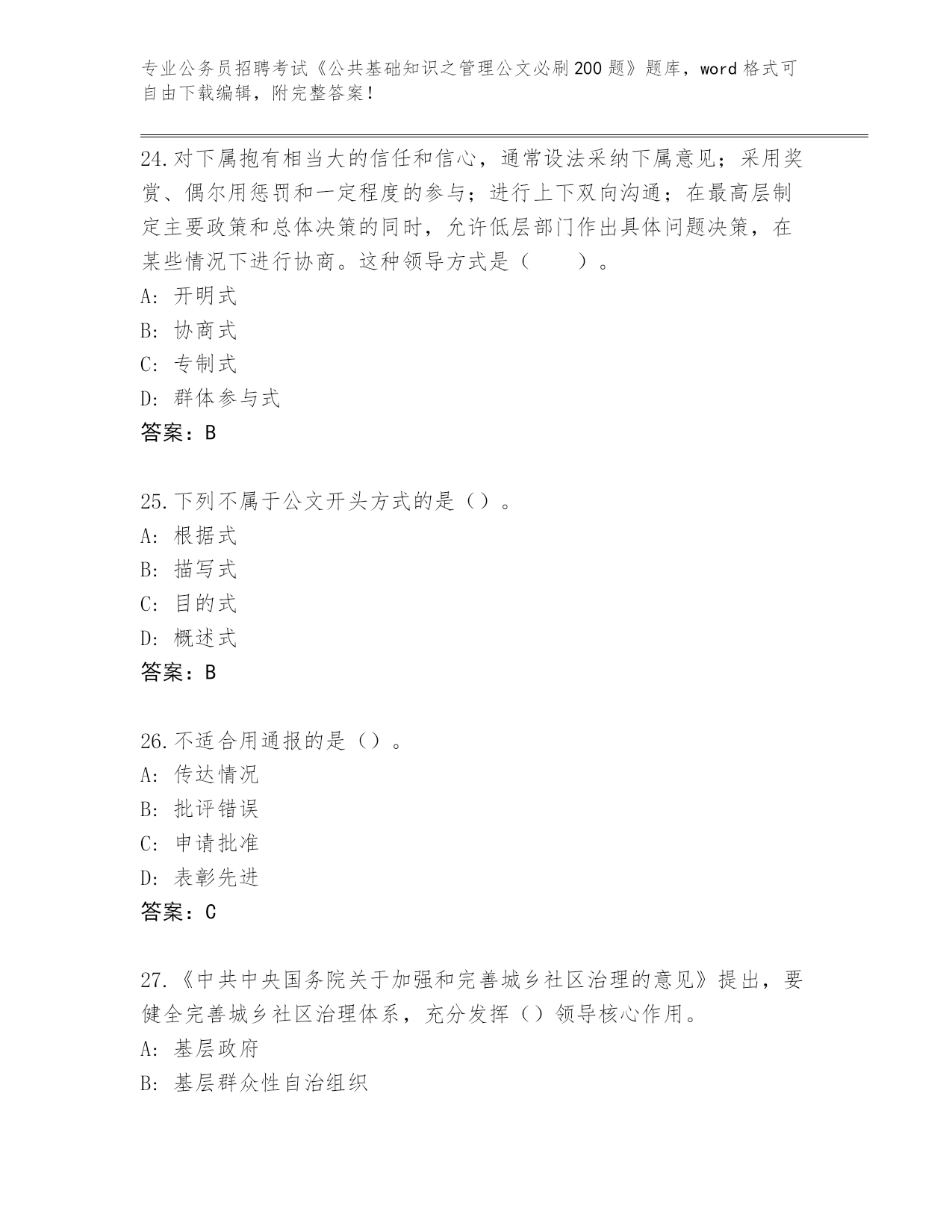 2024年山东省龙口市公务员招聘考试《公共基础知识之管理公文必刷200题》(突破训练)