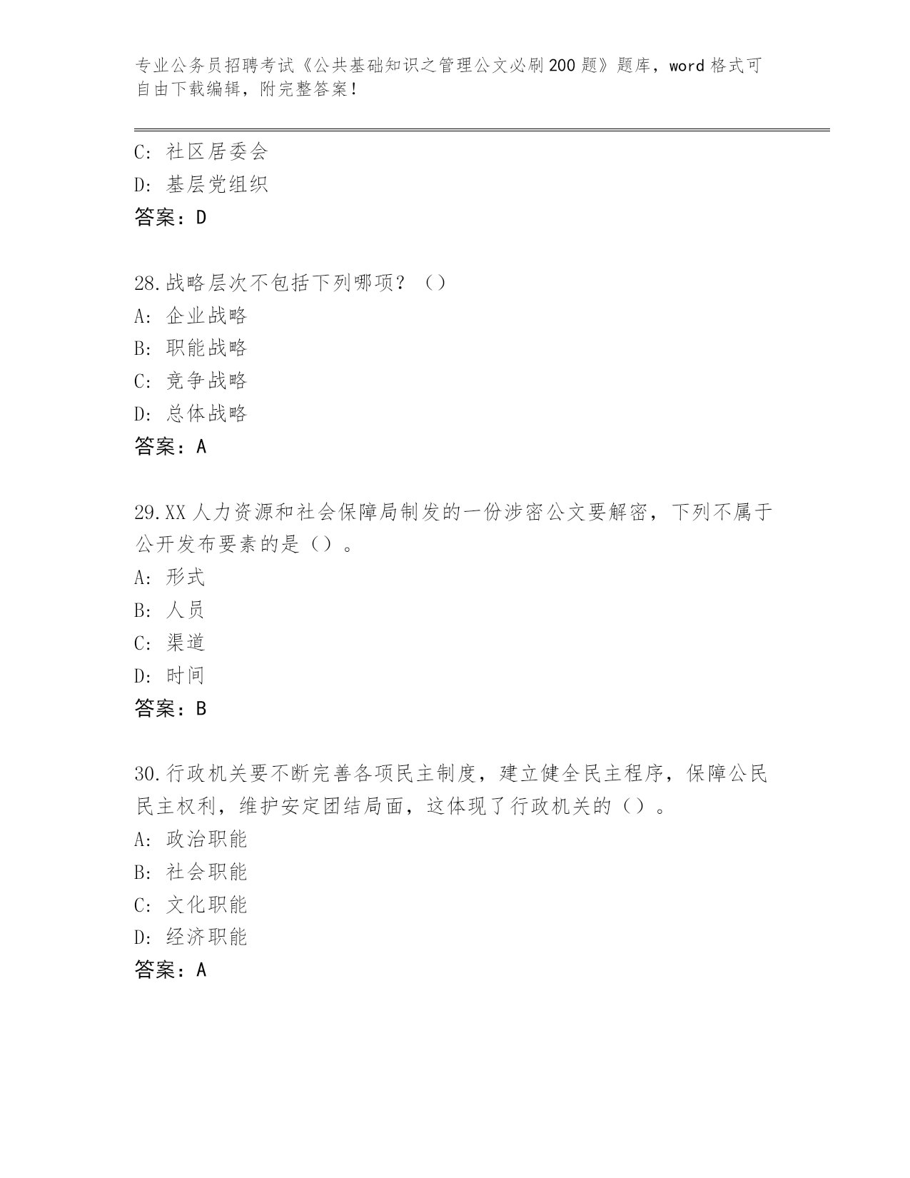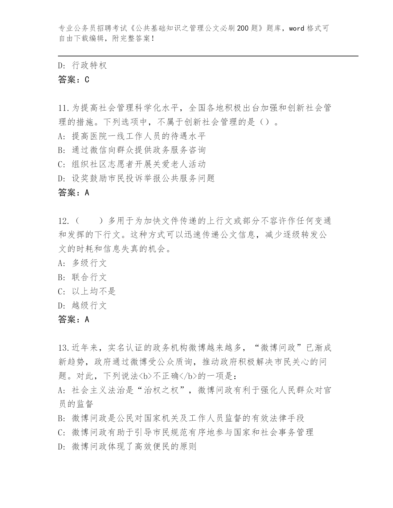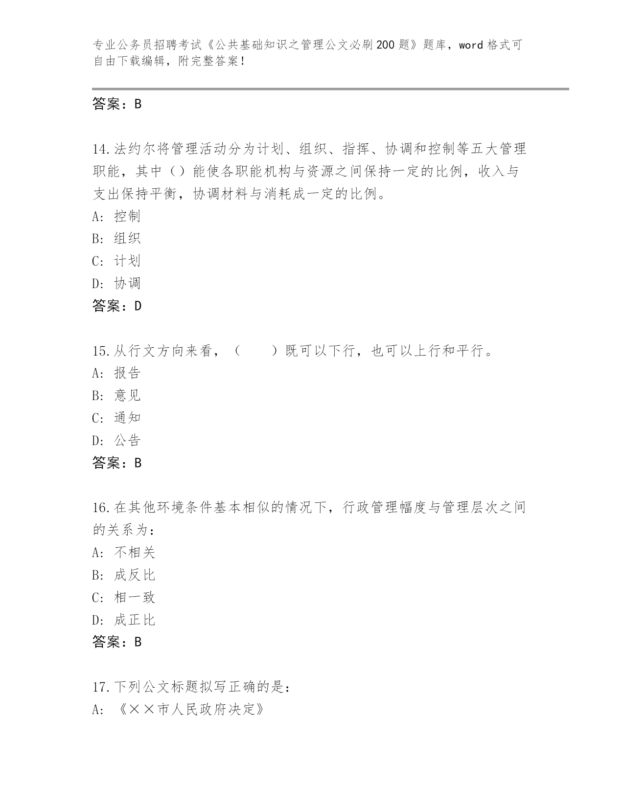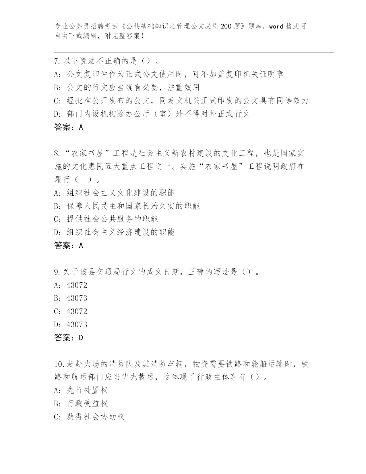 2024年山东省龙口市公务员招聘考试《公共基础知识之管理公文必刷200题》(突破训练)