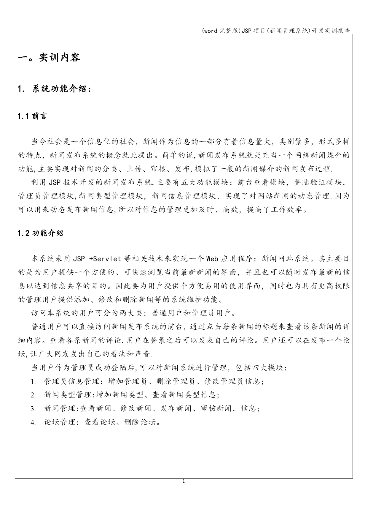 (word完整版)JSP项目(新闻管理系统)开发实训报告.doc