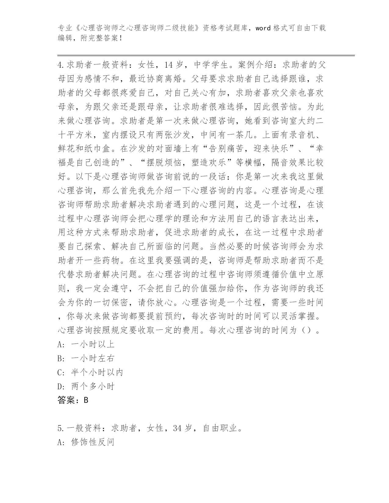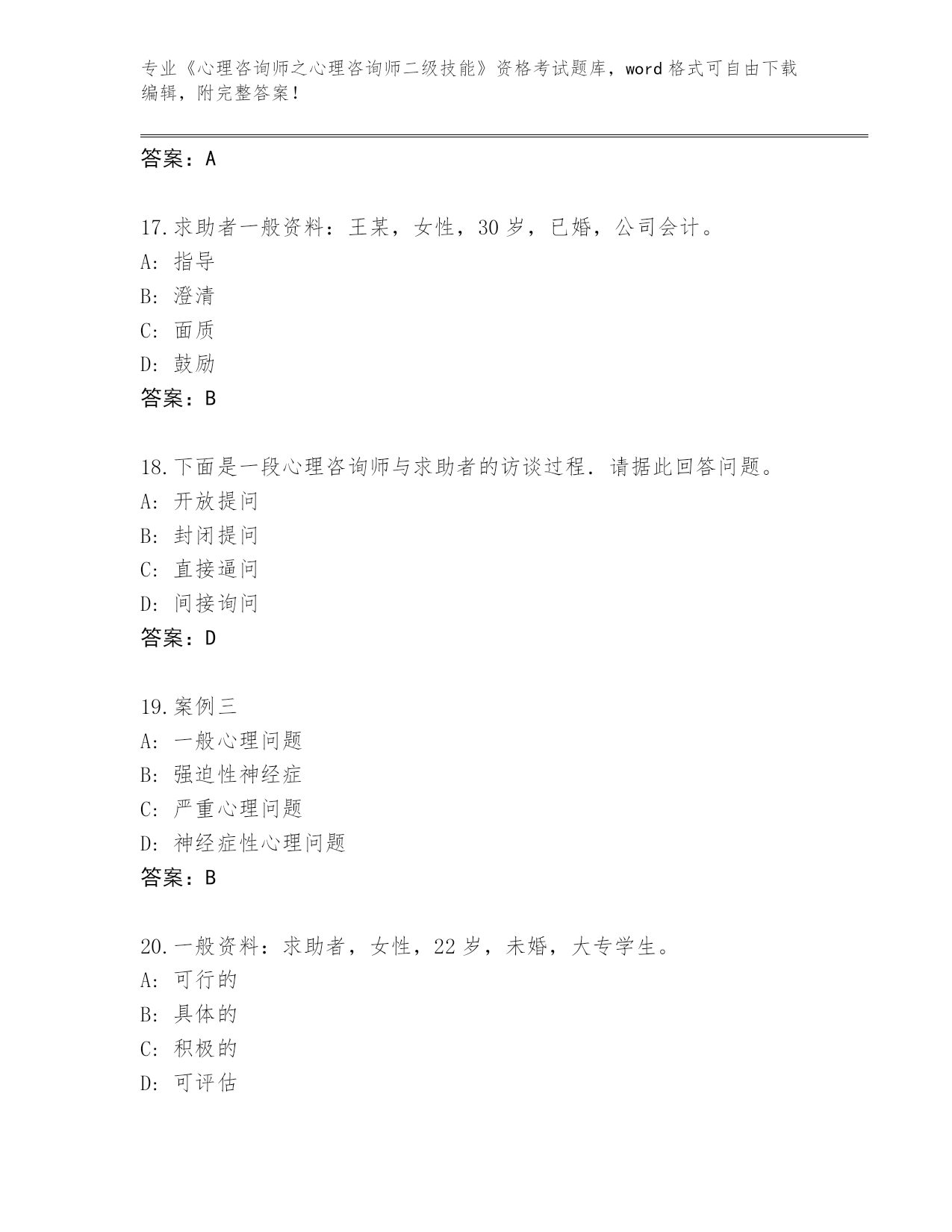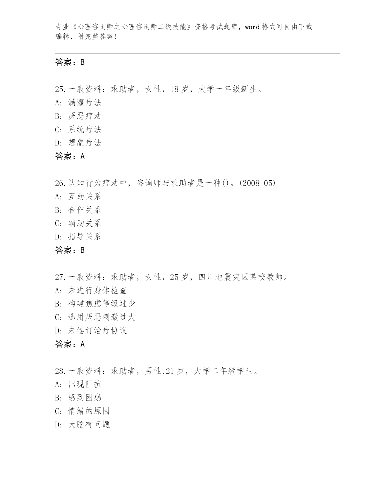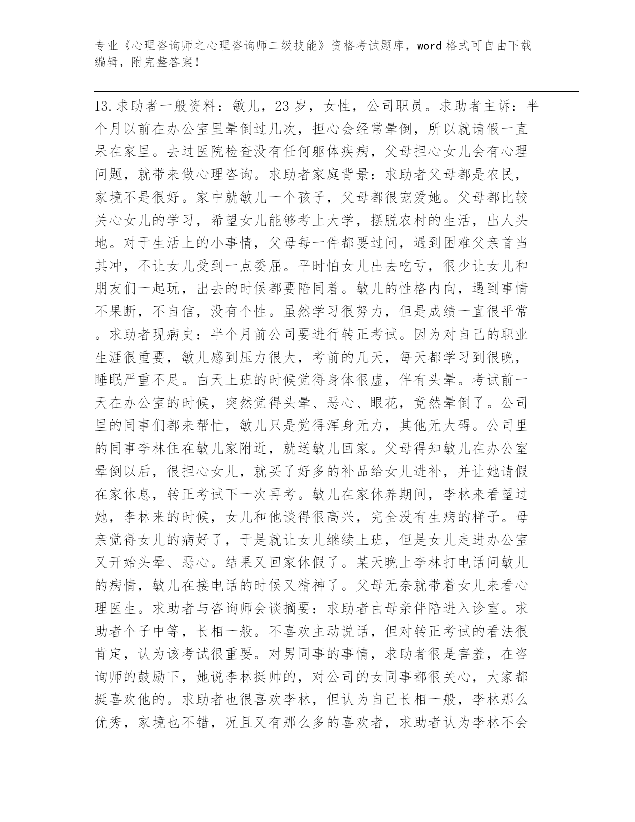 完整版河南省《心理咨询师之心理咨询师二级技能》资格考试【名校卷】
