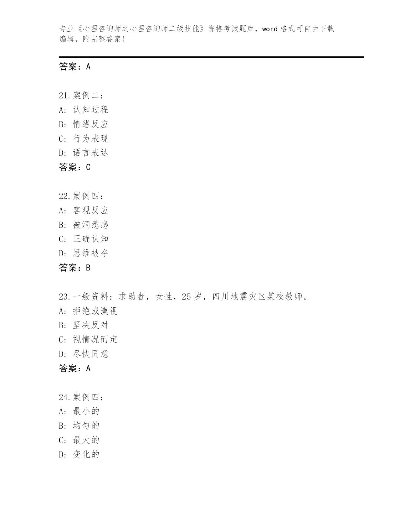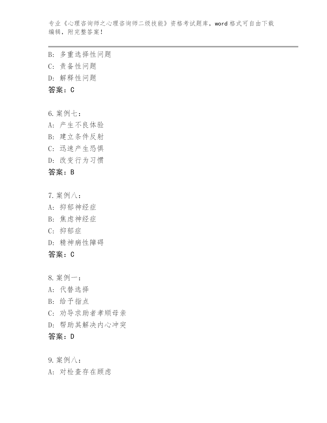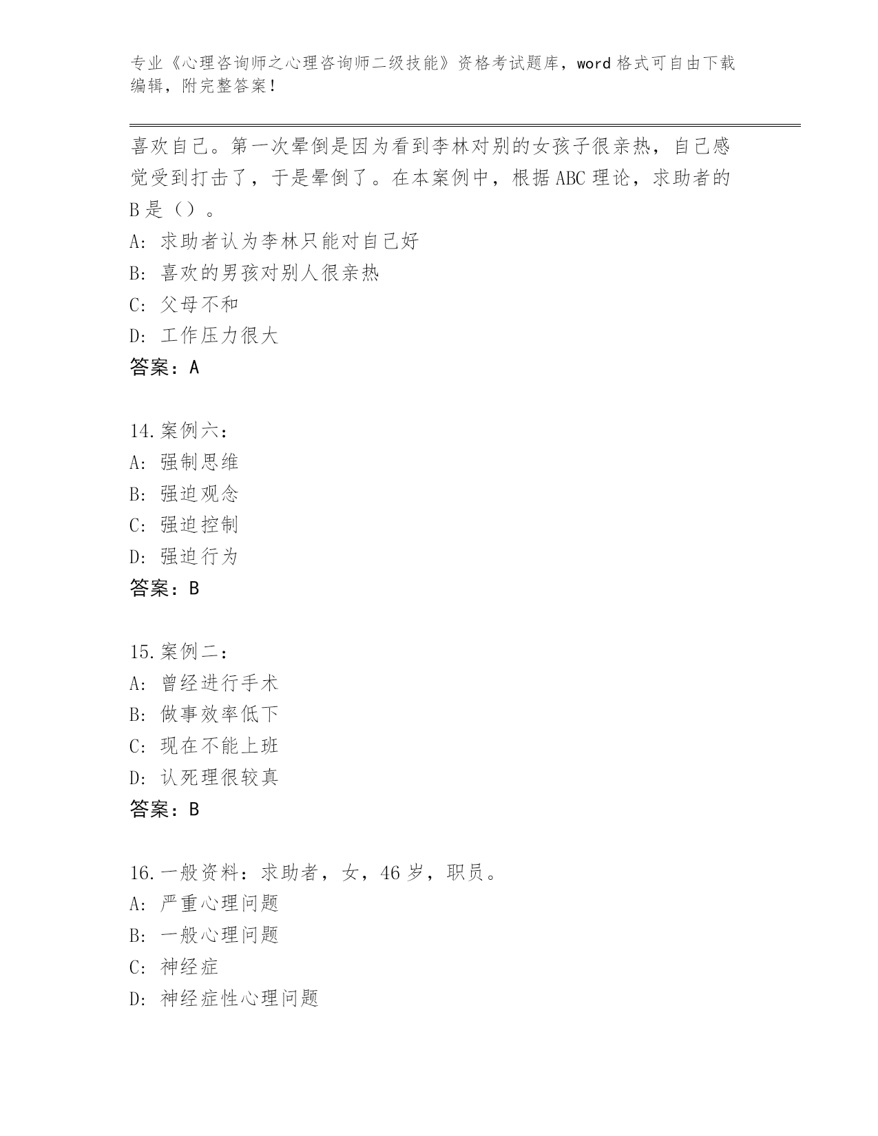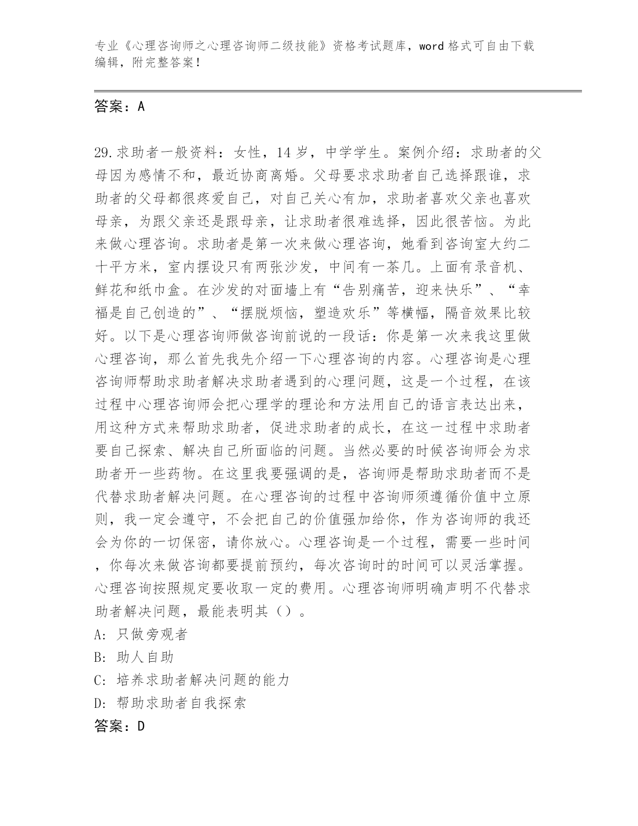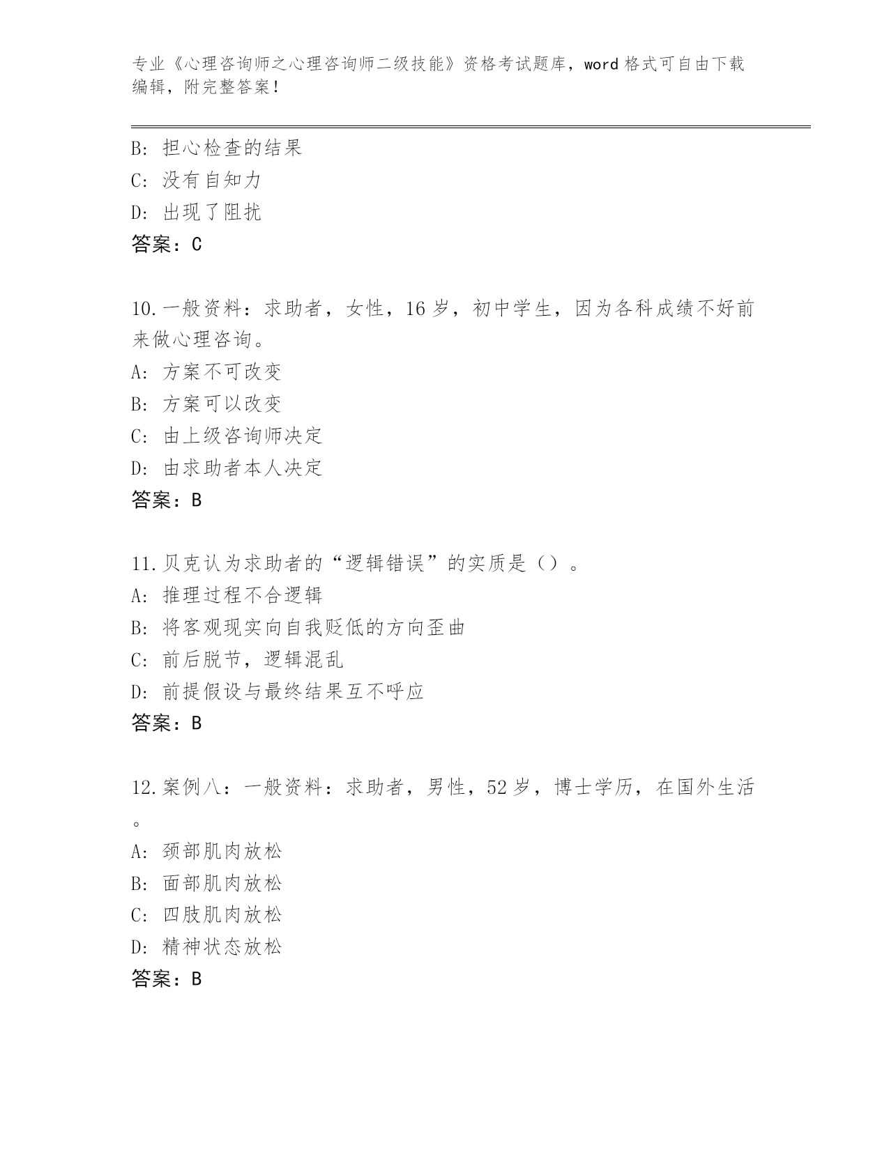 完整版河南省《心理咨询师之心理咨询师二级技能》资格考试【名校卷】