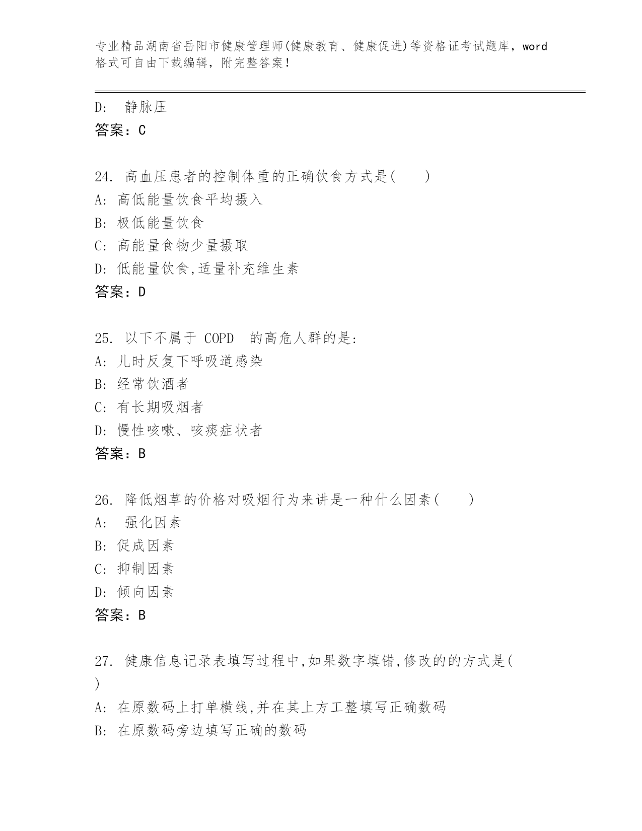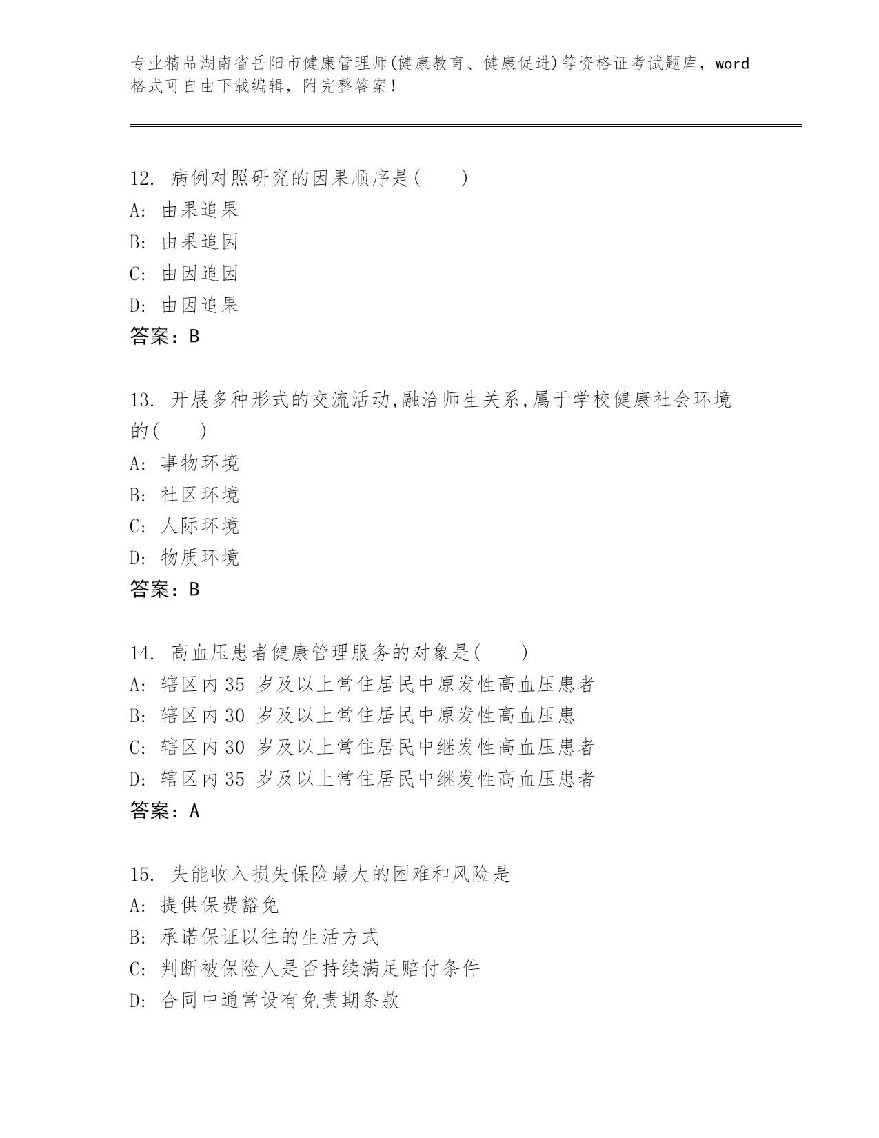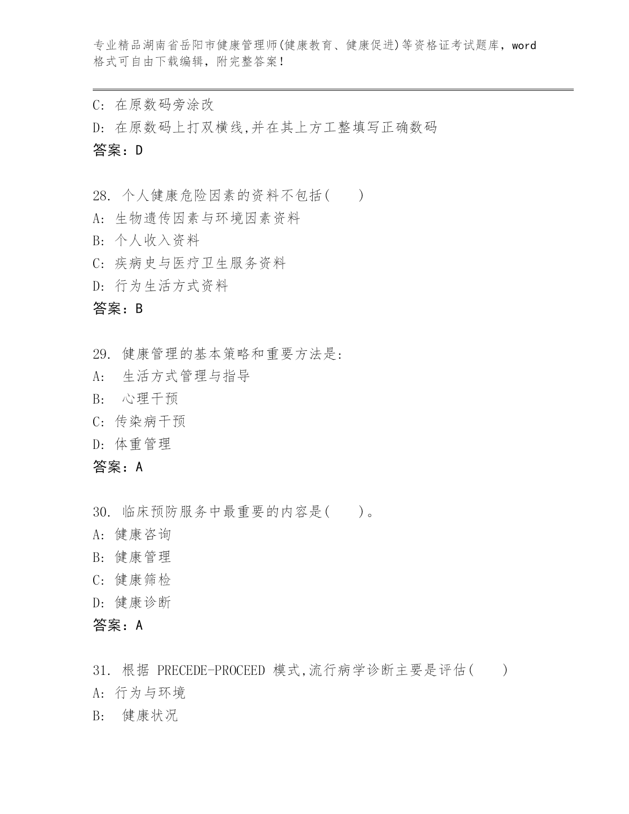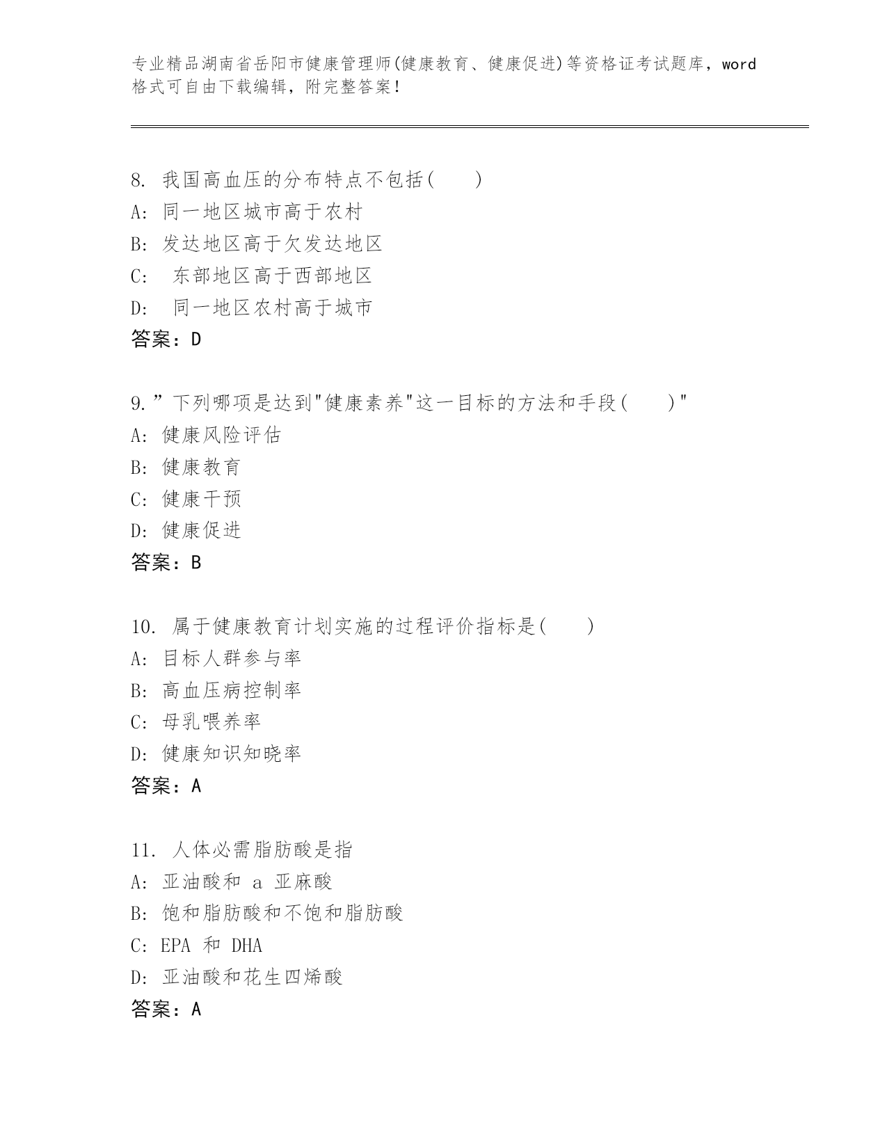 湖南省岳阳市健康管理师(健康教育、健康促进)等资格证考试精品(完整版).docx