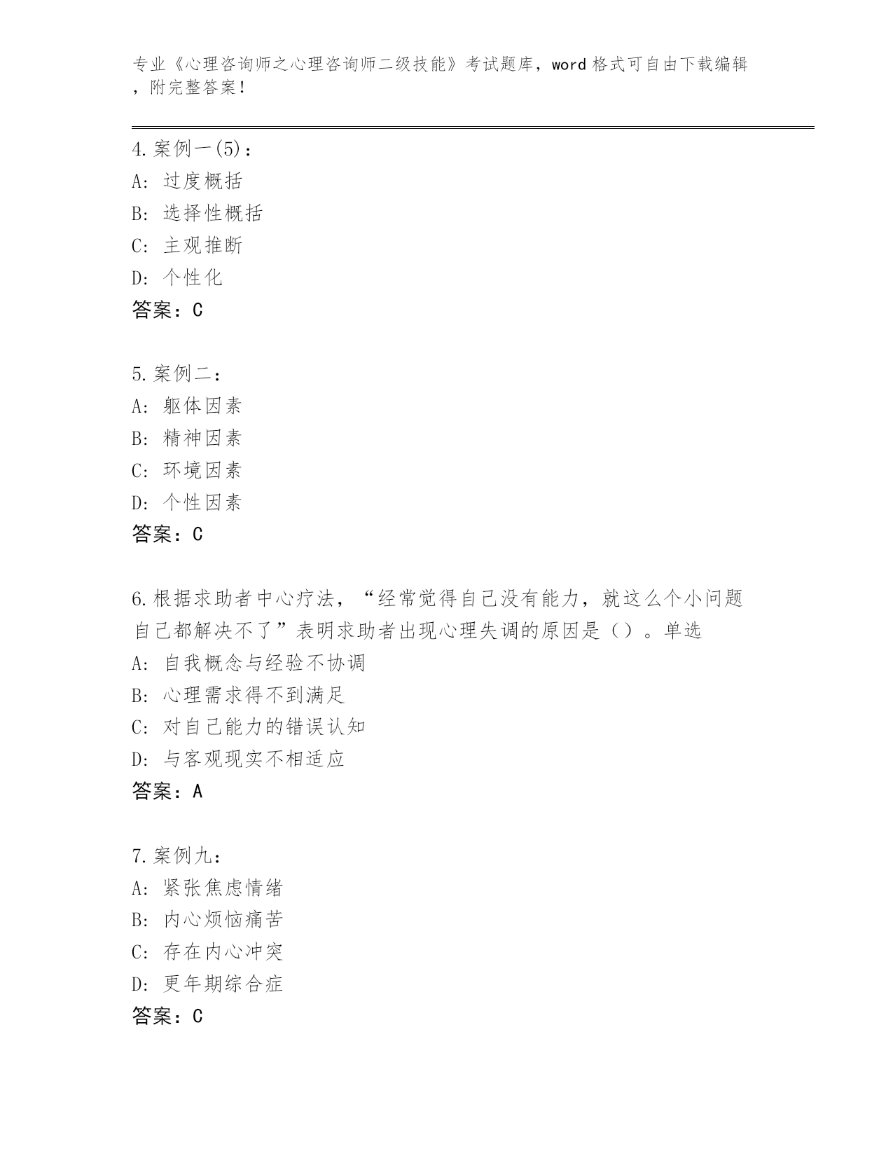 河南省睢县完整版《心理咨询师之心理咨询师二级技能》资格考试完整题库含答案(突破训练)