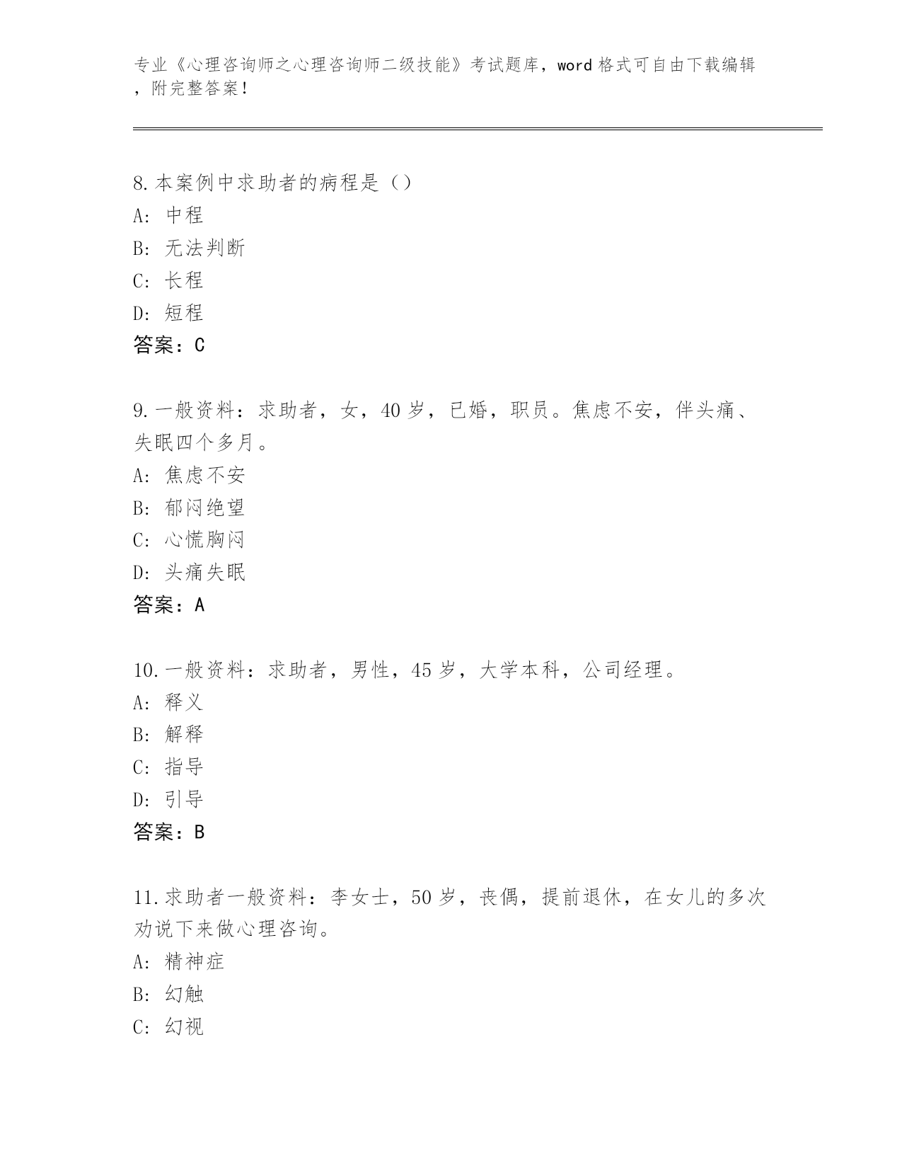 广东省历年《心理咨询师之心理咨询师二级技能》考试通关秘籍题库含答案【突破训练】