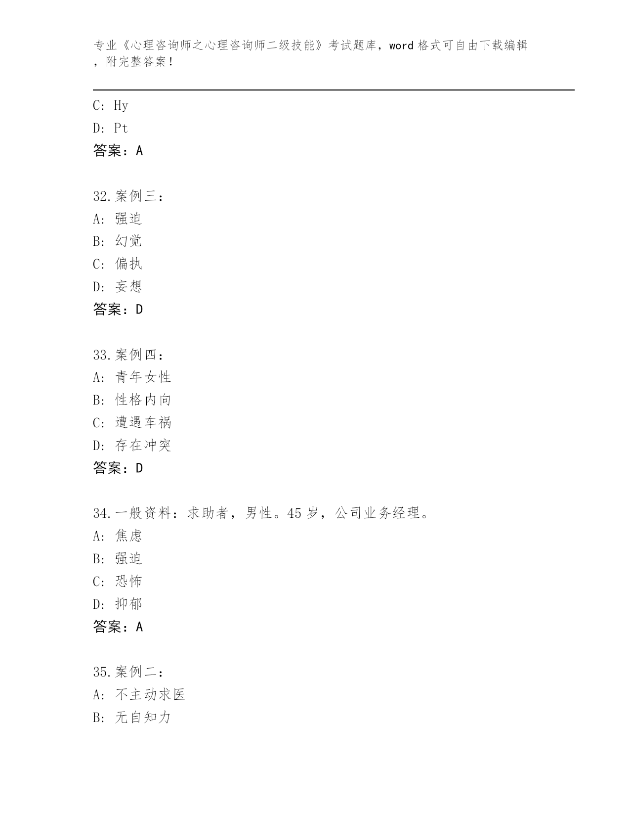 河南省2023-24年《心理咨询师之心理咨询师二级技能》考试王牌题库(突破训练)
