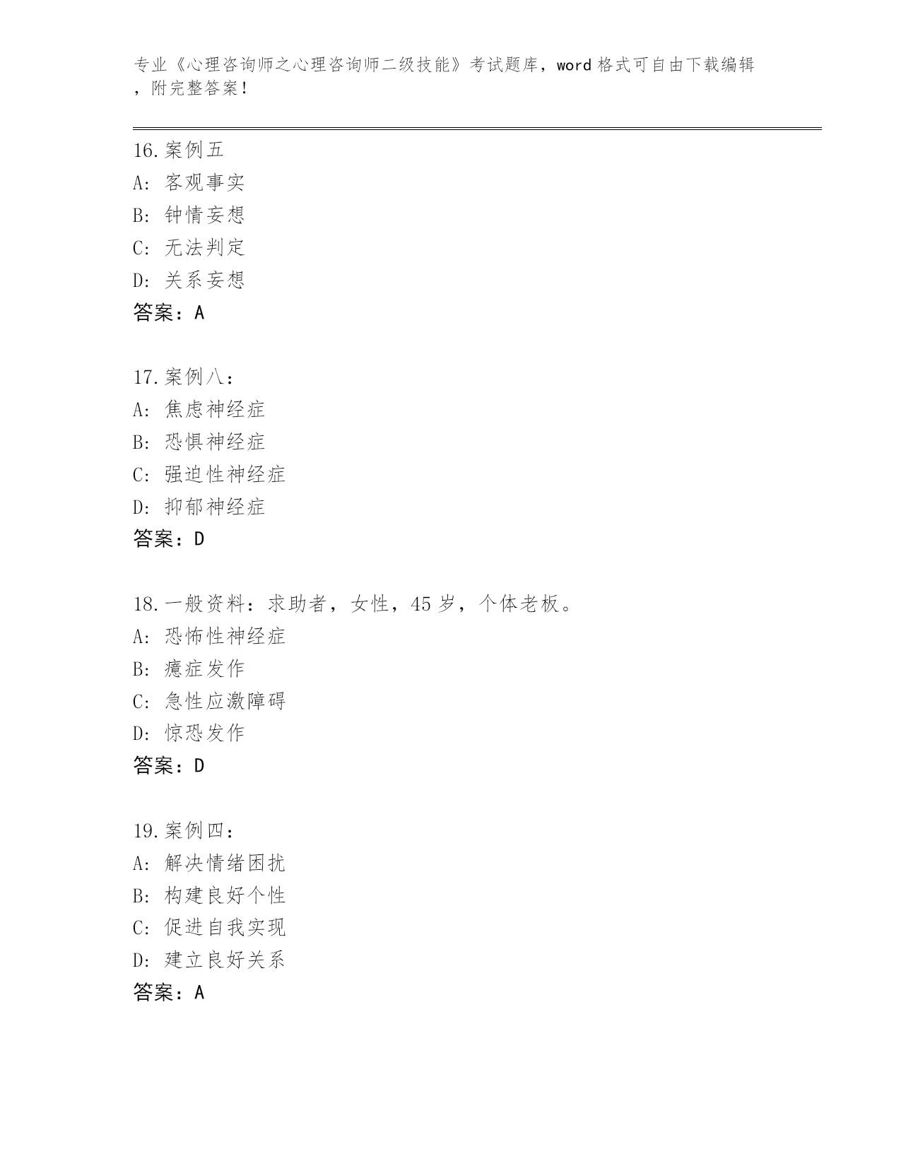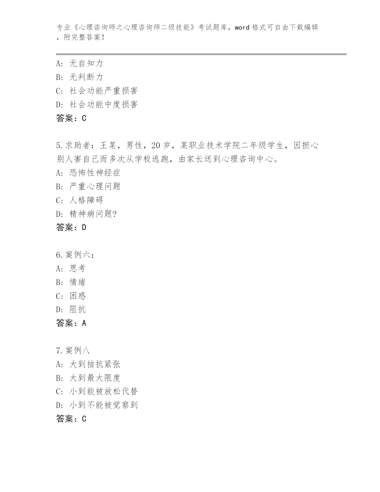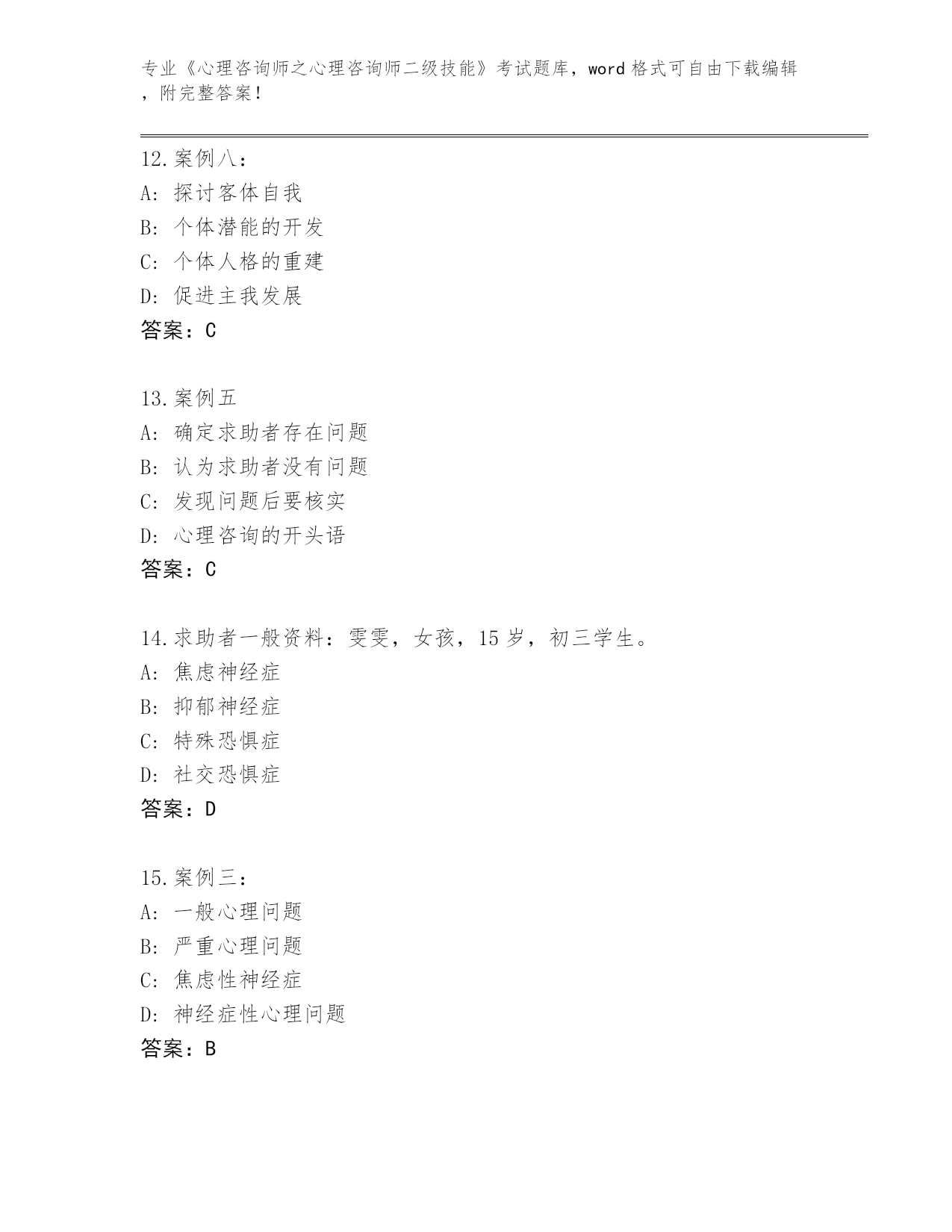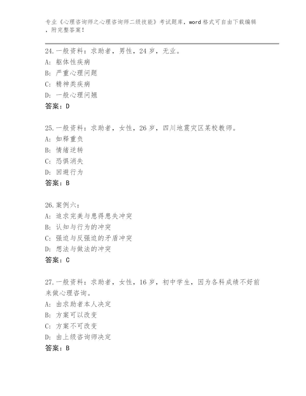 四川省布拖县2024年《心理咨询师之心理咨询师二级技能》考试必考200题(达标题)