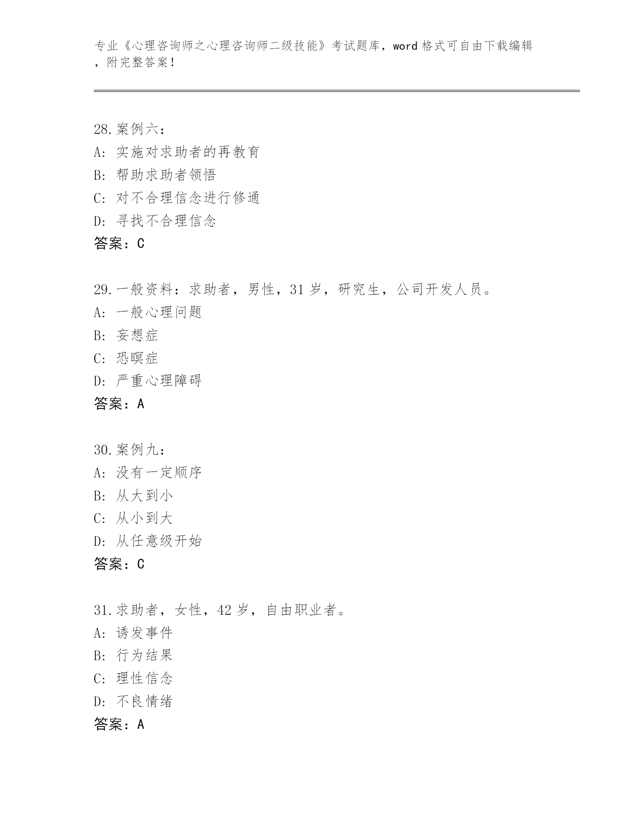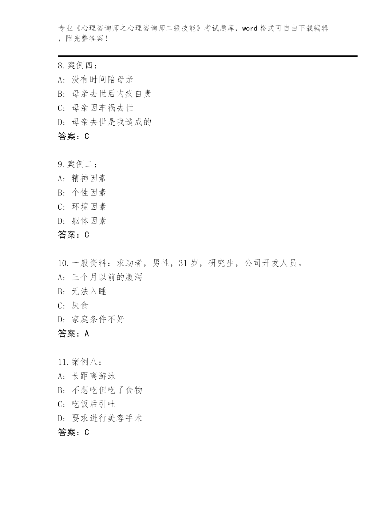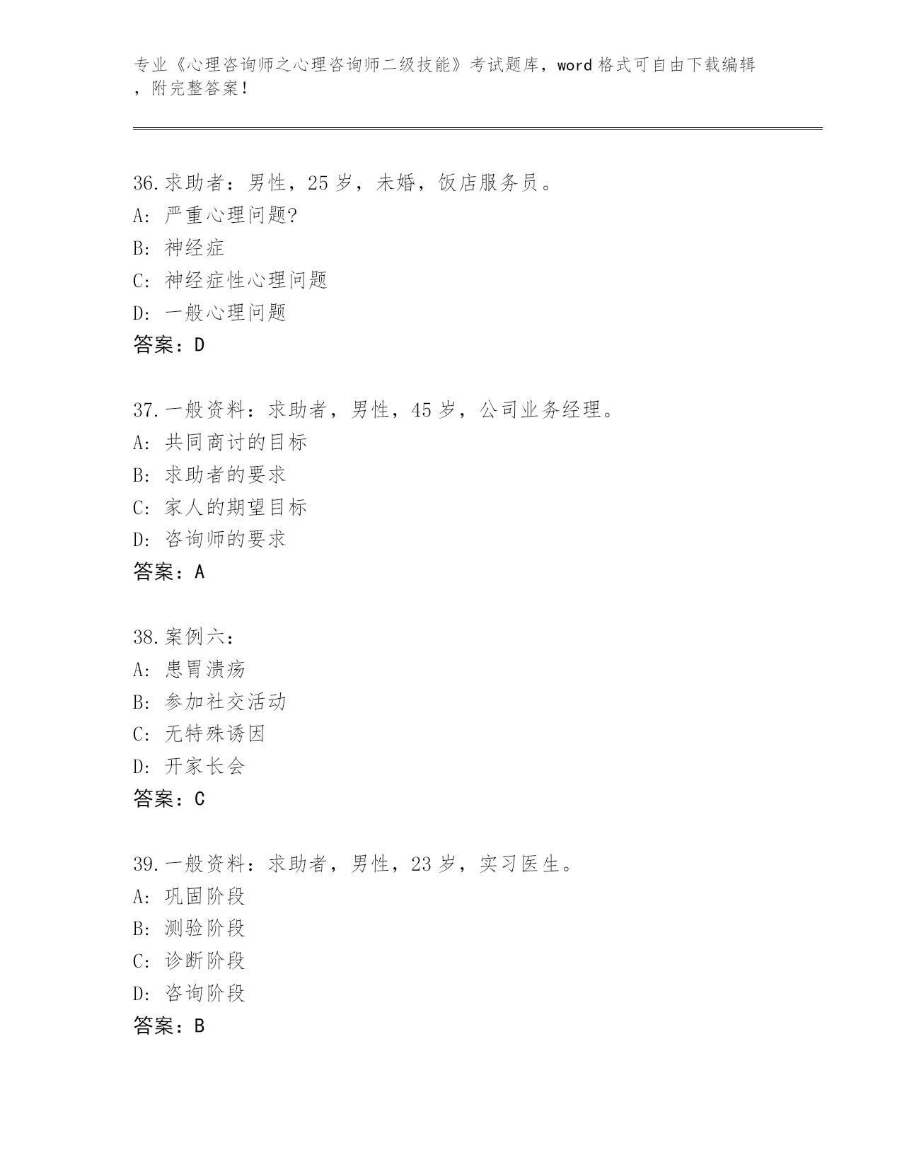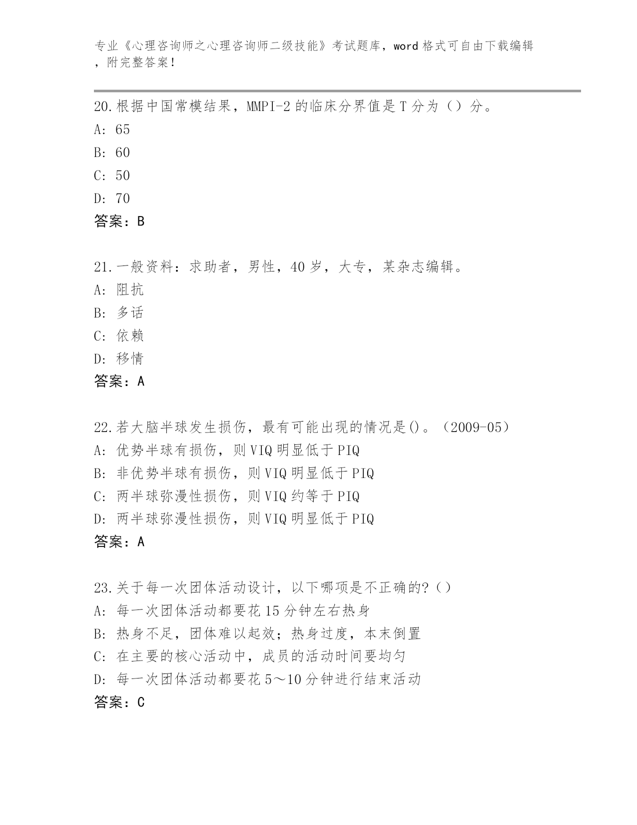 四川省布拖县2024年《心理咨询师之心理咨询师二级技能》考试必考200题(达标题)