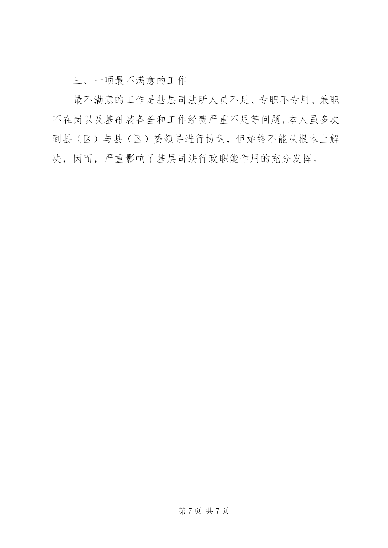 第PAGE\*Arabic\*MERGEFORMAT7页共NUMPAGES\*MERGEFORMAT7页司法局局长述职述廉报告一、四项主要工作实绩(一)以建设“法治**”为契机,努力开创全市法制宣传教育工作新局面按照“五五”普法规划和“法治**”建设的要求,创新机制、整合资源、挖掘内涵、拓宽渠道,积极开展多种形式的法制宣传教育,努力推进法制宣传教育工作的新发展。一是领导干部的学法用法工作进一步规范。会同市政府办等有关部门制定了《**市政府常务会学法制度》,出台了《**市政府常务会议学法计划》,《关于进一步加强党政领导干部、公务员学法用法工作意见》,对学法内容、学法时间、学法对象等都作出了明确规定,增强了依法行政、依法办事意识,提高了政府的公信力和执行力。二是抓住重点内容的学习宣传。继续突出抓好宪法的学习宣传,大力宣传与经济社会发展相关的、与群众生产生活密切相关的、整顿和规范市场经济秩序的、维护社会和谐稳定、促进社会公平正义的法律法规,增强法制宣传教育的针对性。三是着力抓好重点对象的学法用法。深入开展“一学三讲”和“法律六进”活动,重点抓好领导干部、公务员、青少年、企业经营管理人员、农民和信教群众的法制宣传教育,切实提高全民普法教育的实际成效。四是圆满完成了“五五”普法中期检查工作。召开了全市迎接“五五”普法中期考核验收工作会议,对考核验收工作进行部署和安排;对各县(区)和市直重点部门进行了“五五”普法中期考核验收工作专项督查,切实做好“五五”普法中期考核验收工作。“五五”普法中期考核顺利通过了省级验收,得到省“五五”普法中期考核验收组高度评价。(二)充分发挥职能作用,积极参与“平安**”建设围绕建设“平安**”确定的工作目标和要求,认真履行职责,出色完成了各项工作任务,取得了明显的成效,为平安**建设作出了积极的贡献。1、积极推进大调解机制建设新发展按照省委政法委、省司法厅和市委市政府关于大调解机制建设的新要求,积极探索大调解工作的有效举措:一是理顺关系,加强县乡两级社会矛盾纠纷调处服务中心建设,进一步巩固完善村(社区)、企事业单位人民调解组织,积极发展专业性、区域性、行业性人民调解组织,实现了调解工作对社会矛盾纠纷的全覆盖;二是健全机制,全面推行诉调对接、公调对接、检调对接、访调对接、援调对接、纪调对接机制,实现了人民调解、行政调解、司法调解的有机衔接和配合;三是规范运行,对矛盾纠纷的排查研判、接待受理、分流指派、检查督办实行规范化管理;四是完善制度,严格人民调解工作纪律,进一步强化依法调解、规范调解的意识;五是注重效果,确保了矛盾纠纷的调解率、调解成功率和调解协议履行率。两年来,全市各级调解组织共调解矛盾纠纷28764件,成功28050件,调解成功率97.52%,防止群体性上访380起5342人次,防止民间纠纷引起自杀31起31人次,防止民间纠纷转化为刑事案件92起222人次。2、加强社区矫正和安置帮教工作进一步完善社区矫正工作程序和规章制度,严肃工作纪律,实现社区矫正工作规范化和制度化;加强社区矫正专业工作者、社会工作者、志愿者等三支队伍建设,推行社会化教育改造挽救工程;在全省率先完成市级社区矫正移动信息管理平台建设,强化对社区矫正对象的监督管理,切实防止脱管漏管。全市共有矫正对象3448人,解除矫正2106人,现有在矫对象2871人,无重新犯罪。大力推行“帮教科学化、安置多元化、管理信息化、工作规范化”,建立完善的管理体制和工作机制,强化刑释解教人员回归社会的衔接管理,落实各成员单位工作职责,积极探索社会化安置帮教工作的新途径、新办法,刑释解教人员安置帮教工作机制更加完善,最大限度地预防和减少了重新违法犯罪。两年来,全市共接收刑释解教人员3831人,安置3803人,安置率99.3%;帮教3819人,帮教率99.7%。3、努力提高法律服务水平律师、公证、基层法律服务、司法鉴定机构等法律服务机构,不断拓宽服务领域,提高服务质量,积极投入到经济建设和改革开放的社会实践中,为经济增长方式的转变和实现工业突破提供法律服务。两年来,全市公证机构共办理各类公证33465件,律师行业共办理各类案件8531件,基层法司法局局长述职述廉报告内容加载中...律服务所共代理诉讼22557件,非诉讼代理13131件,全市六家法援中心建设全部通过省级规范化验收(全省仅两家),共受理法援案件3167件。(三)强化队伍建设,为司法行政事业的改革与发展提供有力的组织保障加强党性教育,不断增强贯彻执行党的路线、方针、政策的自觉性、坚定性;加强作风建设,做到五反对五倡导;加强组织建设,健全了基层党组织,注重培养发展基层党员队伍,做到成熟一个发展一个;加强廉政建设,切实做到清正廉洁。加强基层基础建设。强化规范化管理,按照“体系健全、