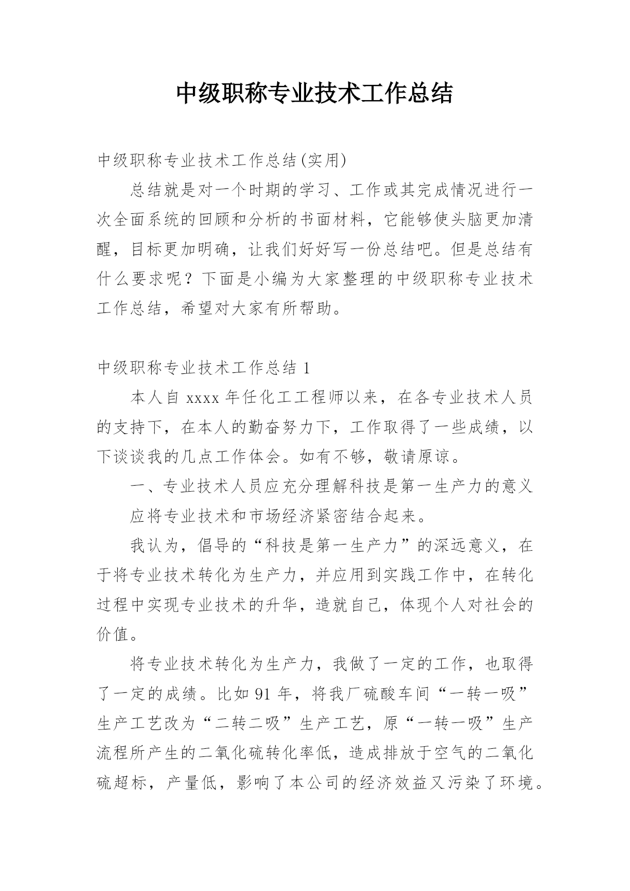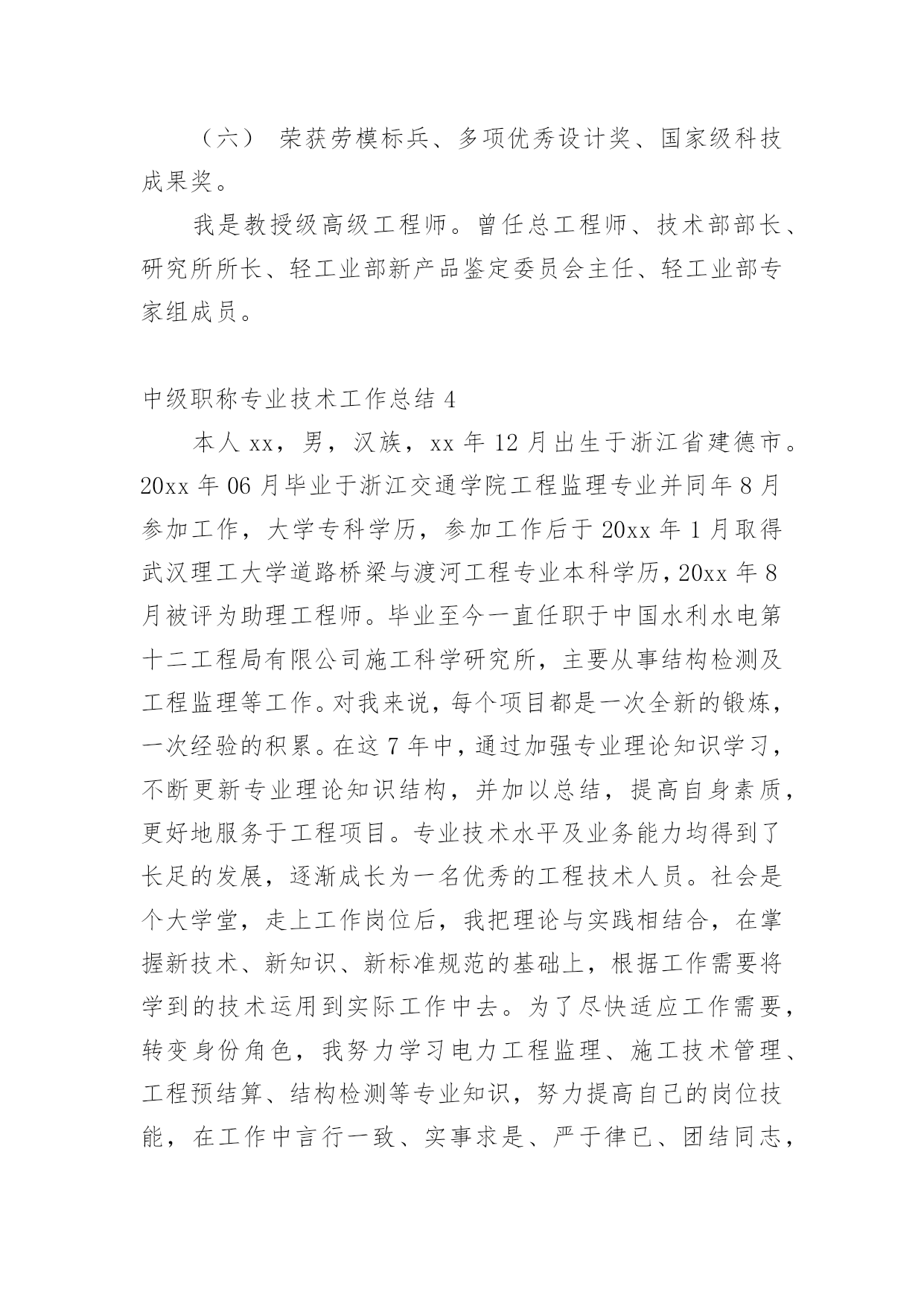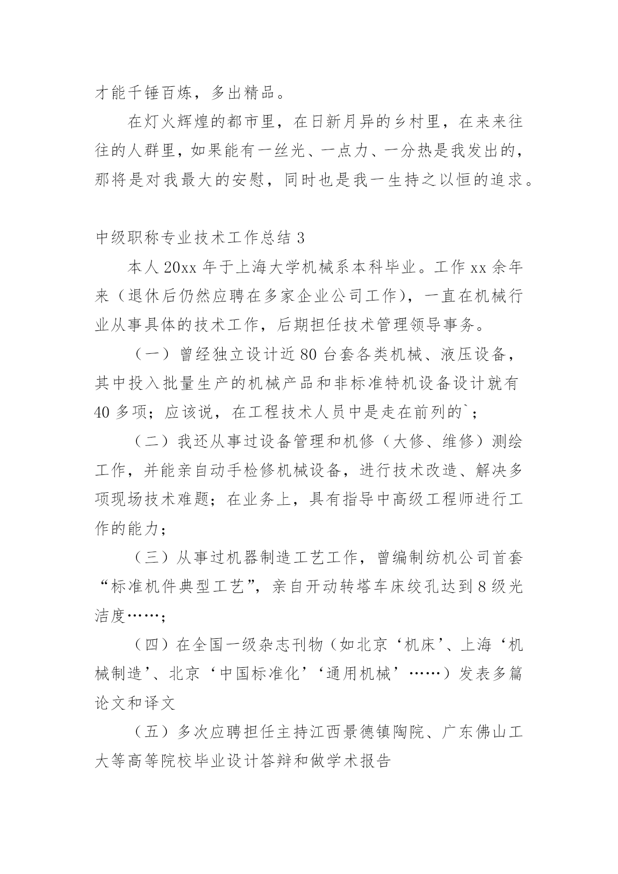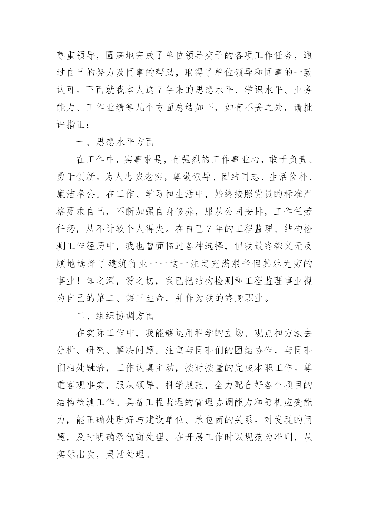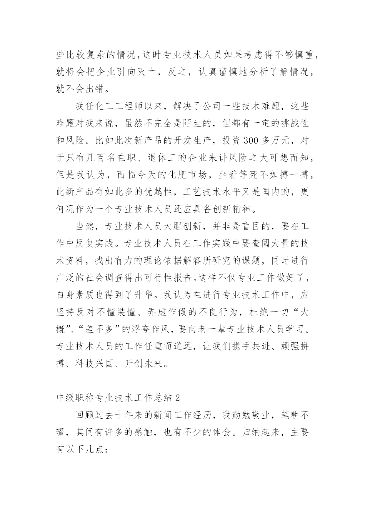 中级职称专业技术工作总结中级职称专业技术工作总结(实用)总结就是对一个时期的学习、工作或其完成情况进行一次全面系统的回顾和分析的书面材料,它能够使头脑更加清醒,目标更加明确,让我们好好写一份总结吧。但是总结有什么要求呢?下面是小编为大家整理的中级职称专业技术工作总结,希望对大家有所帮助。中级职称专业技术工作总结1本人自xxxx年任化工工程师以来,在各专业技术人员的支持下,在本人的勤奋努力下,工作取得了一些成绩,以下谈谈我的几点工作体会。如有不够,敬请原谅。一、专业技术人员应充分理解科技是第一生产力的意义应将专业技术和市场经济紧密结合起来。我认为,倡导的“科技是第一生产力”的深远意义,在于将专业技术转化为生产力,并应用到实践工作中,在转化过程中实现专业技术的升华,造就自己,体现个人对社会的价值。将专业技术转化为生产力,我做了一定的工作,也取得了一定的成绩。比如91年,将我厂硫酸车间“一转一吸”生产工艺改为“二转二吸”生产工艺,原“一转一吸”生产流程所产生的二氧化硫转化率低,造成排放于空气的二氧化硫超标,产量低,影响了本公司的经济效益又污染了环境。通过这次改造,二氧化硫排放量达到国家的排放标准,并通过了省、市两级环保部门的验收,硫酸产量由原来年产1、5万吨提高到2万吨,大大满足了我厂磷肥生产的需要。还有更重要的一点是减少了空气污染,改善了工人工作环境和附近居民的生活环境。另外,1992年,我引进华南理工大学化工研究所研制的换热器新技术,即把硫酸车间换热器更换成空心环管壳式换热器。在这次技改中被换下的六台换热器,由原来的折流板式更换成空心环管壳式,使用面积由原来的1835M2减少到1210M2,气体总压降由原来的15050Pa降到6320Pa,硫酸产量均换87T/d计,所需用热面积由原来的22.1M2(t·d)降至14.58M2(t·d),使我厂每年节约生产用电270000KWh,达到节能降耗的目的,取得了直接经济效益。在实行技术改革实践的过程中,成效比较显著的是普钙车间的湿法生产改造工程。1990年8月—12月,普钙车间投资120万元,将传统的干法生产改为湿法生产,年产量由原来的3万吨提高到6万吨。工艺流程缩短了,省略了干法生产中的干燥、配酸系统和除尘设备,从而使生产成本降低了,据统计,就燃料、电耗、大气污染三项每年共计节约50万元。二、基础理论是搞好专业技术工作的前提。“万丈高楼从地起”,人类历史从一开始就存在着这样一条自然规律,即人类无论从事何种社会活动都是从基础开始。基础是否牢固,直接影响其今后的发展,因此,没有基础,就谈不上发展,没有扎实的基础理论去指导专业技术工作,就没有技术成果的产生。而每一基础理论的突破,都孕育着一场技术革命,可见基础理论对专业技术工作来说,是何等的重要。我一向都比较注重基础理论的学习,而且根据本企业的生产实际系统地学。我任职化工工程师以来,每年都参加专业学习。如91年的《无机盐化工产品技术》、95年的《无机化工生产流程设计工艺》、97年的《磷肥湿法生产工艺》等理论的学习,在以后的工作中得到很好的应用。90年8月至于12月,普钙车间将传统的干法生产改为湿法生产,经过八个月的技改和试产摸索,一次投产成功,实现了不用脱水设备,直接进行“湿法磷肥生产”的工艺生产线。我厂从64年建厂以来,普钙生产经历了三次不同的生产方法。前两次都是“干法生产”,这些传统的流程具备干燥、配酸系统、除尘设备,工艺流程繁琐、耗费大、污染环境,不利于工人和附近居民的身体健康,还给企业造成浪费。湿法工艺流程的成功投产,不仅降低了生产成本,而且减少了工人的劳动强度,提高了工人的生产效率,改善了工人的劳动环境,附近居民对我厂的怨言减少了。在这次技改工作中遇到的难题就是如何使产品水分达标。我带领车间技术员经过几个月的生产摸索,找到了影响产品水分指标的六大因素及对应的解决措施。比如针对矿种因素,我采取矿种搭配使用,云贵矿与湖南矿以1:0.6的比例进行搭配,磨矿浆的水采用氟吸收的水,增加矿浆的流动性,降低矿浆的水分含量,产品水分问题解决了,其它的指标也随之好转,使我厂湿法生产的普通过磷酸钙成品由原来的四级品达到三级品,产量由原来的3万吨增加到6万吨,节约成本约50万元。三、扩大知识面,使专业技术工作如鱼得水。我认为,任何现代工程项目,不可能是纯专业技术,而是多项技术的组合。要把专业技术工作做好,必须要扩大自己的知识面,计划经济时代是这样,在竞争日益激烈的市场经济条件下更要这样。我参加工作以来,就喜爱阅读各方面知识的理论书籍。我想如果知识广泛一些,也许对以后的工作有所帮助。我这样想也这样做了。我在系统地掌握本企业的专业知识的基础上,还有计划有目的地自学其他理论知识。近十年来,主要学习了《电工学》、《工程流体力学》、《塑胶工业》、《二氧化钛表面