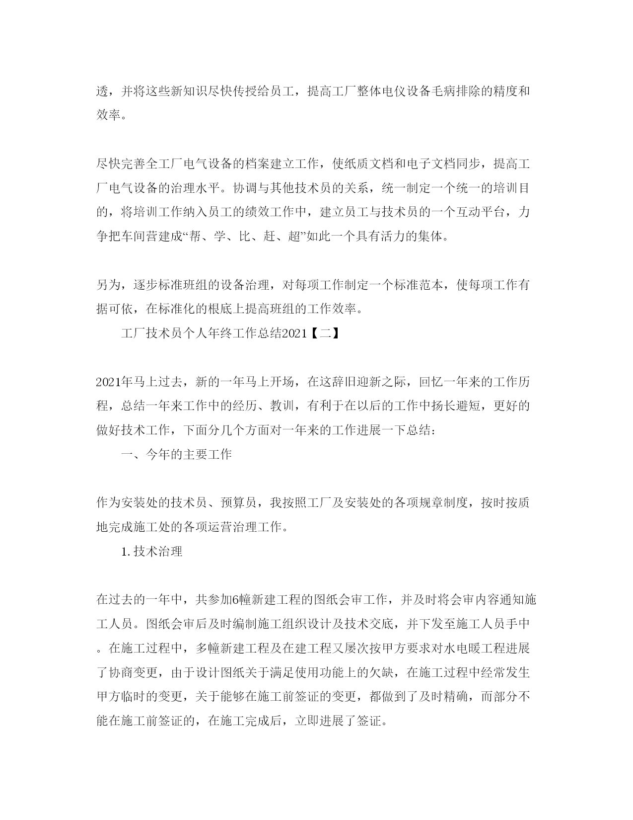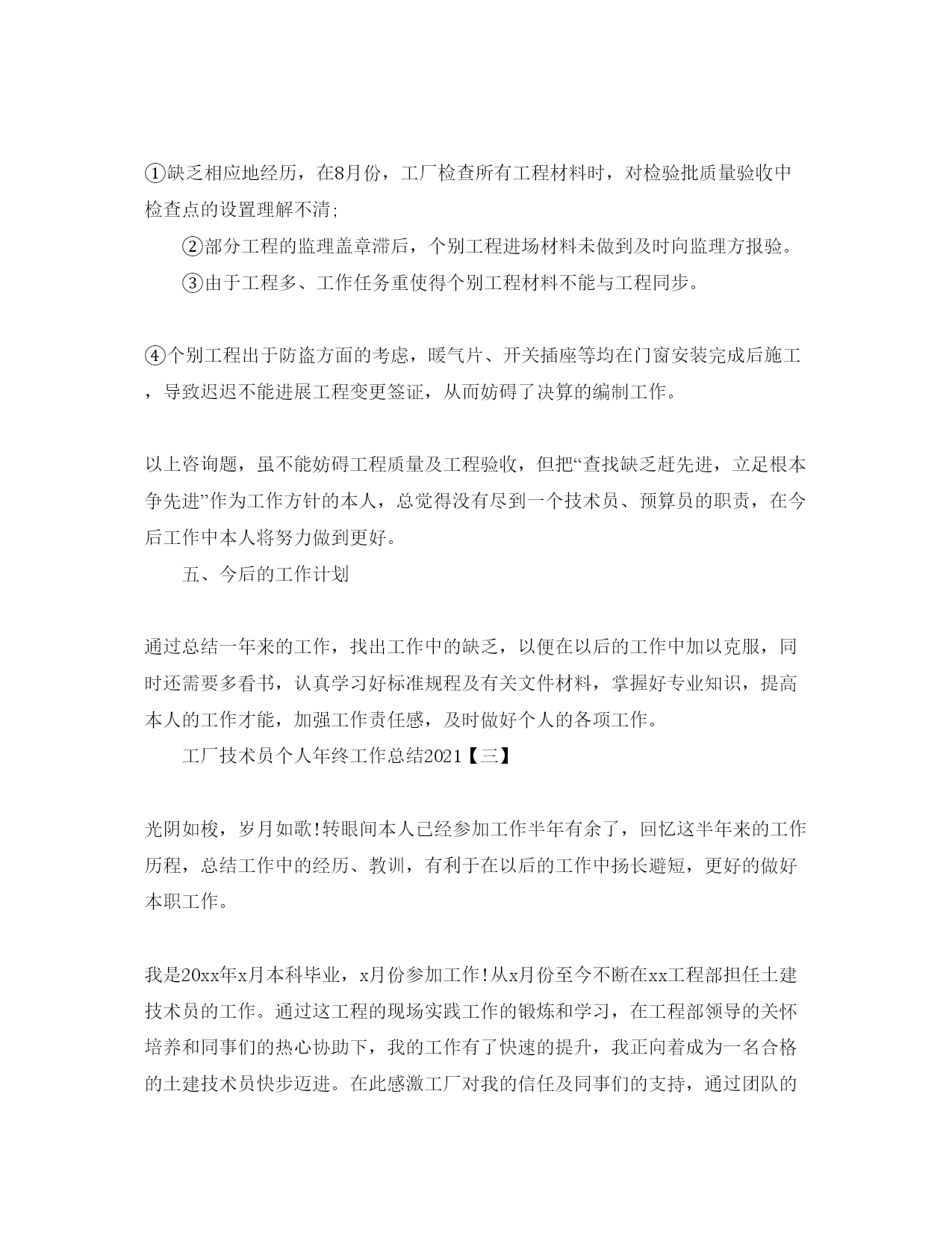 2022工厂技术员个人年终工作参考总结模板【五篇】