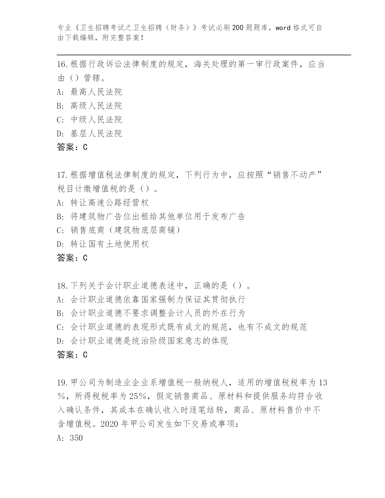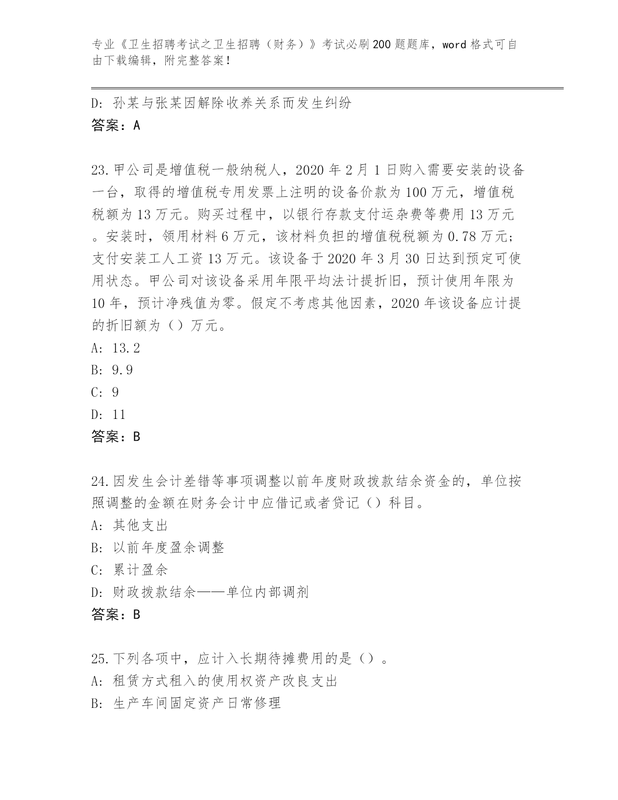 河南省嵩县2024《卫生招聘考试之卫生招聘(财务)》考试必刷200题真题及答案(名师系列)