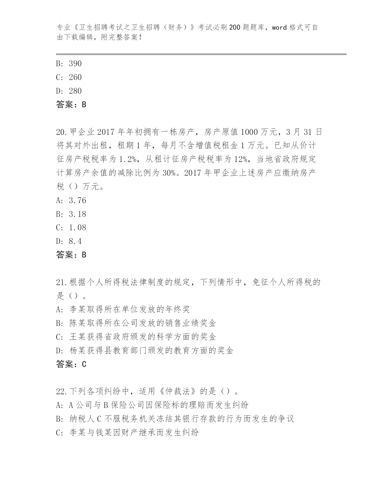 2024河南省《卫生招聘考试之卫生招聘(财务)》考试必刷200题真题题库(名师系列)