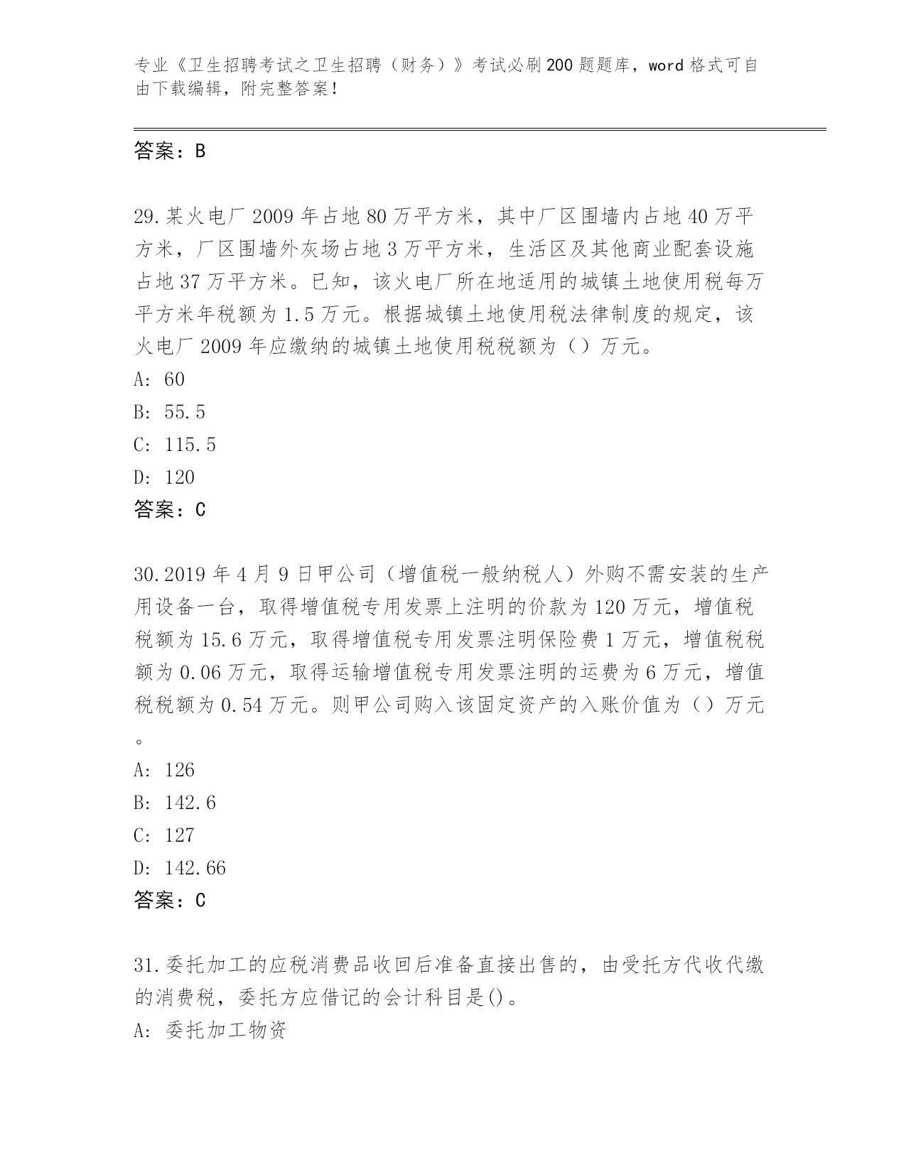 2024年安徽省涡阳县《卫生招聘考试之卫生招聘(财务)》考试必刷200题真题题库及答案(名师系列)
