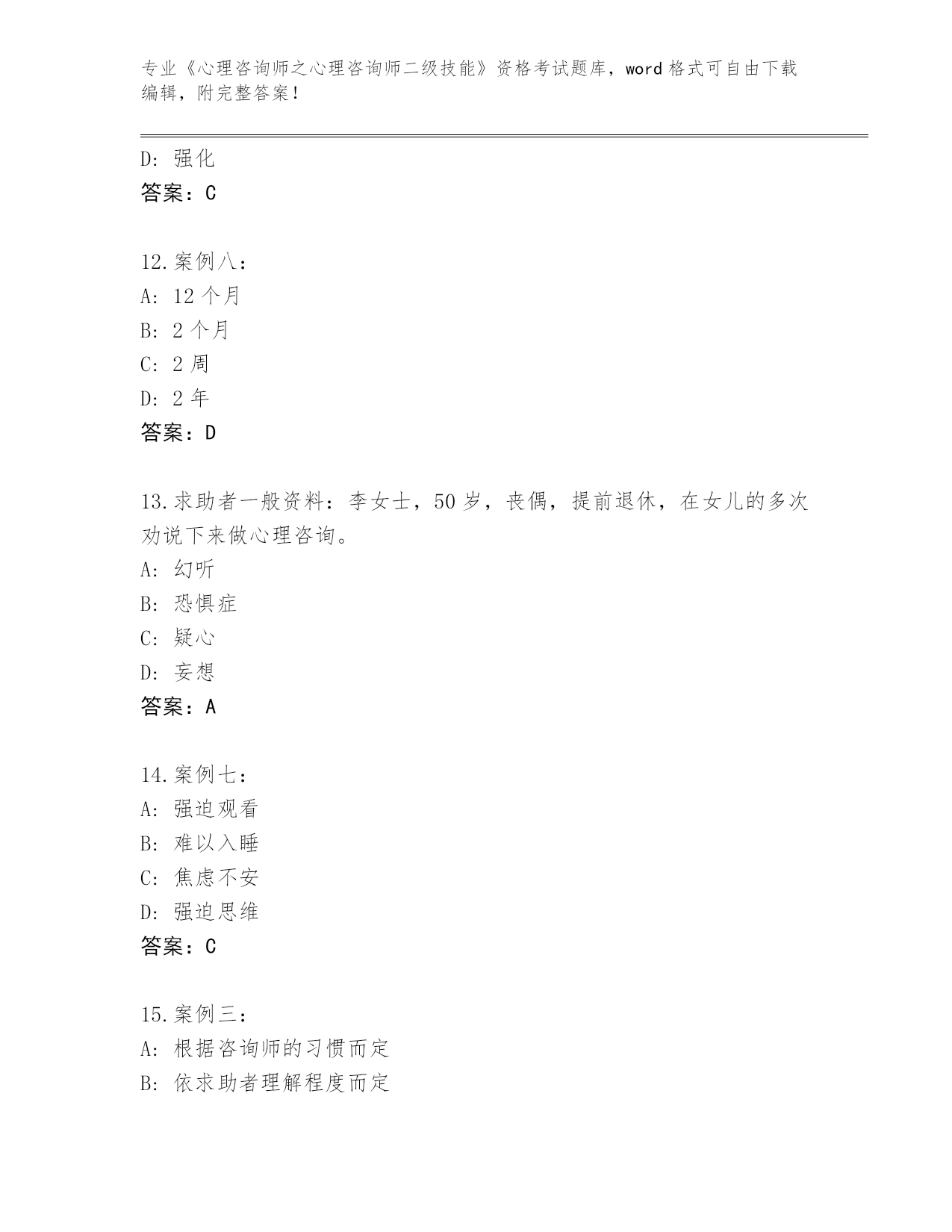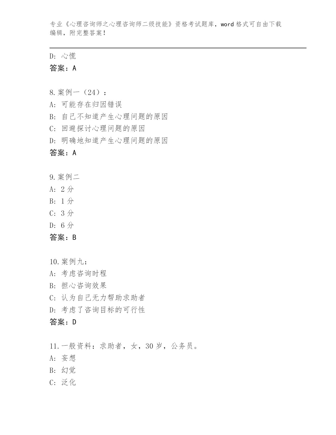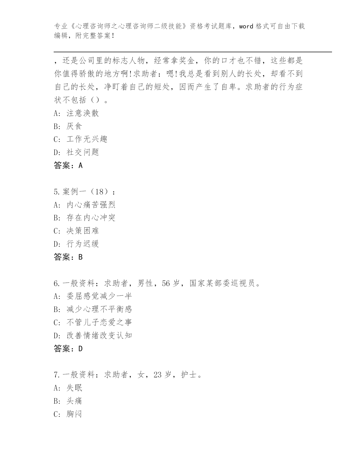 云南省2024《心理咨询师之心理咨询师二级技能》考试真题题库【】