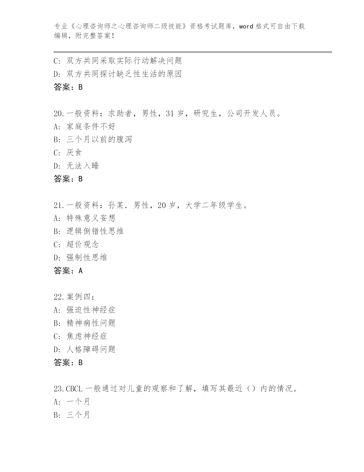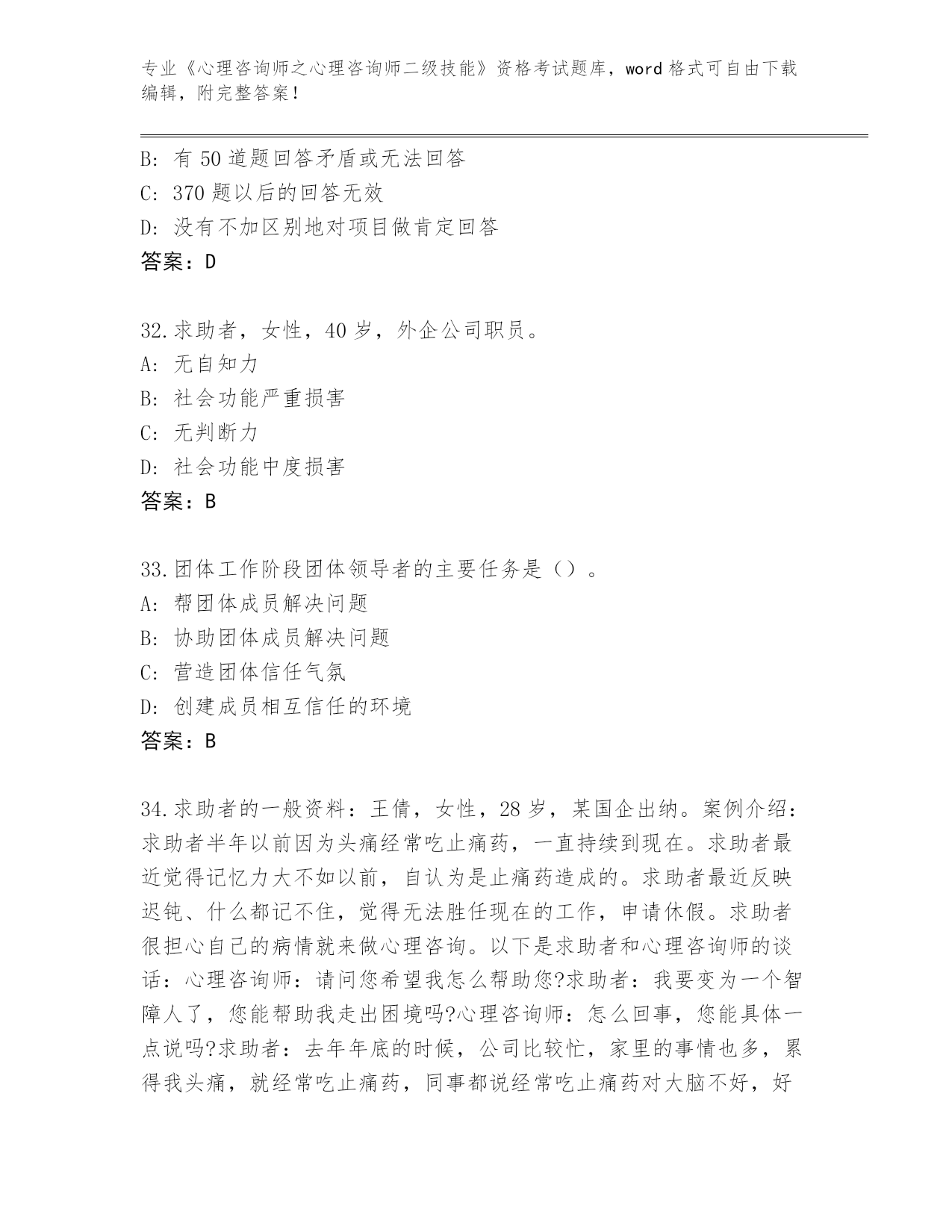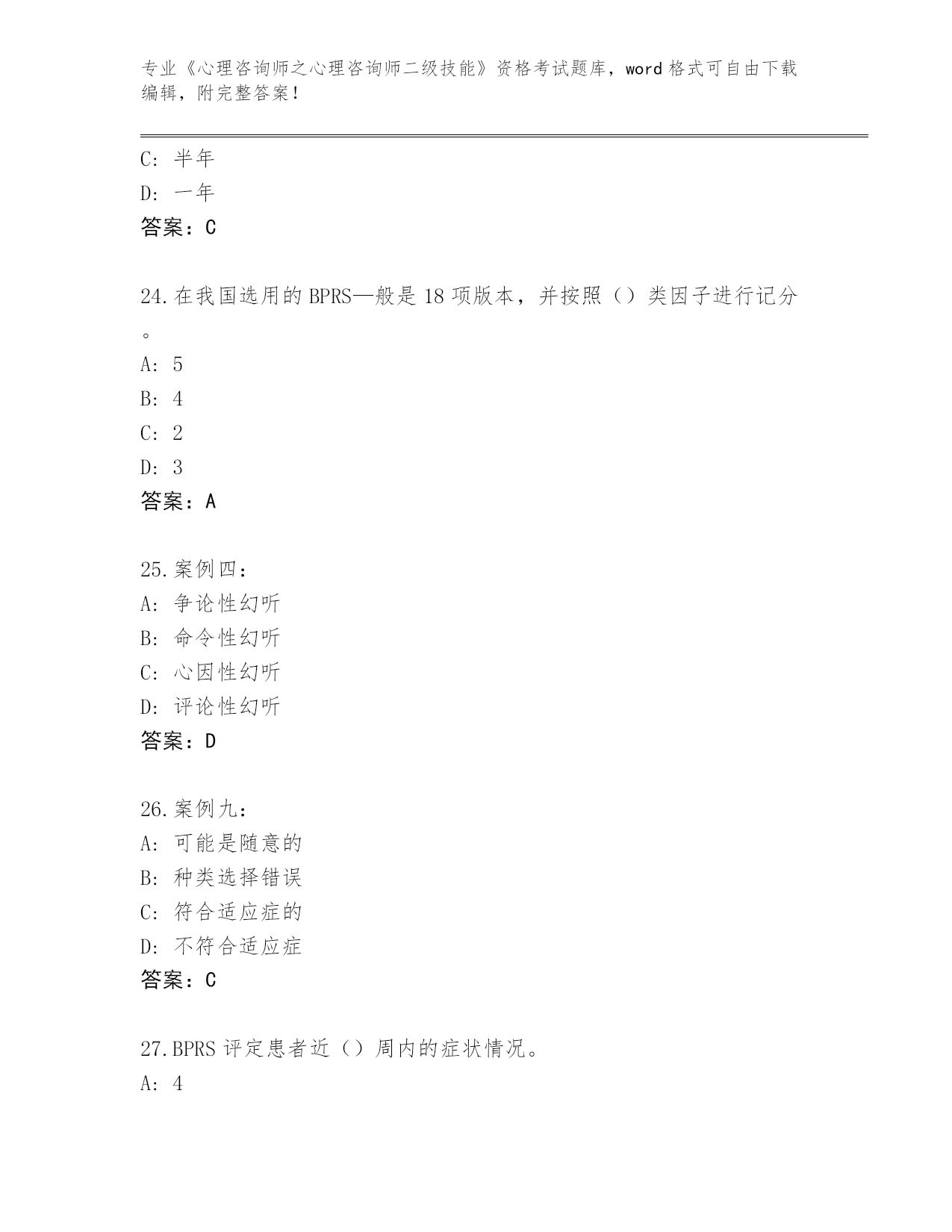 云南省2024《心理咨询师之心理咨询师二级技能》考试真题题库【】