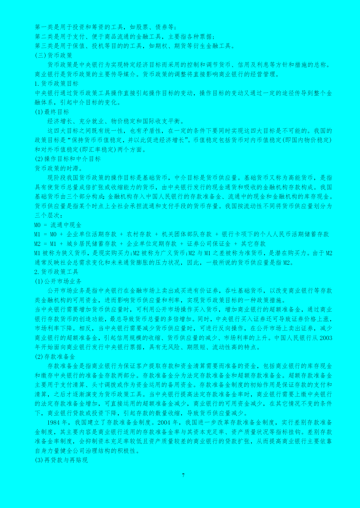 PAGEPAGE46第一章中国银行业概况一、中央银行、监管机构与自律组织(一)中央银行简称:PBC1984年1月1日:专门行使央行职能1995年3月18日:《中国人民银行法通过》2003年:银监会行使银行业监管职能职能:制定和执行货币政策,防范和化解金融风险,维护金融稳定;职责:监督管理银行间同业拆借市场和银行间债券市场(二)监管机构:银监会1.历史沿革和监管对象成立时间:成立于2003年4月监管法正式施行时间:2003年12月27日通过,2004年2月1日起正式施行修正时间:2006年10月31日监管范围:银行业金融机构银行机构:商业银行、城市信用合作社、农村信用合作社以及政策性银行;非银行机构:金融资产管理公司、信托投资公司、财务公司、金融租赁公司;以及其他金融机构.2.监管职责17项监管理念3.监管理念:“管风险”、“管法人”、“管内控”、“提高透明度”4.监管目标:银行业监督管理的目标是促进银行业的合法、稳健运行,维护公众对银行业的信心。①通过审慎有效的监管,保护广大存款人和消费者的利益;②通过审慎有效的监管,增进市场信心;③通过宣传教育工作和相关信息披露,增进公众对现代金融的了解;④努力减少金融犯罪。5.监管标准:①能够促进金融的稳定,同时又促进金融的创新;②努力提升我国银行业在国际金融服务中的竞争能力;③对各类监管权限做到科学合理,监管者要有所为,有所不为,减少一切不必要的限制;④为金融市场上的公平竞争创造环境和条件,并且维护这种有序的竞争,反对无序竞争;⑤对监管者和被监管者两方面都应当实施严格明确的问责制;⑥高效、节约地使用一切监管资源,做到权为民所用、情为民所系、利为民所谋。6.监管措施:①市场准入:机构、业务、高管;②非现场监管;③现场检查;④监管谈话;⑤信息披露监管。(三)自律组织:中国银行业协会1.成立时间:2000年2.简称:CBA3.性质:民政部登记注册的全国性非营利社会团体。4.主管单位:银监会5.协会宗旨:促进会员单位实现共同利益为宗旨6.会员单位:(1)会员:政策性银行、大型商业银行、中小商业银行、资产管理公司、中央国债登记结算有限责任公司、中国邮政储蓄银行、农村商业银行、农村合作银行、农村信用社联合社、外资银行(2)准会员:各省(自治区、直辖市、计划单列市)银行业协会7.组织机构:最高权力机构:会员大会。会员大会的执行机构:理事会6个专业委员会:法律工作委员会、自律工作委员会、银行业从业人员资格认证委员会、农村合作金融工作委员会、银团贷款与交易专业委员会、外资银行工作委员会日常办事机构:秘书处二、银行业金融机构(一)政策性银行1.成立时间:1994年2.构成及各自的主要业务国家开发银行:国家重点建设项目融资中国进出口银行:支持进出口贸易融资中国农业发展银行:农业政策性贷款的任务3.政策性银行的改革:按照分类指导、“一行一策”的原则,推进政策性银行改革。首先推进国家开发银行改革,全面推行商业化运作,主要从事中长期业务。对政策性业务要施行公开透明的招标制。(二)大型商业银行成立时间原专有业务股改时间上市时间工行1984.1.1工商信贷、个人储蓄2005.10.282006.10.27上交、香港联交农行1979恢复农村金融业务中行1912外汇外贸专业银行2004.8.262006.6.1香港联交、2006.7.5上交所上市建行1954.10.1长期信用业务2004.9.172005.10.27香港联交、交行1987.4.1重新组建第一家全国性股份制商业银行2005.6.23香港联交;2007.5.15上交(三)中小商业银行1.股份制商业银行(1)组成:12家商业银行:中信银行、中国光大银行、华夏银行、广东发展银行、深圳发展银行、招商银行、上海浦东发展银行、兴业银行、中国民生银行、恒丰银行、浙商银行、渤海银行(2)作用:填补了国有商业银行收缩机构造成的市场空白,满足了企业和居民的融资和储蓄业务需求;促进了银行体系竞争机制的形成和竞争水平的提高;经营管理方面不断创新,推动了整个中国银行业的改革和发展。2.城市商业银行(1)基础:原城市信用合作社的基础上组建起来的(2)发展历程:1979年,第一家在河南驻马店市成立,为小企业、工商户、居民服务;1986年,在大中城市正式推广,促进小企业发展和当地经济繁荣;1994年成立城市合作银行;1998年更名为城市商业银行。(3)发展趋势:一是引进战略投资者;二是跨区域经营;三是联合重组。(四)农村金融机构1.组成:农村信用社、农村商业银行、农村合作银行、村镇银行和农村资金互助社、农村信用社、农村商业银行、农村合作银行:20世纪70年代