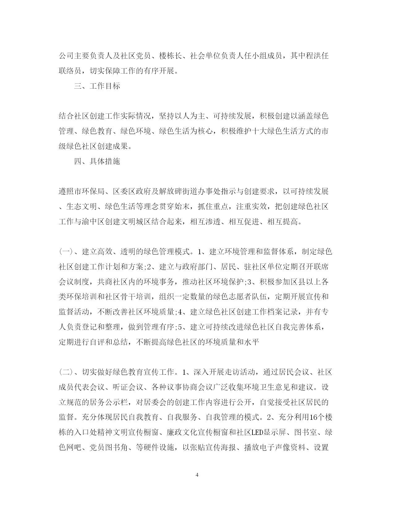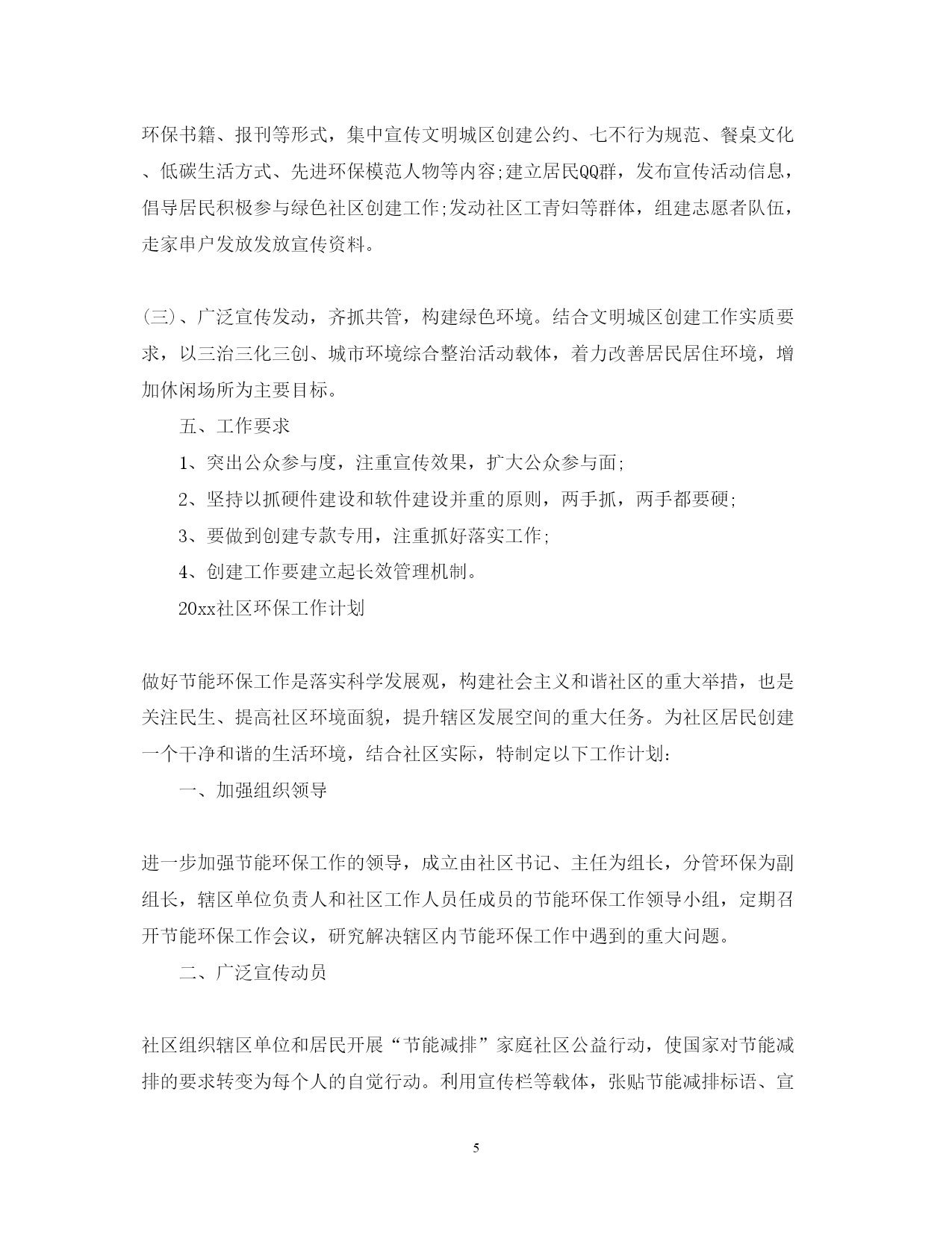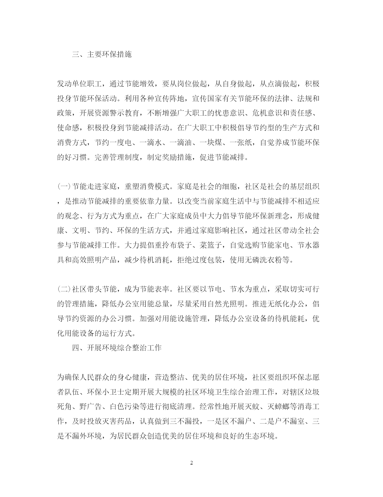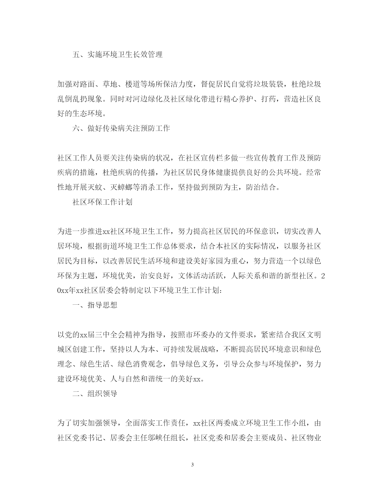 此资料由网络收集而来,如有侵权请告知上传者立即删除。资料共分享,我们负责传递知识。PAGEPAGE7社区环保的工作计划倡导绿色义务,引导公众参与环境保护,努力建设环境优美、人与自然和谐统一的美好,以下是小编为大家整理的“20xx社区环保工作计划”,欢迎大家阅读,仅供参考。社区环保工作计划增强社区居民环保意识,引导社区居民积极参与环保活动,树立良好的环境道德和行为规范,结合社区实际,特制定20xx年环境保护工作计划。一、建立领导制度,健全管理制度为进一步加强环境保护工作,成立环境监管网格化管理领导小组,定期召开环境保护工作会议,研究解决辖区内环境保护工作中遇到的重大问题。进一步建立健全管理制度,完善各项规章制度和措施,推动社区环境保护工作的开展。二、形式多样,广泛宣传动员(一)积极组织辖区单位和居民开展节能减排公益行动。积极动员辖区单位利用宣传栏、黑板报、张贴节能减排标语、宣传画等加强宣传,使国家对节能减排的要求转变为每个人的自觉行动。充分利用各种节日、环保知识讲座等形式向居民发放宣传资料,介绍和宣传日常节能环保知识,形成人人爱惜绿色环境的文化氛围。(二)认真开展环保宣传活动。利用4.22地球日、6.5环境日和世界无烟日等,加大宣传教育力度,广泛进行环保知识的宣传,增强大家的环保意识,自觉地改善环境状况,抵制和制止各种违反环保法律法规的不良行为。组织社区居民开展资源节约志愿活动,交流节能减排经验,大力宏扬节约光荣,浪费可耻社会风尚。三、主要环保措施发动单位职工,通过节能增效,要从岗位做起,从自身做起,从点滴做起,积极投身节能环保活动。利用各种宣传阵地,宣传国家有关节能环保的法律、法规和政策,开展资源警示教育,不断增强广大职工的忧患意识、危机意识和责任感、使命感,积极投身到节能减排活动。在广大职工中积极倡导节约型的生产方式和消费方式,节约一度电、一滴水、一滴油、一块煤、一张纸,自觉养成节能环保的好习惯。完善管理制度,制定奖励措施,促进节能减排。(一)节能走进家庭,重塑消费模式。家庭是社会的细胞,社区是社会的基层组织,是推动节能减排的重要依靠力量。以改变当前家庭生活中与节能减排不相适应的观念、行为方式为重点,在广大家庭成员中大力倡导节能环保新理念,形成健康、文明、节约、环保的生活方式,并通过家庭影响社区,通过社区带动全社会参与节能减排工作。大力提倡重拎布袋子、菜篮子,自觉选购节能家电、节水器具和高效照明产品,减少待机消耗,拒绝过度包装,使用无磷洗衣粉等。(二)社区带头节能,成为节能表率。社区要以节电、节水为重点,采取切实可行的管理措施,降低办公室用能总量,尽量采用自然光照明。推进无纸化办公,倡导节约资源的办公习惯。加强对用能设施管理,降低办公室设备的待机能耗,优化用能设备的运行方式。四、开展环境综合整治工作为确保人民群众的身心健康,营造整洁、优美的居住环境,社区要组织环保志愿者队伍、环保小卫士定期开展大规模的社区环境卫生综合治理工作,对辖区垃圾死角、野广告、白色污染等进行彻底清理。经常性地开展灭蚊、灭蟑螂等消毒工作,及时投放灭害药品,认真做到三不漏投,一是区不漏户、二是户不漏室、三是不漏外环境,为居民群众创造优美的居住环境和良好的生态环境。五、实施环境卫生长效管理加强对路面、草地、楼道等场所保洁力度,督促居民自觉将垃圾装袋,杜绝垃圾乱倒乱扔现象。同时对河边绿化及社区绿化带进行精心养护、打药,营造社区良好的生态环境。六、做好传染病关注预防工作社区工作人员要关注传染病的状况,在社区宣传栏多做一些宣传教育工作及预防疾病的措施,杜绝疾病的传播,为社区居民身体健康提供良好的公共环境。经常性地开展灭蚊、灭蟑螂等消杀工作,坚持做到预防为主,防治结合。社区环保工作计划为进一步推进xx社区环境卫生工作,努力提高社区居民的环保意识,切实改善人居环境,根据街道环境卫生工作总体要求,结合本社区的实际情况,以服务社区居民为目标,以改善居民生活环境和建设美好家园为重心,努力营造一个以绿色环保为主题,环境优美,治安良好,文体活动活跃,人际关系和谐的新型社区。20xx年xx社区居委会特制定以下环境卫生工作计划:一、指导思想以党的xx届三中全会精神为指导,按照市环委办的文件要求,紧密结合我区文明城区创建工作,坚持以人为本、可持续发展战略,不断提高居民环境意识和绿色理念、绿色生活、绿色消费观念,倡导绿色义务,引导公众参与环境保护,努力建设环境优美、人与自然和谐统一的美好xx。二、组织领导为了切实加强领导,全面落实工作责任,xx社区两委成立环境卫生工作小组,由社区党委书记、居委会主任邬峡任组长,社区党委和居委会主要成员、社区物业公司主要负责人及社区党员、楼栋长、社会单位负责人任小组成员,其中程洪任联