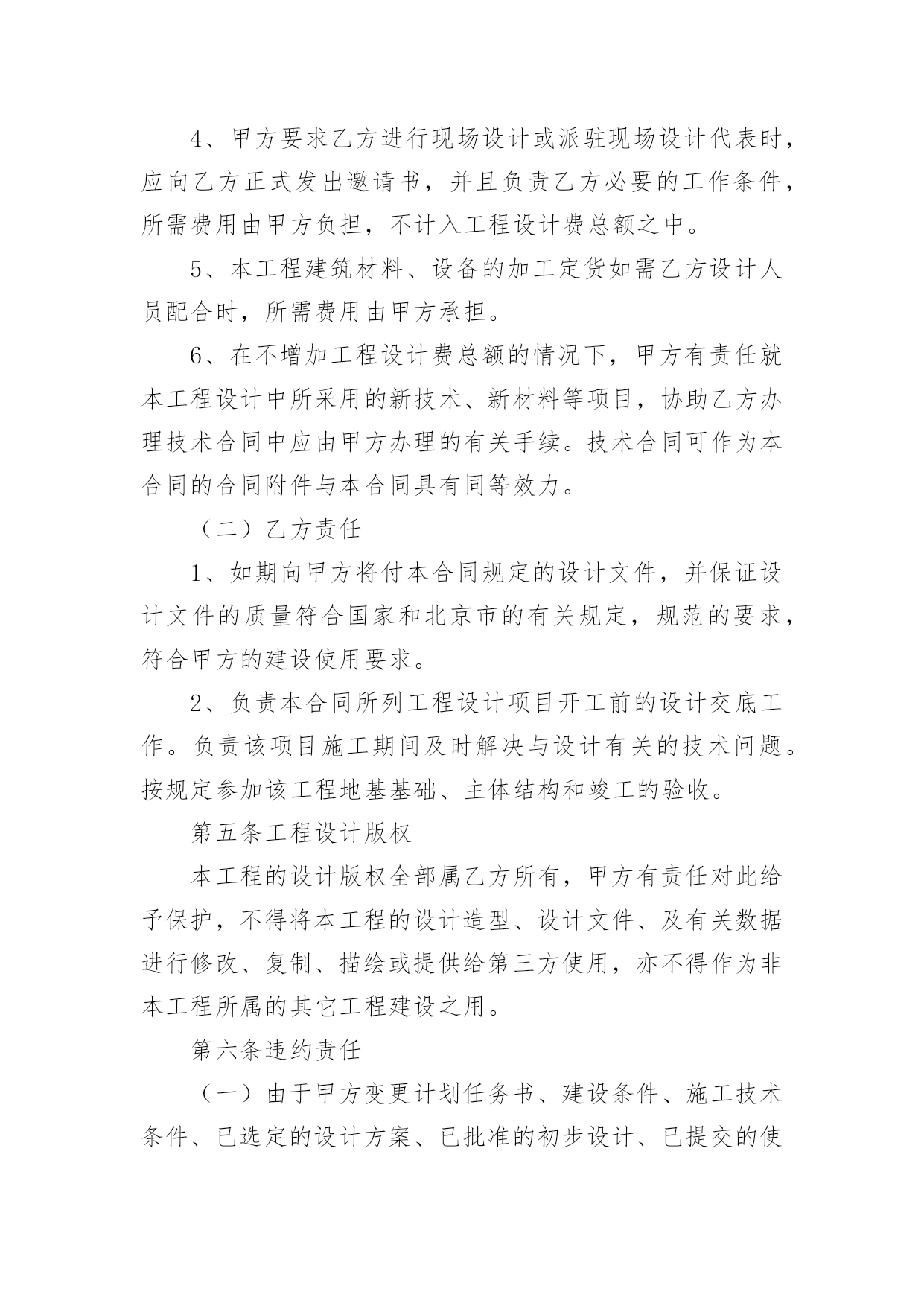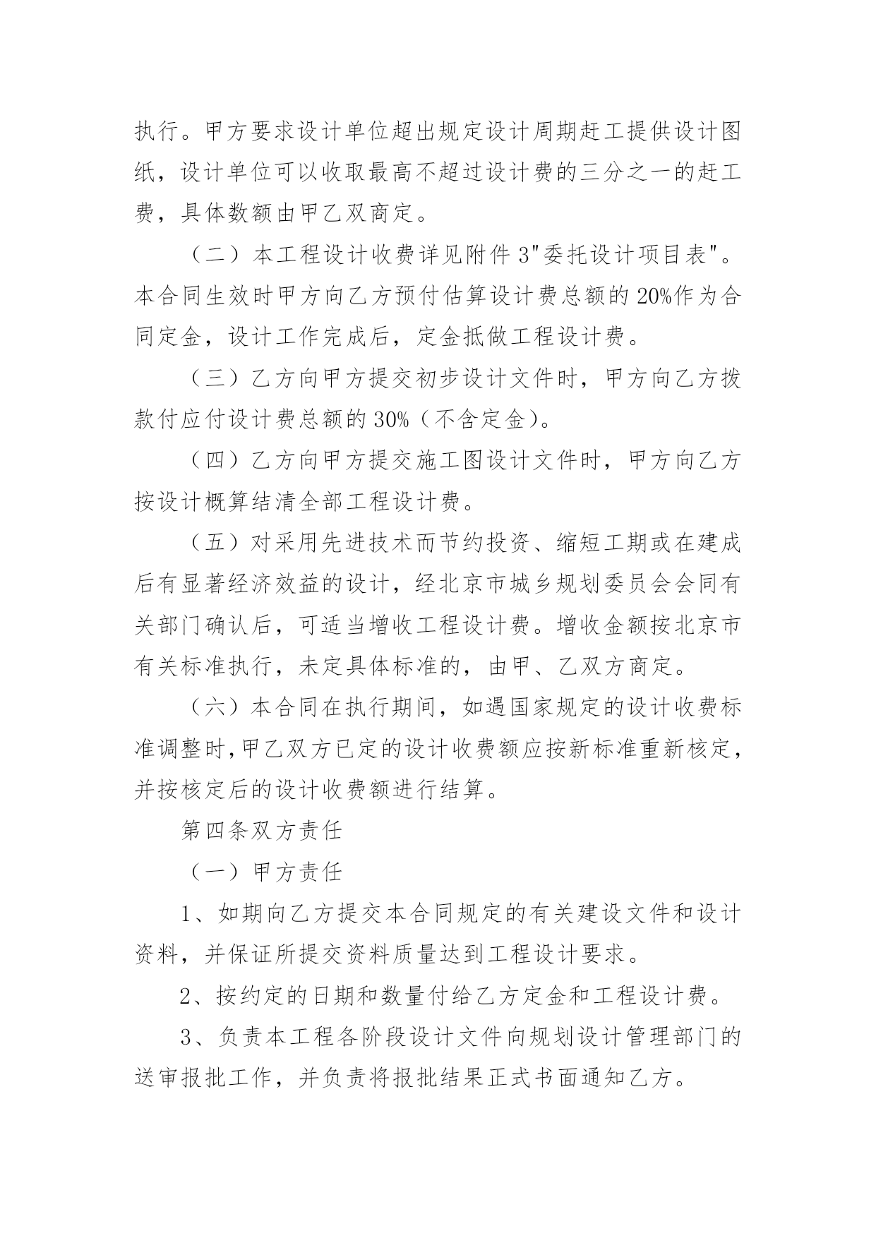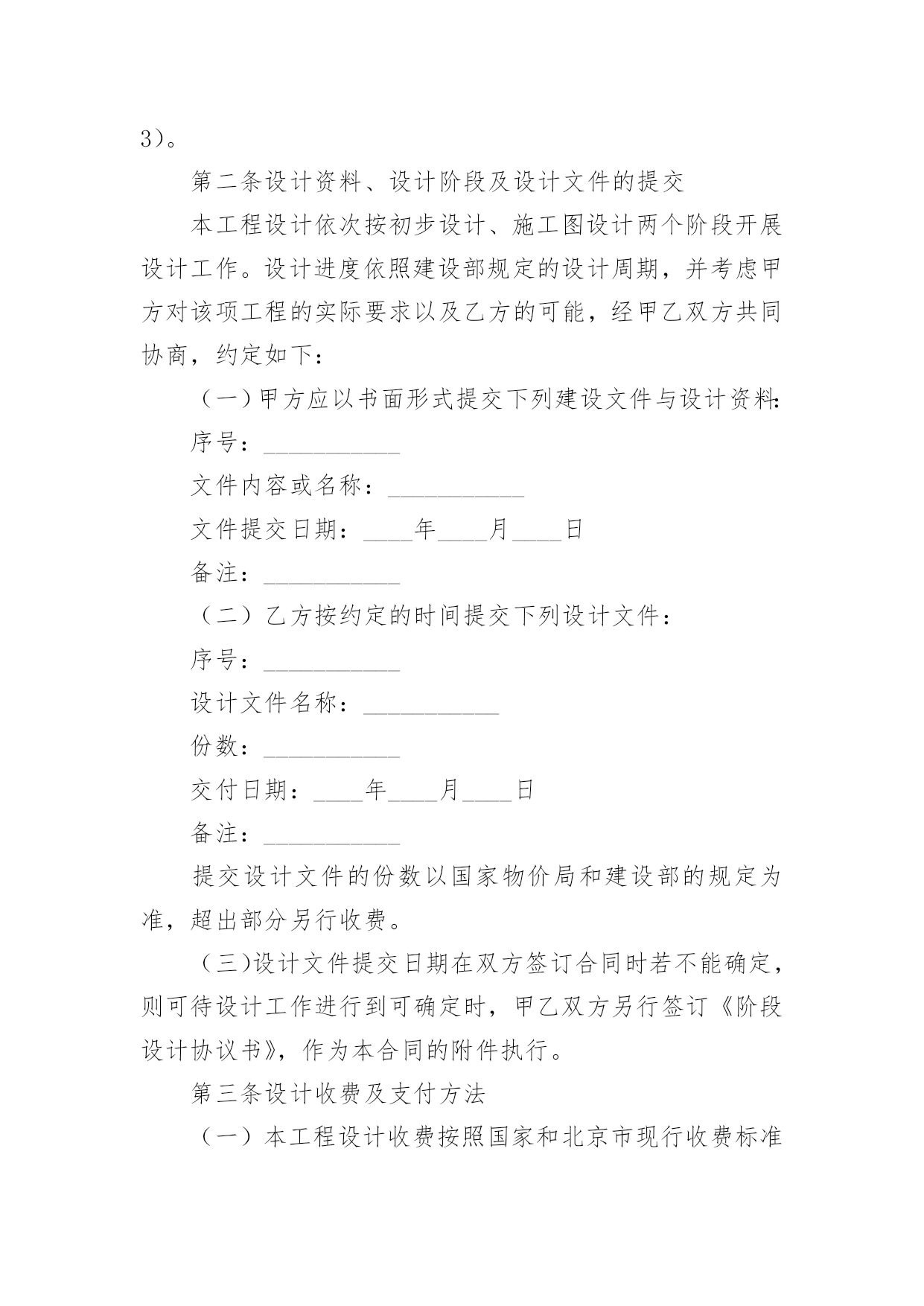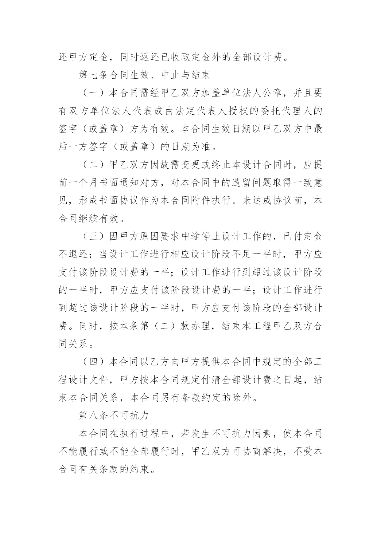 装修设计合同装修设计合同集锦15篇在当今社会,人们对合同愈发重视,合同的法律效力与日俱增,正常情况下,签订合同必须经过规定的方式。拟定合同的注意事项有许多,你确定会写吗?下面是小编帮大家整理的装修设计合同,仅供参考,欢迎大家阅读。装修设计合同1委托方:(以下简称甲方)受托方:(以下简称乙方)甲方因装修工程的需要,委托乙方进行室内装修设计工作,经双方协商一致,签订本合同、一、设计工程概况1.设计工程名称:、2.设计工程地点:、3.设计工程面积约:平方米、4.设计工程范围:、二、设计时间1.设计期限:设计期限为个工作日,从乙方收到甲方支付的定金后开始计算,到向甲方交付全套设计图纸之日为止、因甲方变更设计要求或对乙方意见未及时答复,其耽误的时间应从合同约定的设计期限中相应扣除、2.设计要求:(1)工地开工后设计师配合施工队现场指导并对业主提供材料及工程质量咨询服务、(2)设计费未全额付清前,乙方不提供最终设计成果、(3)若甲方委托乙方施工,设计费减半,从工程尾款中扣除、三、提交成果1装修设计方案图1套平面、效果图、20xx年月日前、2装修施工图1套平面、天花、立面、剖面、大样20xx年月日前、备注1、《装修施工图》为AUTOCAD文件且应达到施工队依图施工之深度,效果图张数经双方协商为,如需增加按元1张收取费用;2、上述设计成果应提交打印文档一份、四、双方责任1.甲方应按合同规定及时支付设计费、2.甲方应将设计要求准确、简明扼要的.告之乙方设计人员,并不得随意变更(除了合理的变更)、甲方变更设计委托事项或因提交的资料错误,或对所提供资料作较大修改,造成乙方设计返工,除双方需协商签订补充合同(或另订合同),重新明确有关条款外,甲方应按乙方所耗工作量向乙方支付相应的费用、3.乙方须按合同规定的时间提交设计图纸、4.乙方应本着认真负责的精神,按照甲方的要求完成设计、5.若甲方未能按时支付设计费,乙方有权拒绝甲方提出的下一步工作要求、五、设计费金额、支付时间与方式1.设计费总额:人民币¥元(大写,)、2.支付时间:(1)双方签订委托设计合同时,甲方即应向乙方支付定金,即人民币(2)待乙方把详细的施工图和规定的效果图交给甲方时,甲方一次性把设计费余额即人民币¥元、(大写,);(3)若有双方协商同意增加的设计费应在该工程设计前支付给乙方、3.支付方式甲,乙双方共同协商支付方式、六.违约责任和争议的解决1.甲方在乙方提供有关设计图纸后,未在合同规定的期限内支付设计费,或乙方无特殊情况延迟交付图纸,均应视为违反合同约定、按每日100元予以处罚、2.合同生效后,甲、乙方无故要求终止或解除合同时,应以双倍定金赔偿无过错方(不可抗力除外)、3.甲、乙双方在履行合同过程中,如有争议,应友好协商解决、协商不成任何一方可向原告所在地法院提出诉讼、七、合同效力本合同壹式贰份,甲乙双方各执壹份、合同经双方签字(盖印)后生效、本合同设计工程峻工后终止、甲方(签字盖章):乙方(签字盖章):电话:电话:合同签订时间:装修设计合同2工程名称:_______________________________________工程编号:_______________________________________合同编号:_______________________________________委托单位(甲方):______________________________设计单位(乙方):______________________________北京市城乡规划委员会制定北京市工商行政管理局监制填写合同须知一、凡在北京地区承担建设工程设计任务的单位,统一使用本合同;二、填写本合同时,必须使用正楷,字迹工整清晰,填写内容准确齐全;三、本合同中的附件3"委托设计项目表",由设计单位根据工程特点列表填写,附于合同后,双方加盖合同章和骑缝章;四、本合同不适用外资、中外合资、中外合作设计项目;五、本合同由北京市勘察设计管理处统一单位编号;六、本合同由北京市城乡规划委员会制定,北京市工商行政管理局监制,任何单位不得自行翻印。委托单位:______________________________(以下简称甲方)设计单位:______________________________(以下简称乙方)根据《中华人民共和国经济合同法》、《建筑工程勘察设计合同条例》,以及北京市的有关规定,经双方协商,签订本合同,并共同履行。第一条工程项目甲方委托乙方承担以下工程设计任务:工程名称:_____________________________工程地址:_____________________________工程任务批准文件:__________________________(见附件1);北京市城