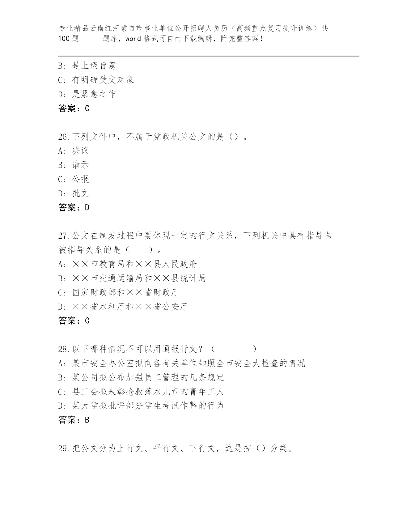 完整版云南红河蒙自市事业单位公开招聘人员历(高频重点复习提升训练)共100题 真题题库精品(B卷)