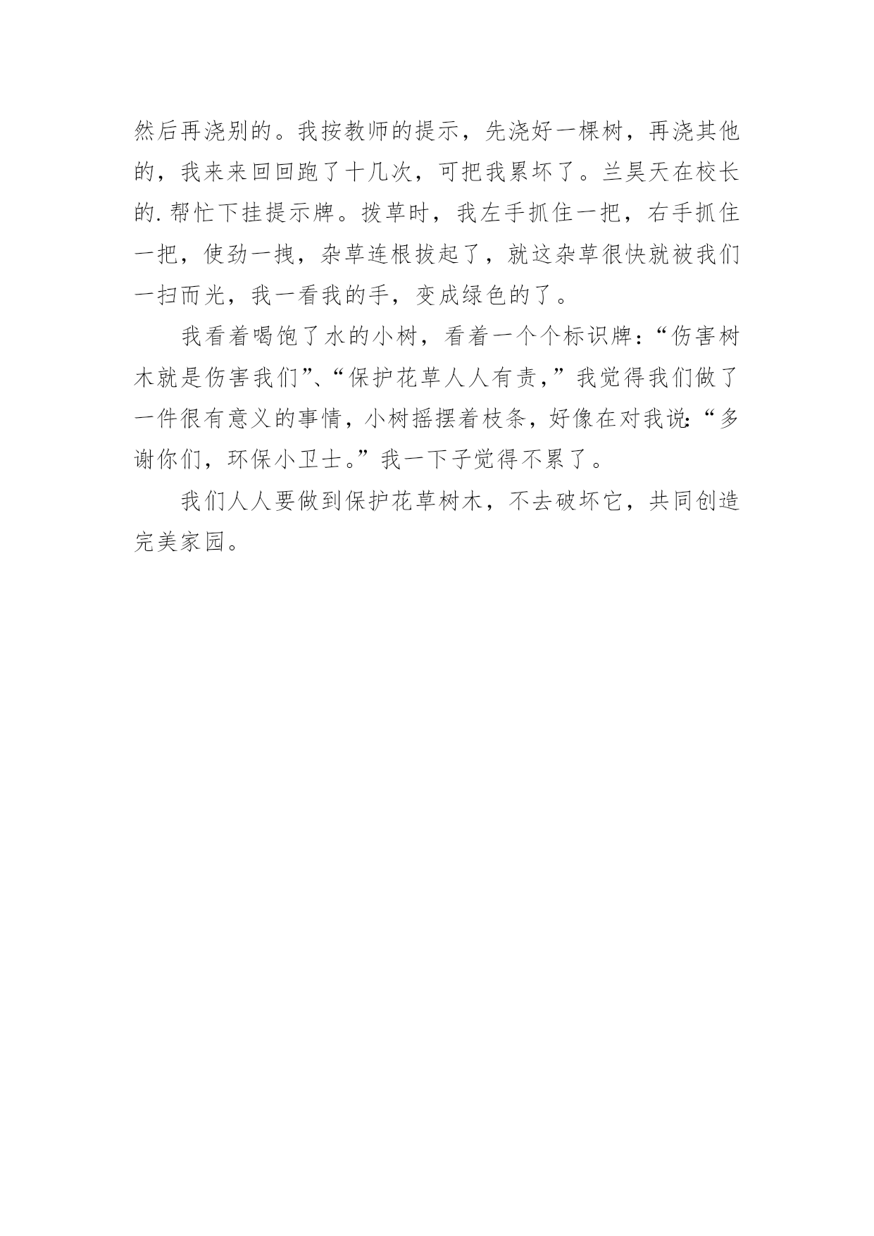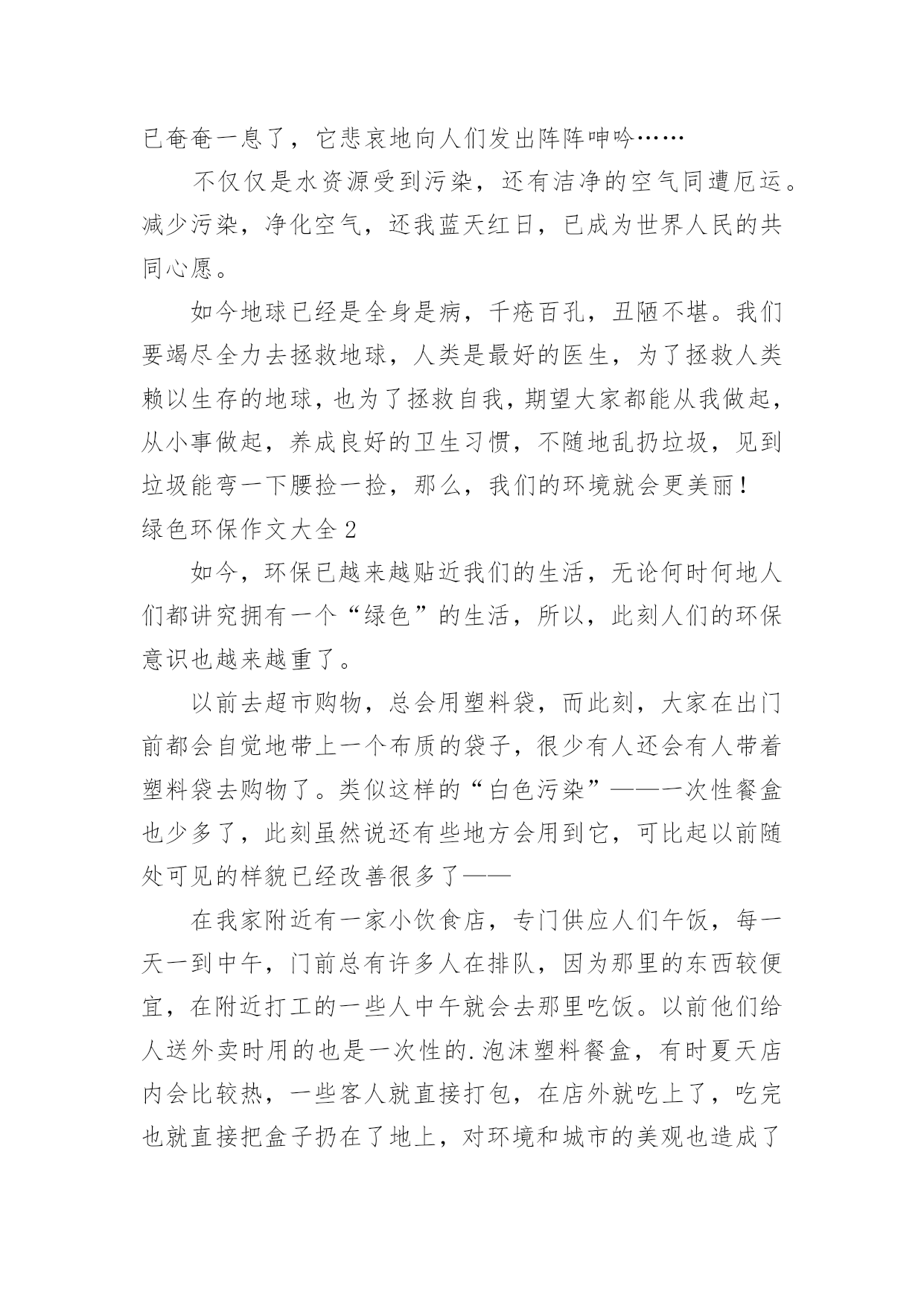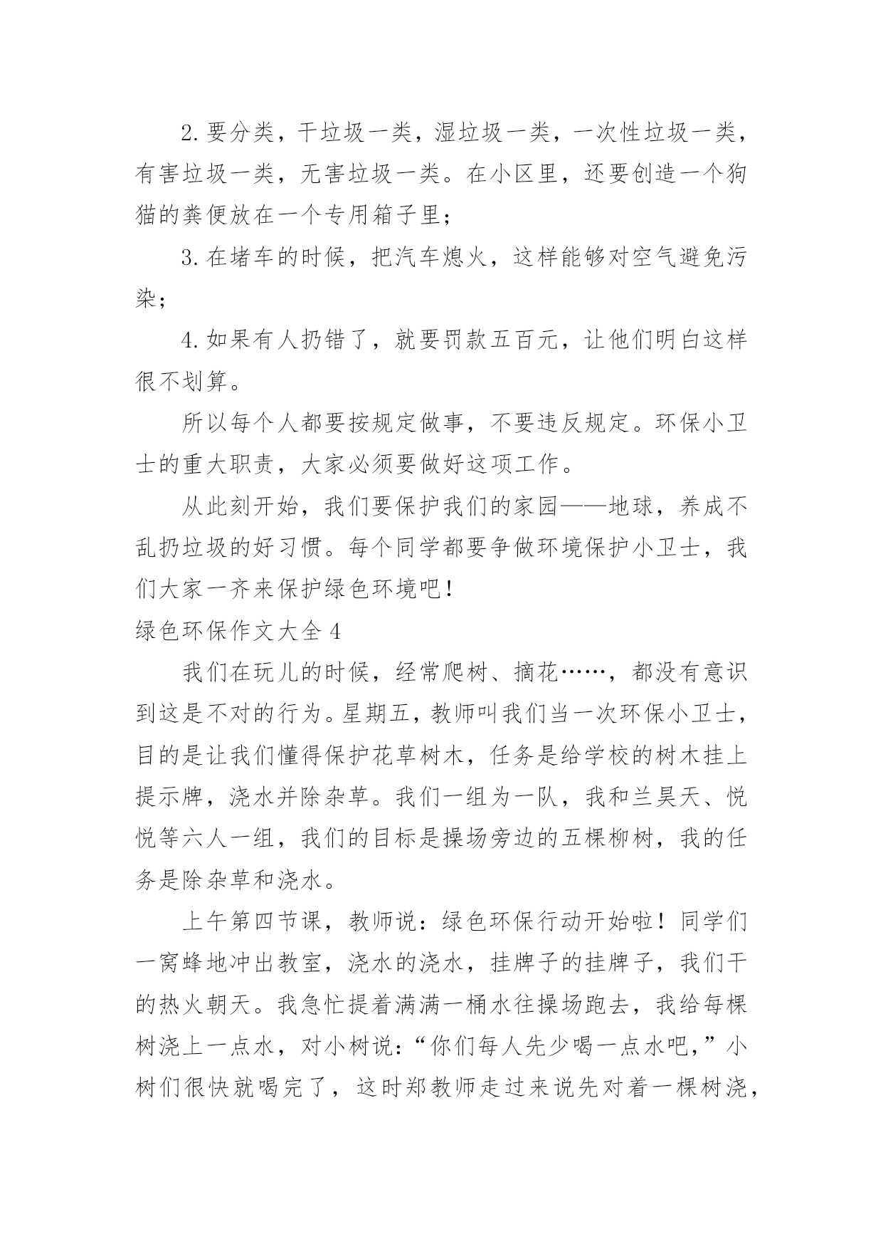 绿色环保作文绿色环保作文大全在平平淡淡的日常中,大家对作文都再熟悉不过了吧,借助作文可以宣泄心中的情感,调节自己的心情。你知道作文怎样才能写的好吗?下面是小编整理的绿色环保作文大全,希望对大家有所帮助。绿色环保作文大全1我们学校每年都要举办外语节,每年外语节的主题都不一样,今年的主题是:生态环保。在搜索资料的过程中,让我意识到环境污染的危害性,懂得人人应当倡导环保意识。我们美丽的家园——地球,它无私地把自我宝贵的资源奉献给人类,然而人类却肆无忌惮地破坏地球的生态环境。就拿我们天天能见到的水来说吧!人体内50%到60%的重量是水,没有水就没有生命。地球上的.淡水资源只占地球水资源总量的3%,而这3%的淡水中,可直接饮用的仅有0。5%。所以说,水是人类的宝贵资源,是生命之泉。然而,水污染在世界上相当普遍而又严重。听爷爷奶奶说,他们小时候的村庄山青水绿,人们生活在蓝天白云之下,周围的环境优美宜人,到处鸟语花香。人们常在河里挑水做饭,洗衣服、捕鱼,在河边散步……然而近年来,河水浑浊不清,臭气薰天,肮脏不堪,垃圾废物飘浮在水面上,鱼儿也都死了,小河被人们糟蹋得面目全非,已奄奄一息了,它悲哀地向人们发出阵阵呻吟……不仅仅是水资源受到污染,还有洁净的空气同遭厄运。减少污染,净化空气,还我蓝天红日,已成为世界人民的共同心愿。如今地球已经是全身是病,千疮百孔,丑陋不堪。我们要竭尽全力去拯救地球,人类是最好的医生,为了拯救人类赖以生存的地球,也为了拯救自我,期望大家都能从我做起,从小事做起,养成良好的卫生习惯,不随地乱扔垃圾,见到垃圾能弯一下腰捡一捡,那么,我们的环境就会更美丽!绿色环保作文大全2如今,环保已越来越贴近我们的生活,无论何时何地人们都讲究拥有一个“绿色”的生活,所以,此刻人们的环保意识也越来越重了。以前去超市购物,总会用塑料袋,而此刻,大家在出门前都会自觉地带上一个布质的袋子,很少有人还会有人带着塑料袋去购物了。类似这样的“白色污染”——一次性餐盒也少多了,此刻虽然说还有些地方会用到它,可比起以前随处可见的样貌已经改善很多了——在我家附近有一家小饮食店,专门供应人们午饭,每一天一到中午,门前总有许多人在排队,因为那里的东西较便宜,在附近打工的一些人中午就会去那里吃饭。以前他们给人送外卖时用的也是一次性的.泡沫塑料餐盒,有时夏天店内会比较热,一些客人就直接打包,在店外就吃上了,吃完也就直接把盒子扔在了地上,对环境和城市的美观也造成了不小的影响。可是,自从人们开始提倡环保,拒绝白色污染时,这家店就不再用这些会污染环境的一次性餐盒了,取而代之的时可降解的餐盒或是纸质的餐盒,他们的这种做法也对“绿色环保”这一理念做出了不小的贡献!保护环境,让我们一同携手,恢复大自然原本的美丽、清秀,然我们身边的每一寸土地都能够得到净化,也让我们自我拥有一个美丽的家园!绿色环保作文大全3在绿色的环境里,我们感到清新舒适,感到绿色是无比可爱,无比活泼,充满了生机活力。可是,我们人类为了建设和发展,而忘记了这会对森林、动物的危害。结果,我们的`环境遭到了破坏,从绿色变成了灰色。你看着,那些汽车尾气、烟囱,二氧化碳排入空气中,湛蓝的天空没有以前那么蓝了,水也没有原先那么清澈了,碧绿碧绿的河水,也变成了臭味熏天的了。中国的每一个小朋友都要做环保小卫士。如果有人乱扔垃圾到河里,你要立刻跟他说:“不能乱扔垃圾到河里,你扔进了河里,鱼儿们不明白这是垃圾,会认为是食物,只要一把垃圾吃进肚子里,就会死亡。你想,每只动物也是一条珍贵的生命啊!如果你是鱼,你吃掉了这些垃圾,你也会死亡了!这么残忍,鱼儿们是多么可怜啊!以后不准再乱扔垃圾了啊!”我是一个环保小卫士,我提出提议:1.垃圾要扔进垃圾桶;2.要分类,干垃圾一类,湿垃圾一类,一次性垃圾一类,有害垃圾一类,无害垃圾一类。在小区里,还要创造一个狗猫的粪便放在一个专用箱子里;3.在堵车的时候,把汽车熄火,这样能够对空气避免污染;4.如果有人扔错了,就要罚款五百元,让他们明白这样很不划算。所以每个人都要按规定做事,不要违反规定。环保小卫士的重大职责,大家必须要做好这项工作。从此刻开始,我们要保护我们的家园——地球,养成不乱扔垃圾的好习惯。每个同学都要争做环境保护小卫士,我们大家一齐来保护绿色环境吧!绿色环保作文大全4我们在玩儿的时候,经常爬树、摘花……,都没有意识到这是不对的行为。星期五,教师叫我们当一次环保小卫士,目的是让我们懂得保护花草树木,任务是给学校的树木挂上提示牌,浇水并除杂草。我们一组为一队,我和兰昊天、悦悦等六人一组,我们的目标是操场旁边的五棵柳树,我的任务是除杂草和浇水。上午第四节课,教师说:绿色环保行动开始啦!同学们一窝蜂地冲出教室,浇水的浇水,挂牌子的挂牌子,我们干的热火朝天。我急忙提着满满一桶水往操场跑去,