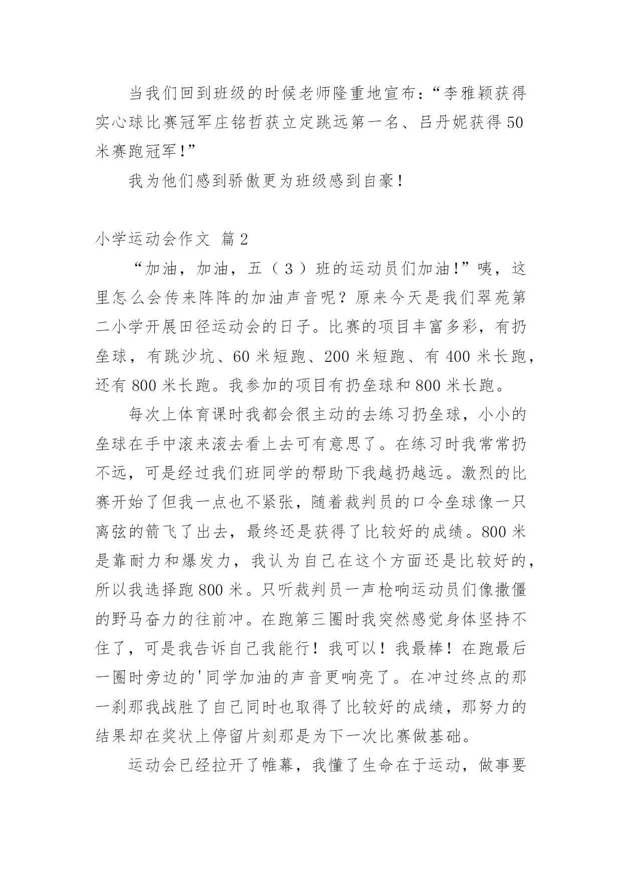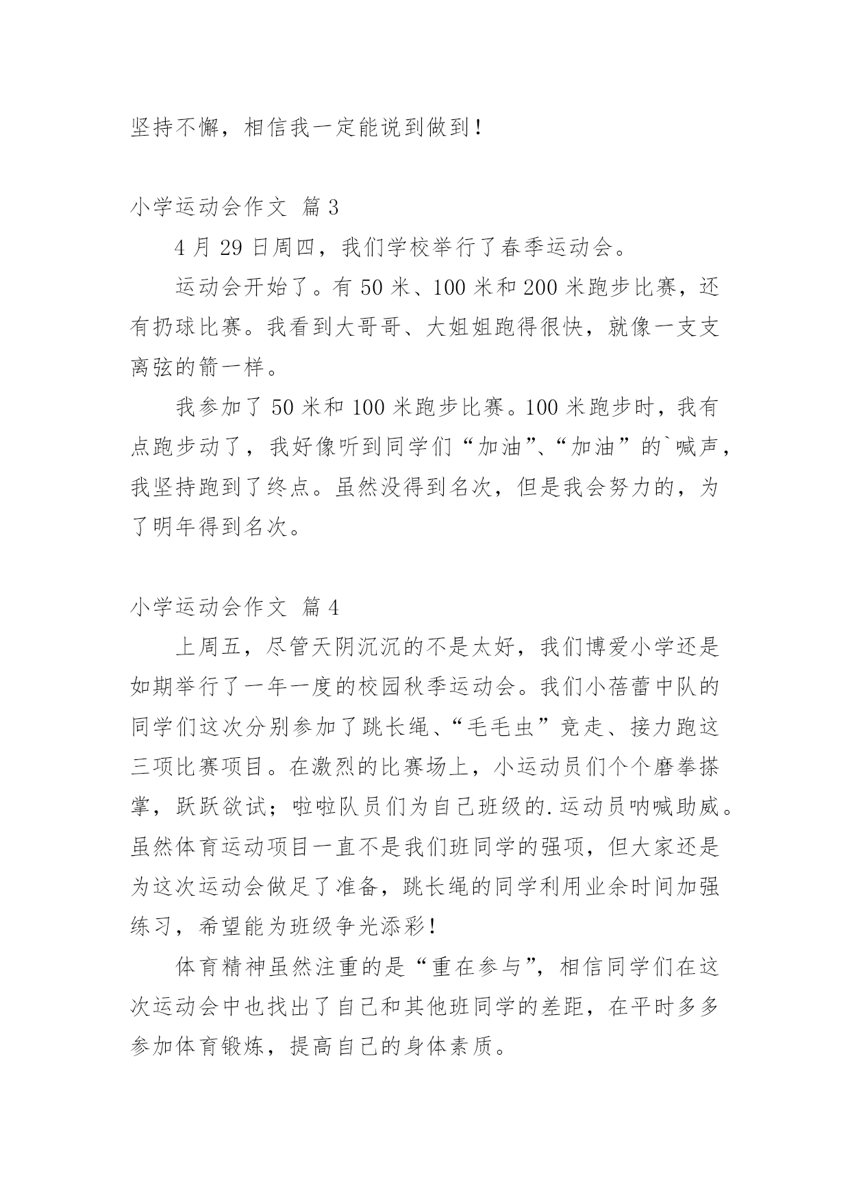小学运动会作文小学运动会作文范例[4篇]在生活、工作和学习中,说到作文,大家肯定都不陌生吧,作文是从内部言语向外部言语的过渡,即从经过压缩的简要的、自己能明白的语言,向开展的、具有规范语法结构的、能为他人所理解的外部语言形式的转化。相信很多朋友都对写作文感到非常苦恼吧,以下是小编为大家收集的小学运动会作文4篇,仅供参考,大家一起来看看吧。小学运动会作文篇1今天下午晴空万里第11届学校运动会开始了我们班参加了实心球、50米赛跑、立定跳远这三个项目。按照老师的安排由我带着一队同学到50米赛跑现场去为我们班的运动员们加油鼓劲我们带着写有“三年二班加油”的红旗兴冲冲地往操场赶。50米赛跑马上就要开始了运动员们摩拳擦掌各自做着准备工作。我们班庄诗妮参加的这一组比赛马上就要开始了只见裁判一声令下运动员们像离弦的`箭向终点冲去一开始大家不相上下不一会儿就分出了高低庄诗妮渐渐地落在别人后面我们的心都揪紧了异口同声地喊:“庄诗妮加油!庄诗妮加油!”庄诗妮听见了奋力往前追但因为一开始输得太多最后只取得了小组第五名的成绩但我们相信她已经尽力了。当我们回到班级的时候老师隆重地宣布:“李雅颖获得实心球比赛冠军庄铭哲获立定跳远第一名、吕丹妮获得50米赛跑冠军!”我为他们感到骄傲更为班级感到自豪!小学运动会作文篇2“加油,加油,五(3)班的运动员们加油!”咦,这里怎么会传来阵阵的加油声音呢?原来今天是我们翠苑第二小学开展田径运动会的日子。比赛的项目丰富多彩,有扔垒球,有跳沙坑、60米短跑、200米短跑、有400米长跑,还有800米长跑。我参加的项目有扔垒球和800米长跑。每次上体育课时我都会很主动的去练习扔垒球,小小的垒球在手中滚来滚去看上去可有意思了。在练习时我常常扔不远,可是经过我们班同学的帮助下我越扔越远。激烈的比赛开始了但我一点也不紧张,随着裁判员的口令垒球像一只离弦的箭飞了出去,最终还是获得了比较好的成绩。800米是靠耐力和爆发力,我认为自己在这个方面还是比较好的,所以我选择跑800米。只听裁判员一声枪响运动员们像撒僵的野马奋力的往前冲。在跑第三圈时我突然感觉身体坚持不住了,可是我告诉自己我能行!我可以!我最棒!在跑最后一圈时旁边的'同学加油的声音更响亮了。在冲过终点的那一刹那我战胜了自己同时也取得了比较好的成绩,那努力的结果却在奖状上停留片刻那是为下一次比赛做基础。运动会已经拉开了帷幕,我懂了生命在于运动,做事要坚持不懈,相信我一定能说到做到!小学运动会作文篇34月29日周四,我们学校举行了春季运动会。运动会开始了。有50米、100米和200米跑步比赛,还有扔球比赛。我看到大哥哥、大姐姐跑得很快,就像一支支离弦的箭一样。我参加了50米和100米跑步比赛。100米跑步时,我有点跑步动了,我好像听到同学们“加油”、“加油”的`喊声,我坚持跑到了终点。虽然没得到名次,但是我会努力的,为了明年得到名次。小学运动会作文篇4上周五,尽管天阴沉沉的不是太好,我们博爱小学还是如期举行了一年一度的校园秋季运动会。我们小蓓蕾中队的同学们这次分别参加了跳长绳、“毛毛虫”竞走、接力跑这三项比赛项目。在激烈的比赛场上,小运动员们个个磨拳搽掌,跃跃欲试;啦啦队员们为自己班级的.运动员呐喊助威。虽然体育运动项目一直不是我们班同学的强项,但大家还是为这次运动会做足了准备,跳长绳的同学利用业余时间加强练习,希望能为班级争光添彩!体育精神虽然注重的是“重在参与”,相信同学们在这次运动会中也找出了自己和其他班同学的差距,在平时多多参加体育锻炼,提高自己的身体素质。