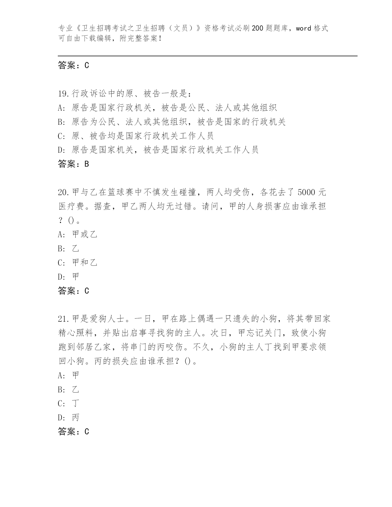 2024年河南省浉河区《卫生招聘考试之卫生招聘(文员)》考试必刷200题内部题库(名校卷)