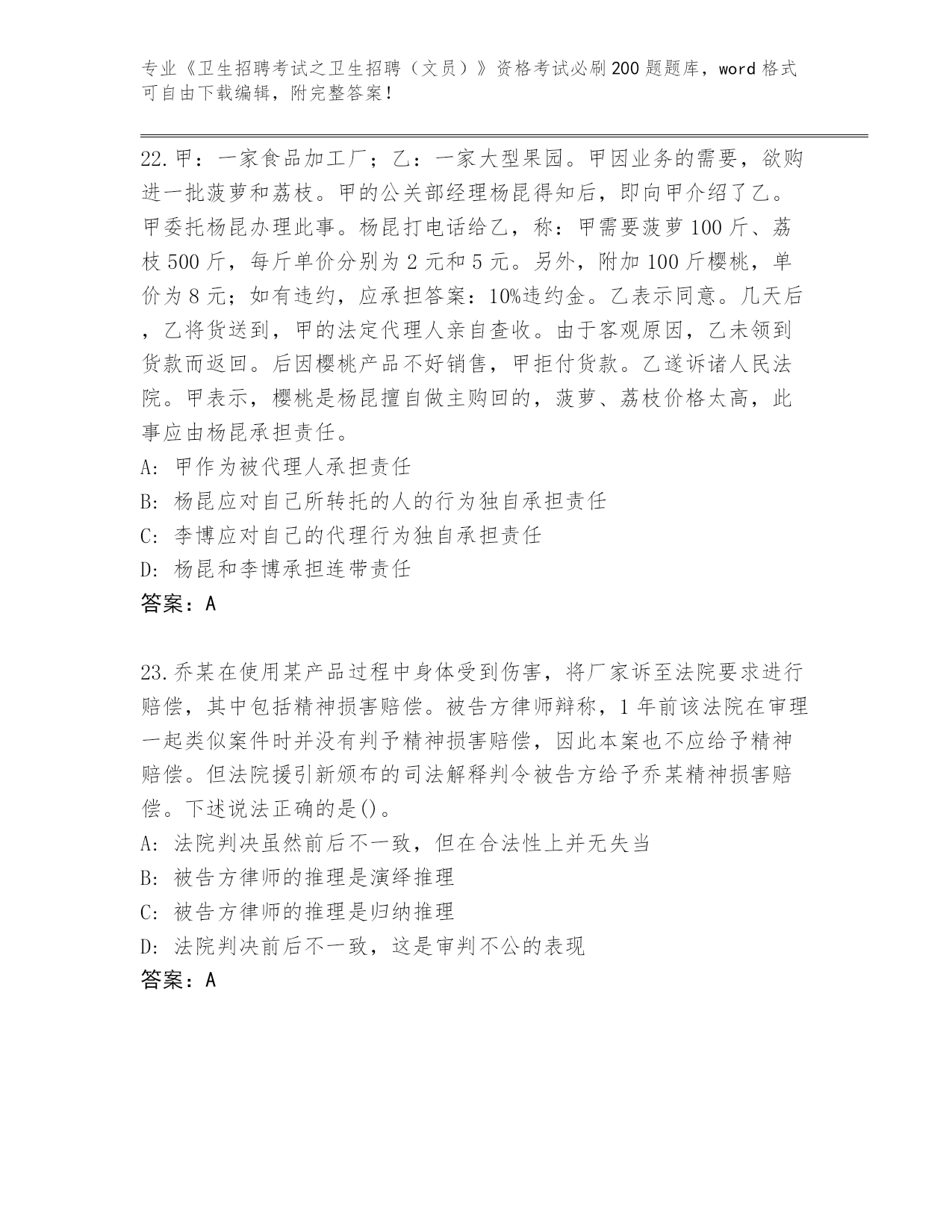 2023-24年河南省浉河区《卫生招聘考试之卫生招聘(文员)》考试必刷200题及参考答案(满分必刷)