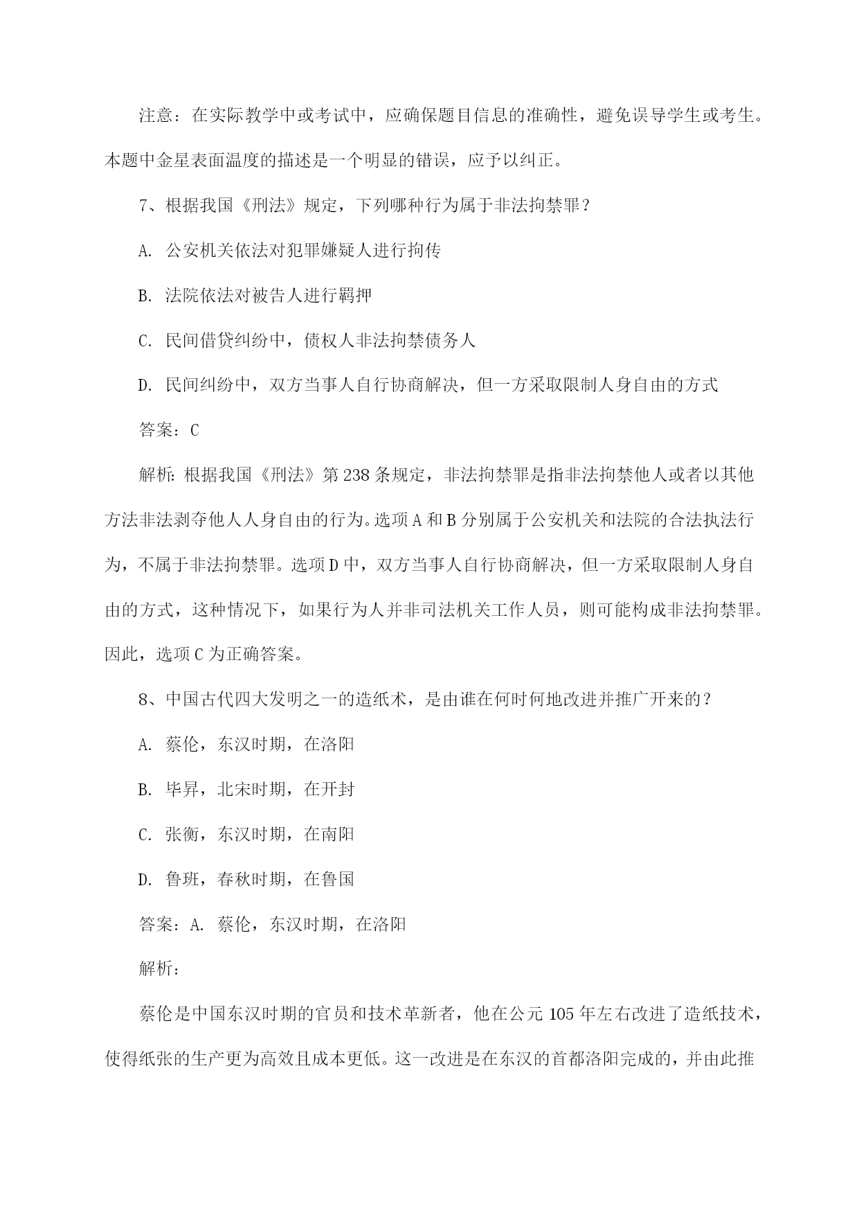 高中地理教师资格考试学科知识与教学能力2024年下半年试卷及解答