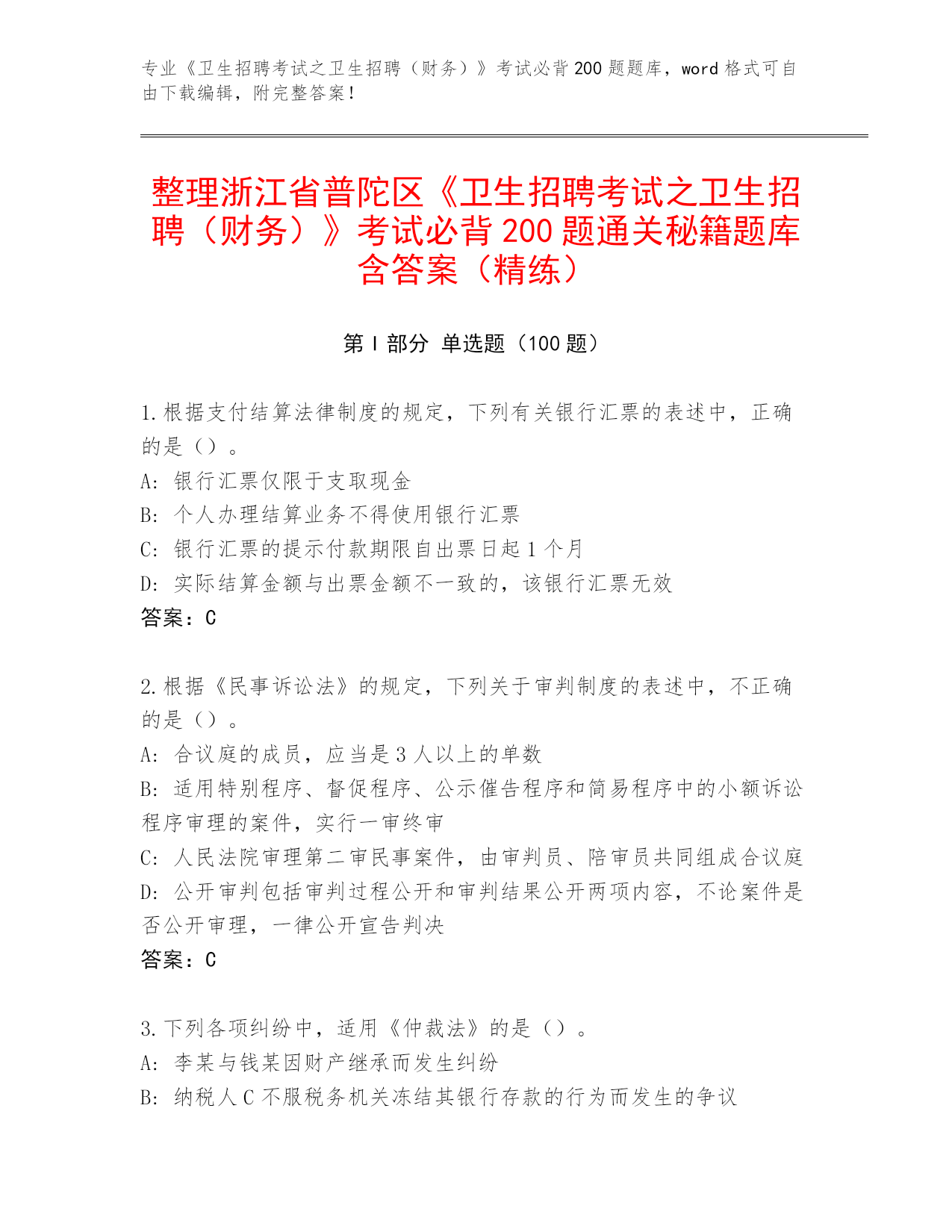 整理浙江省普陀区《卫生招聘考试之卫生招聘(财务)》考试必背200题通关秘籍题库含答案(精练)