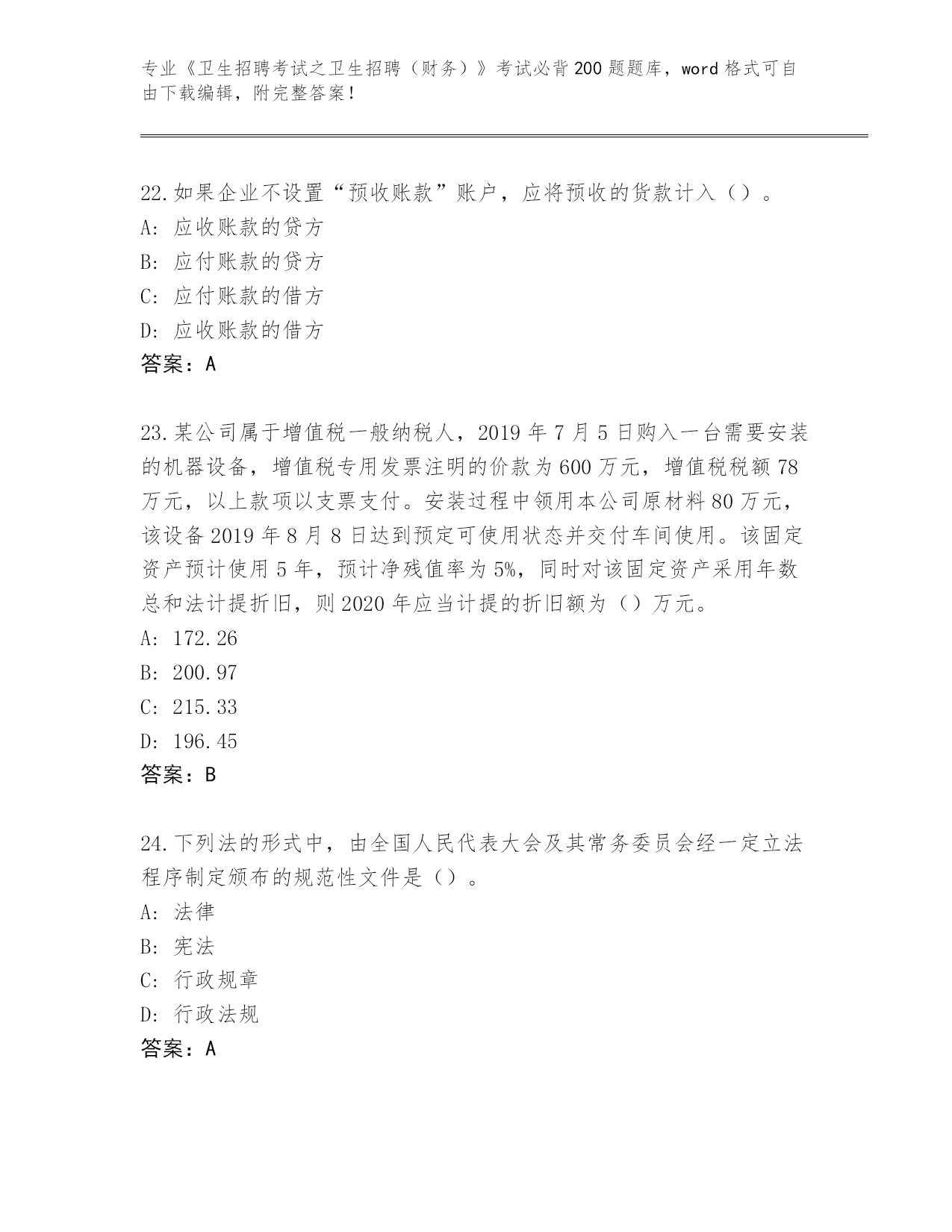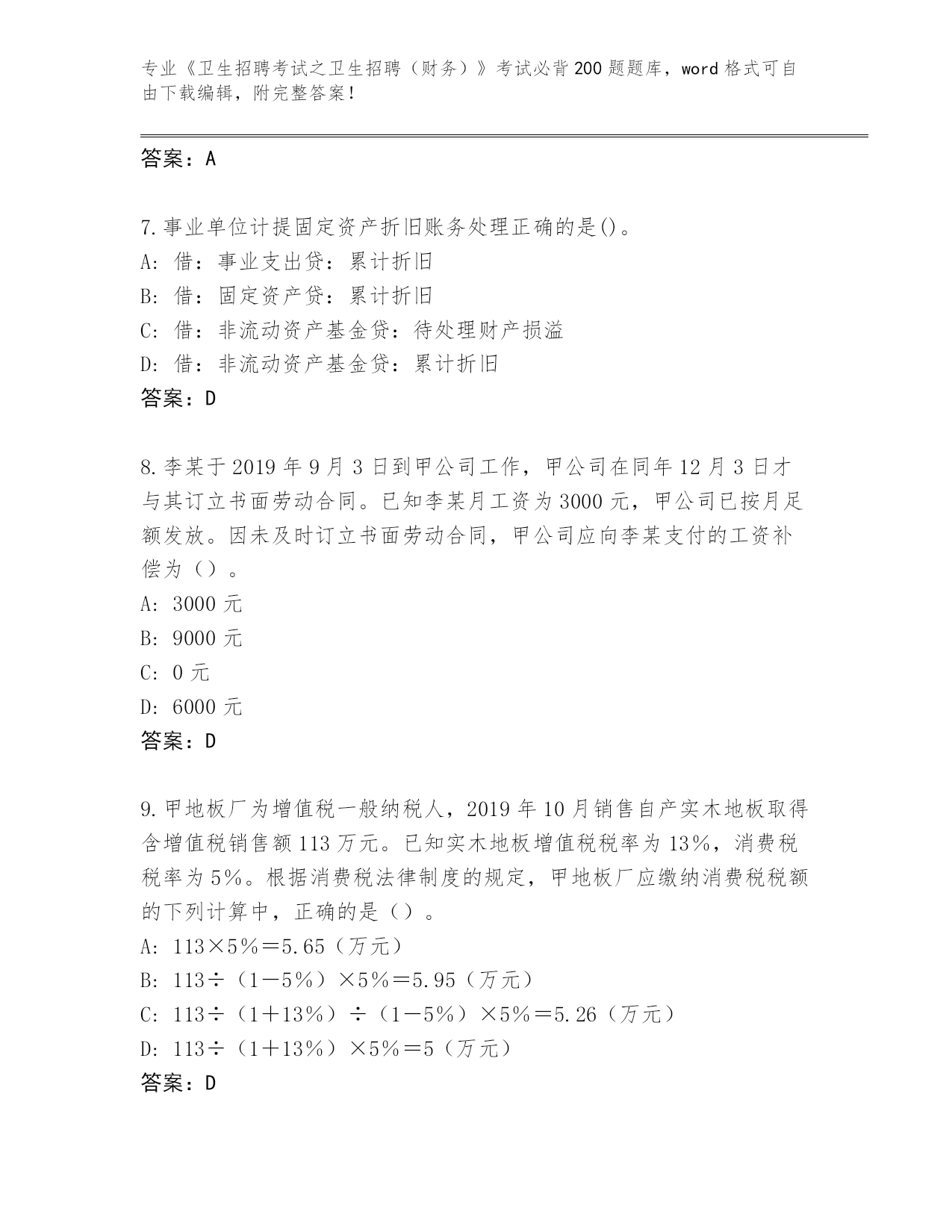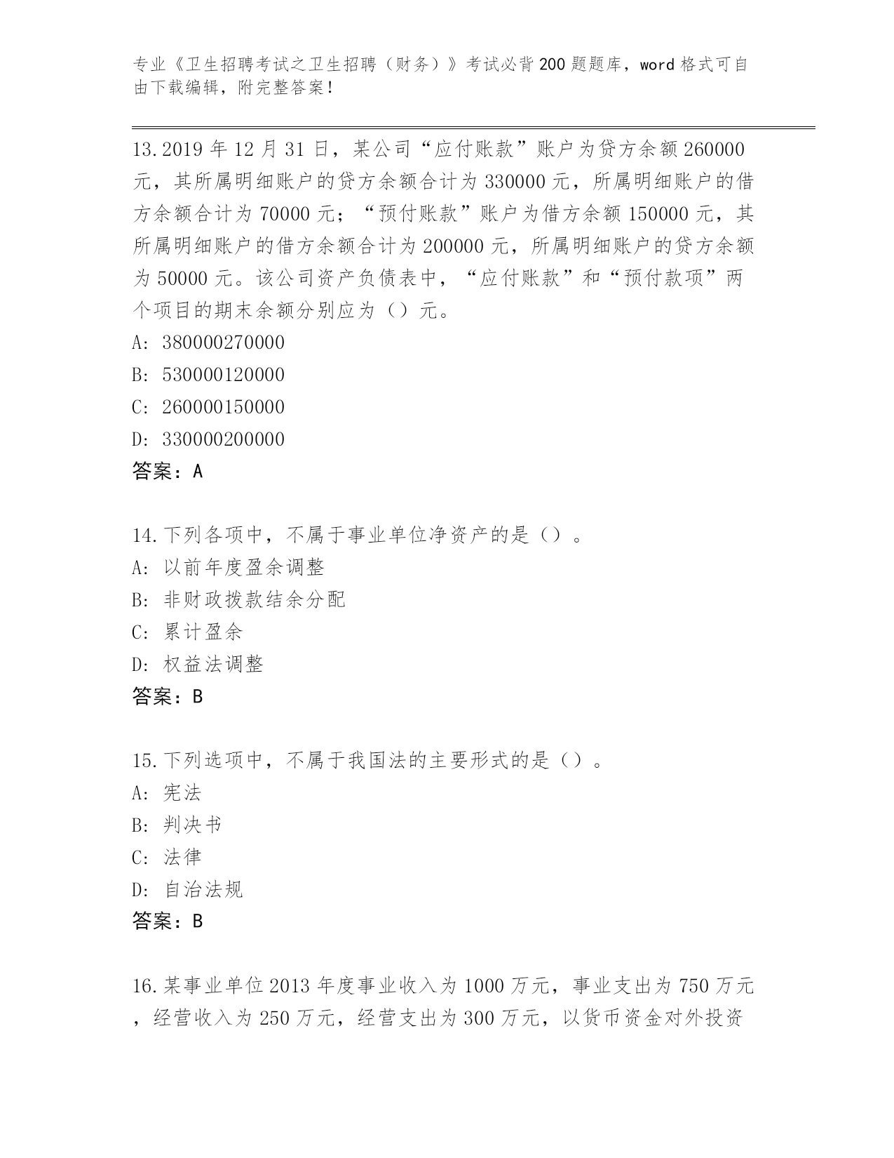 河南省源汇区2024《卫生招聘考试之卫生招聘(财务)》考试必背200题通关秘籍题库含答案(精练)